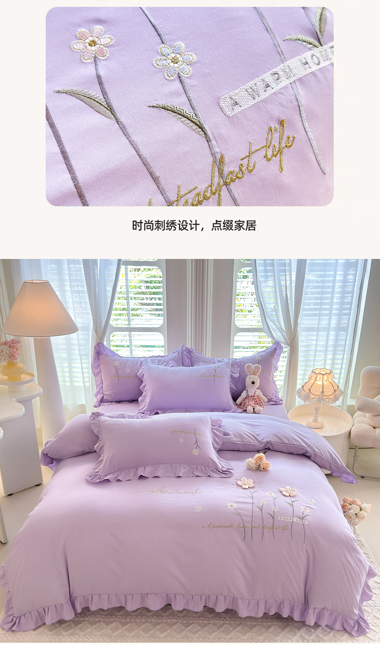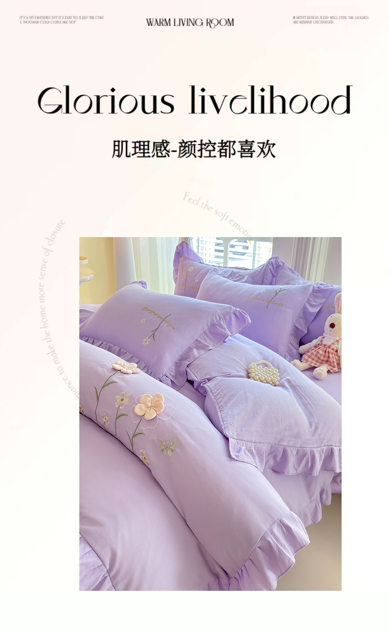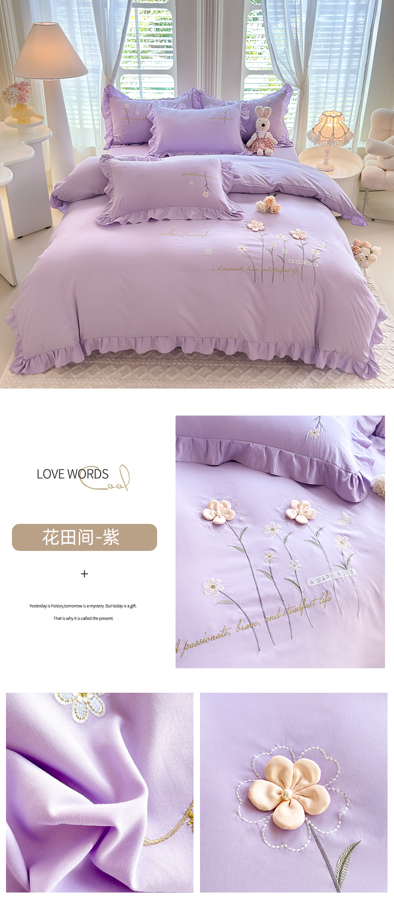 当前位置: 91家纺网 > 商品网购 > 床品套件 > 四件套 > 其它四件套 > 大麦乐田 2025新款韩版水洗糯小棉立体花刺绣四件套 花田间-紫