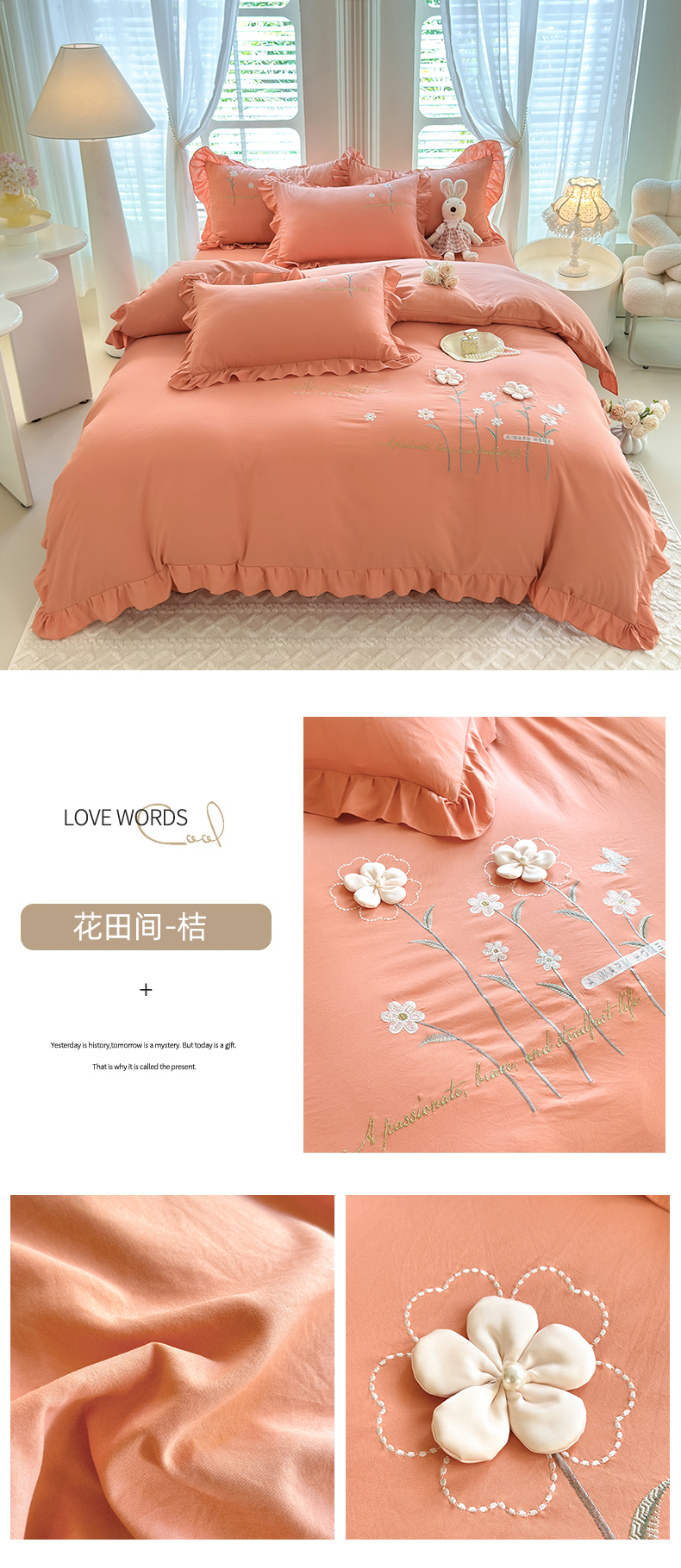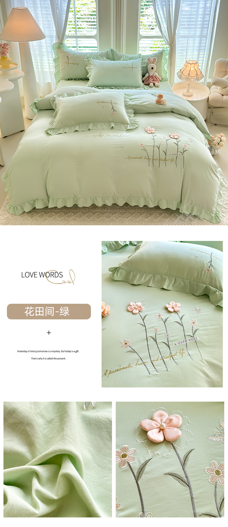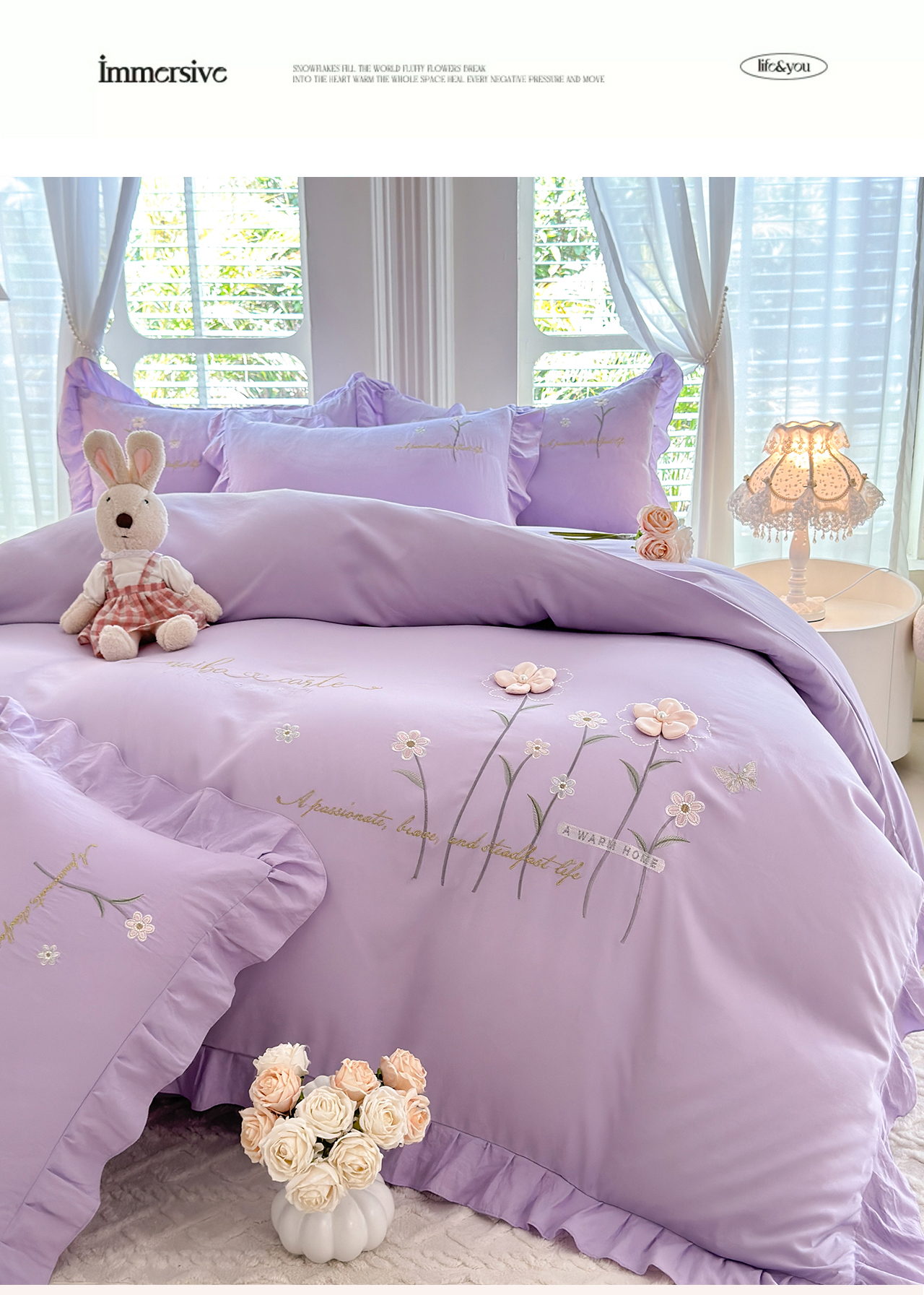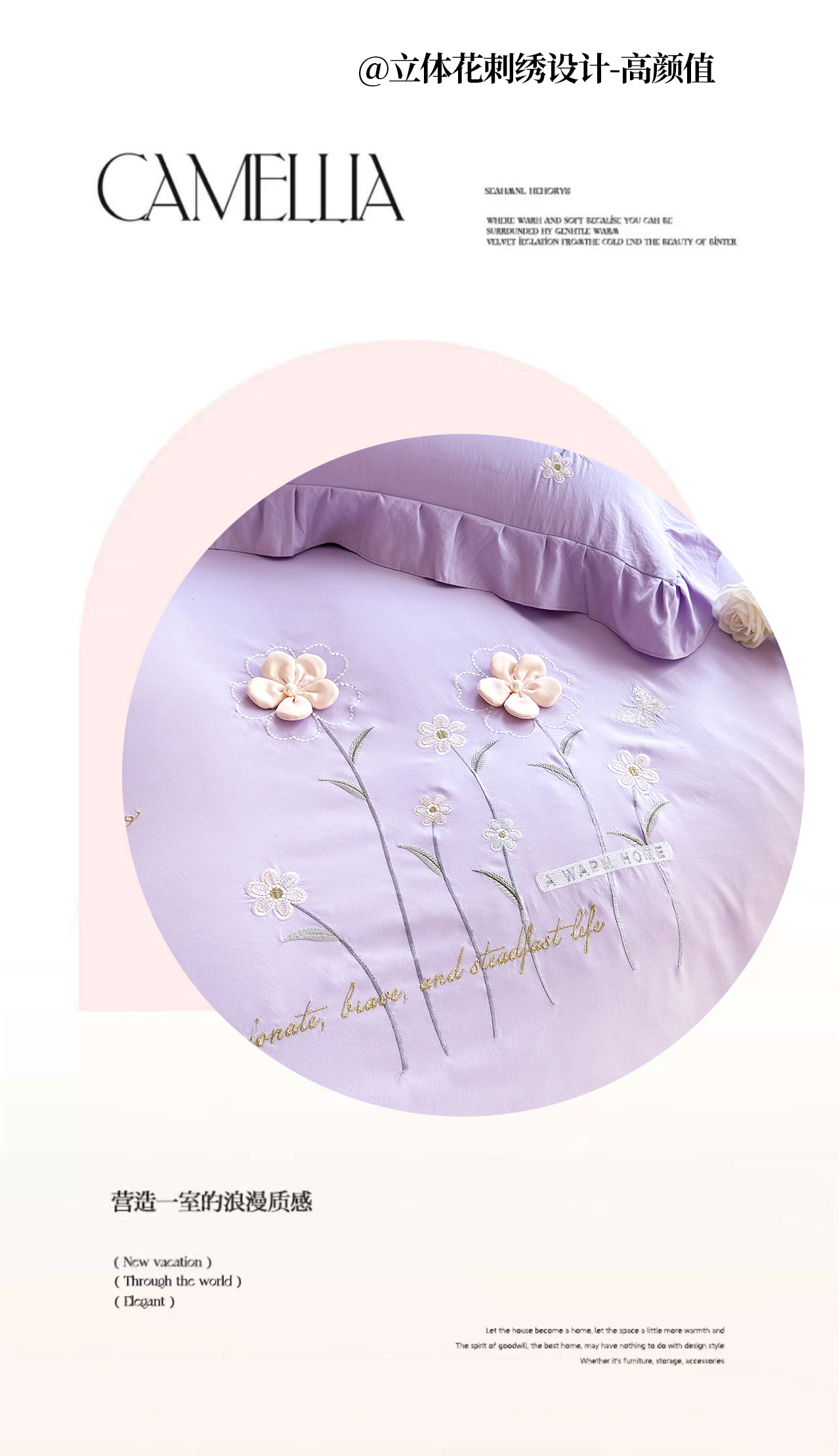 当前位置: 91家纺网 > 商品网购 > 床品套件 > 四件套 > 其它四件套 > 大麦乐田 2025新款韩版水洗糯小棉立体花刺绣四件套 花田间-紫