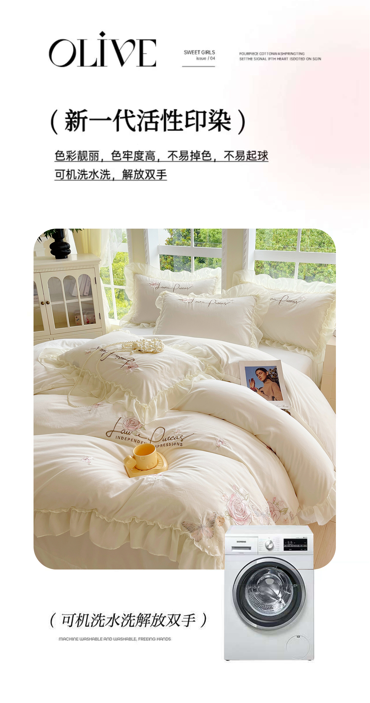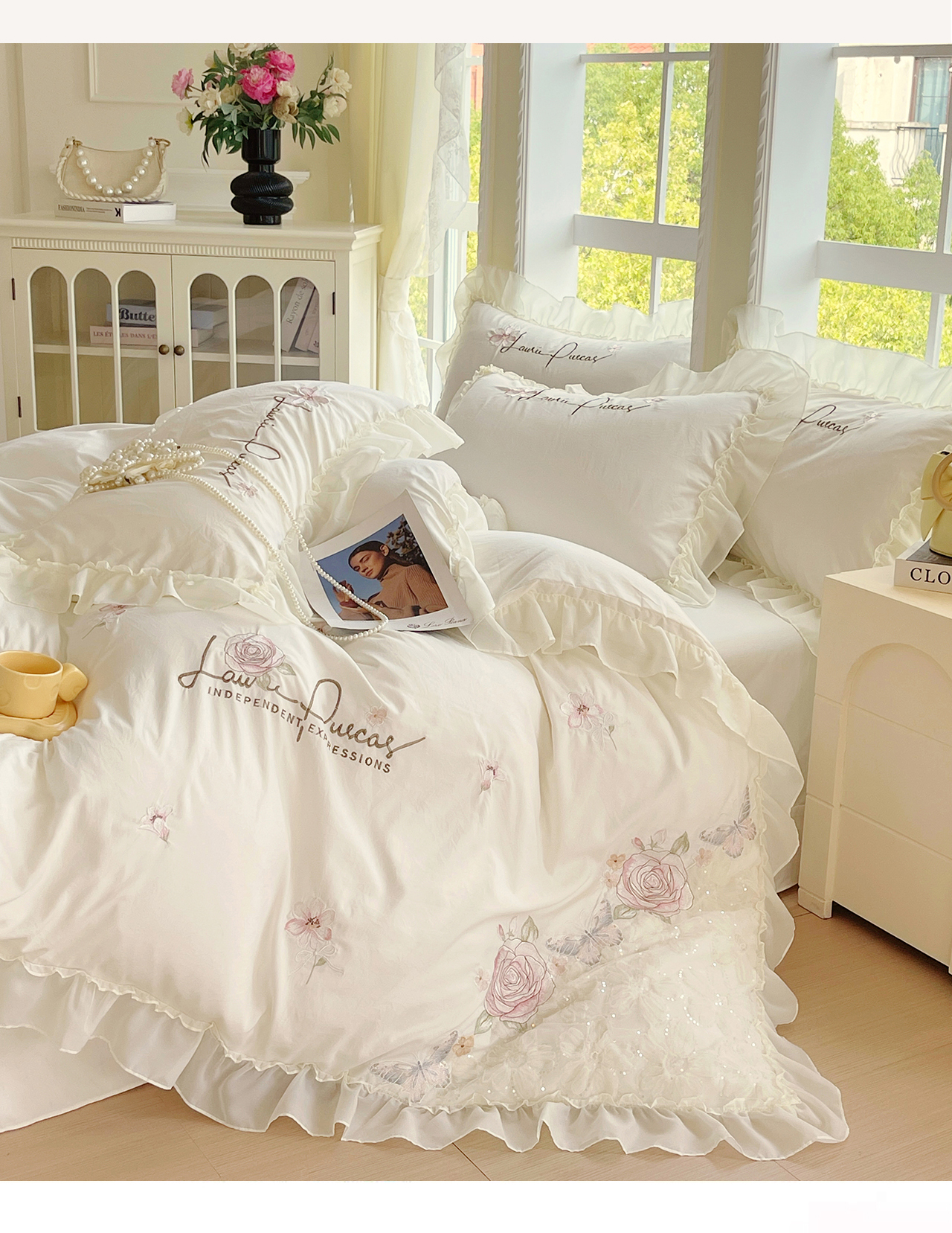 当前位置: 91家纺网 > 商品网购 > 床品套件 > 四件套 > 其它四件套 > 大麦乐田 2025新款公主风花边糯小棉刺绣贴布绣四件套 美丽邂逅-浅兰