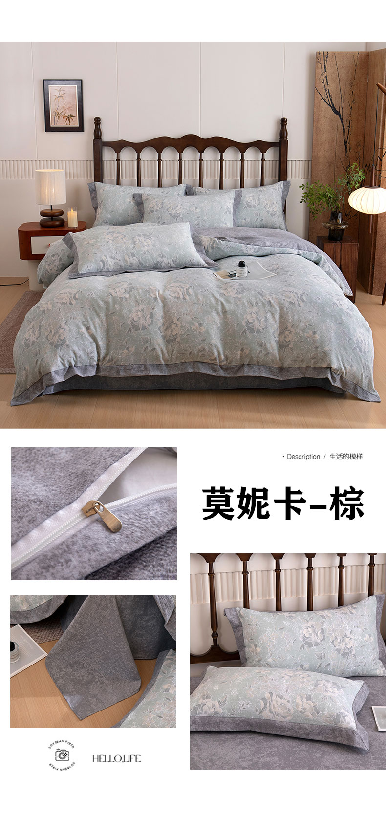 乐居家纺 2025新款高密亲肤亚麻舒爽透气四件套 莫妮卡-绿