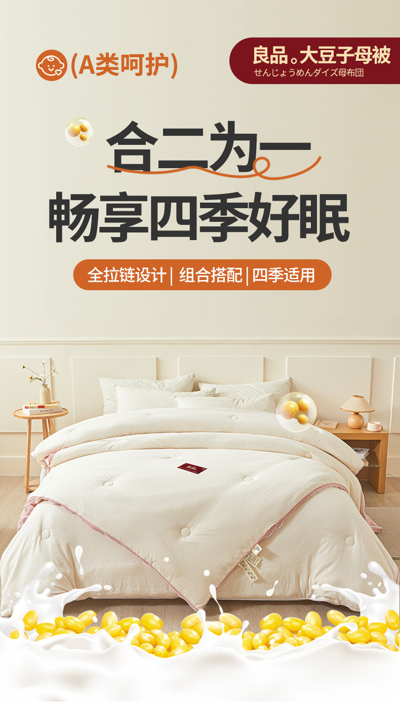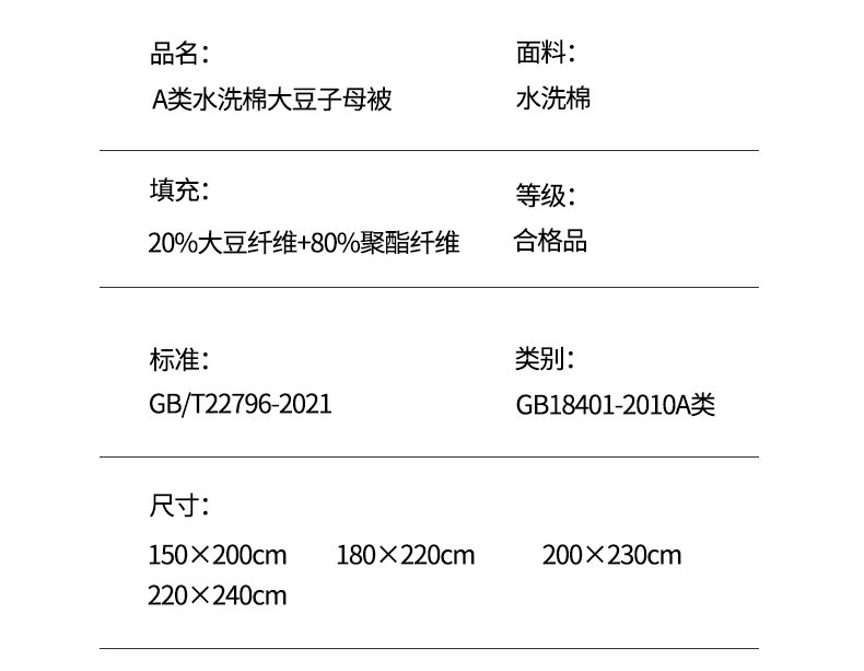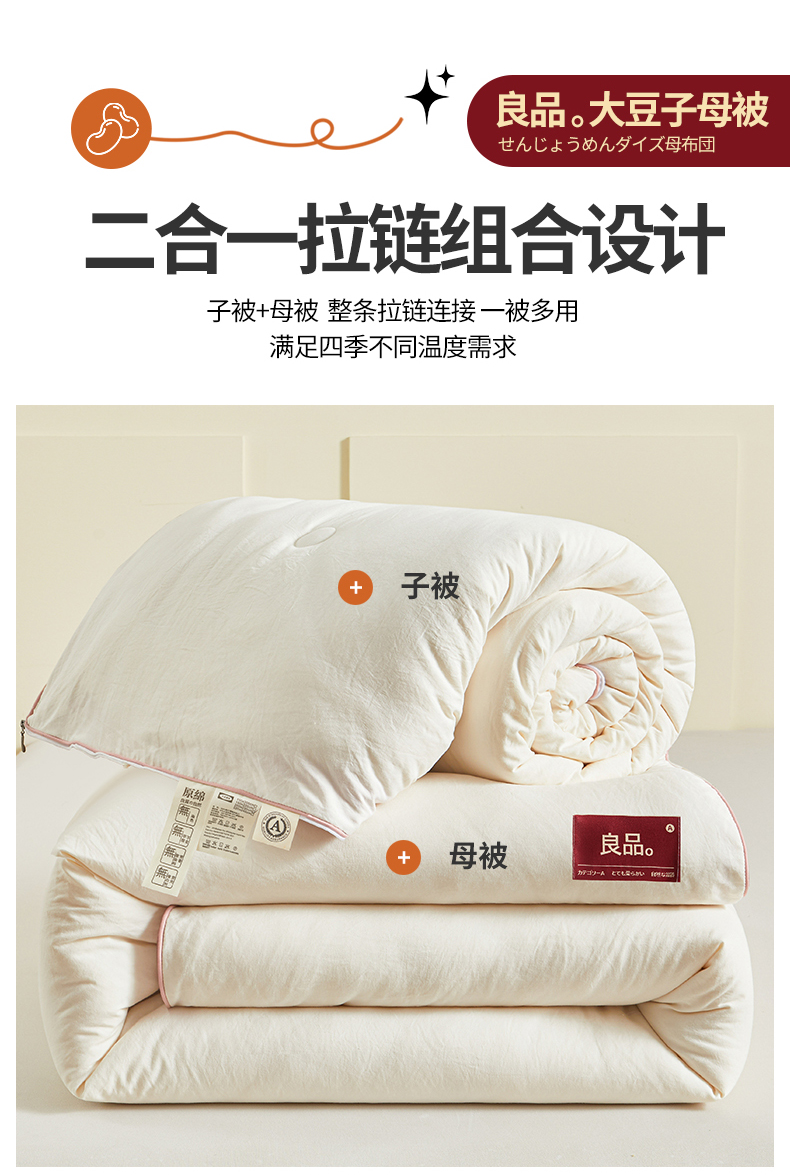 商品名称:(总)逸居家纺 2025新款A类水洗棉立体边良品大豆被子母被