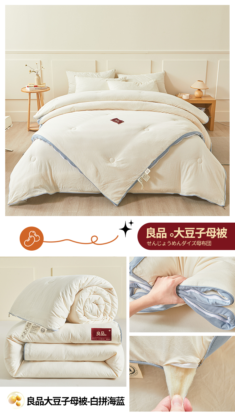 逸居家纺 2025新款A类水洗棉立体边良品大豆被子母被 良品大豆子母被-白拼天蓝,良品大豆子母被-白拼天蓝