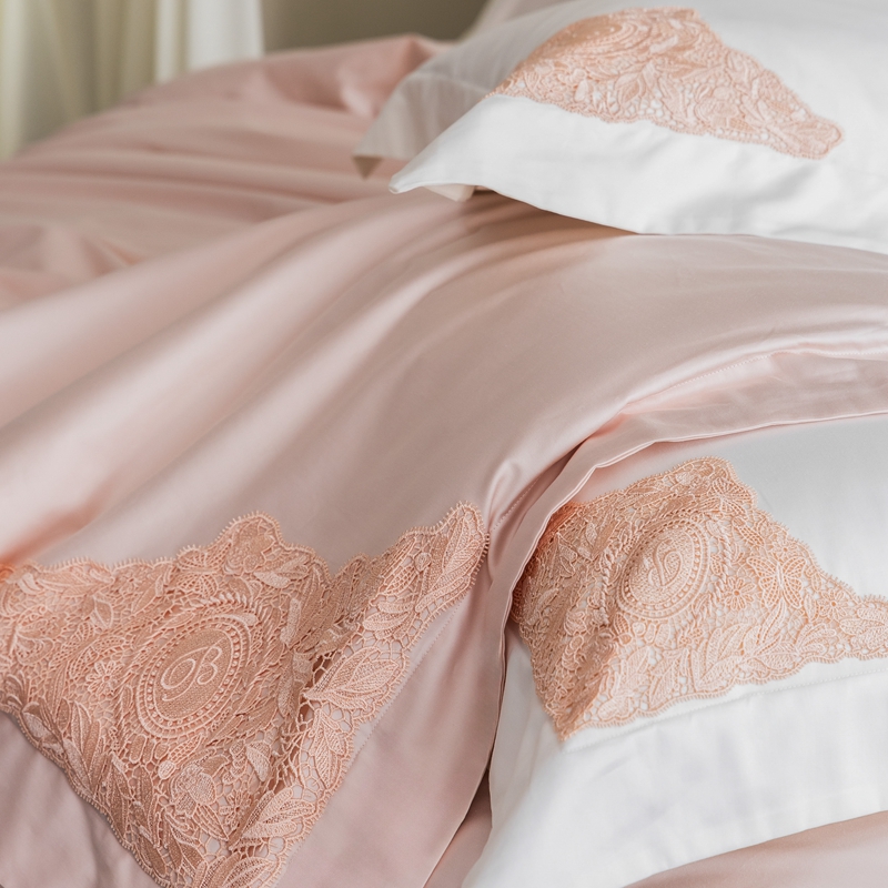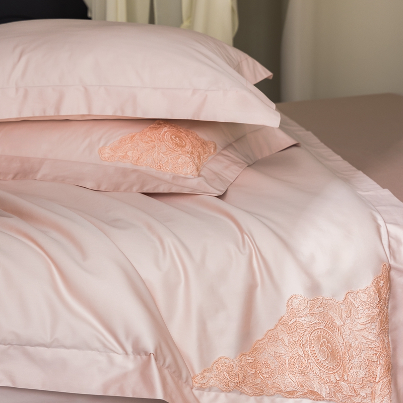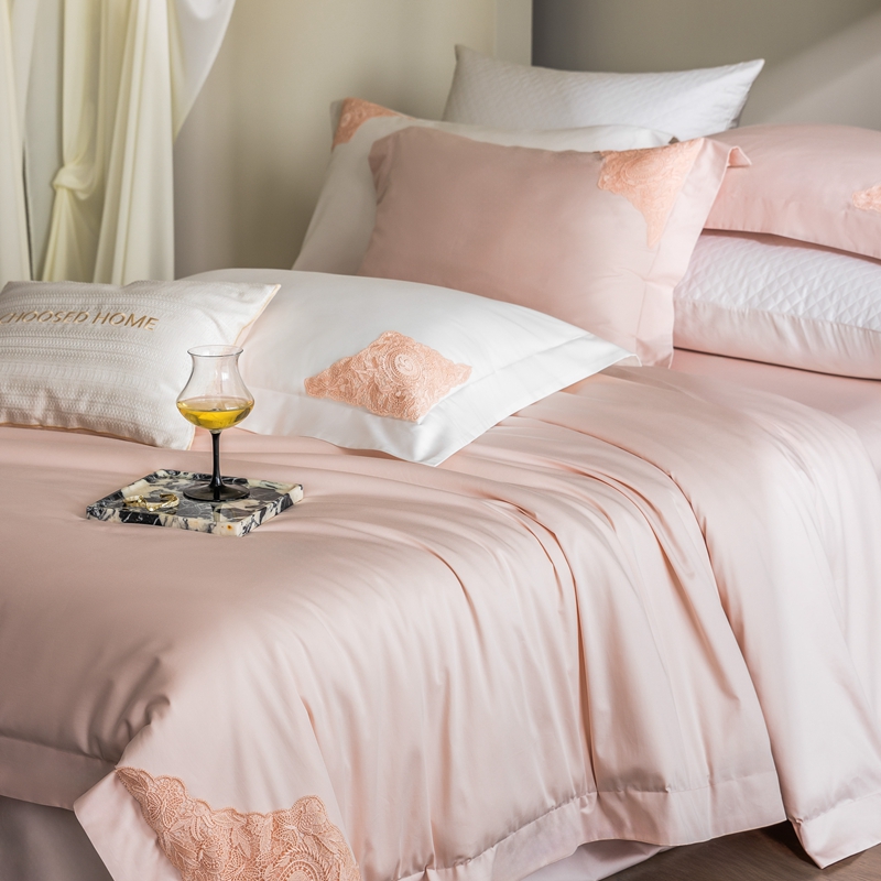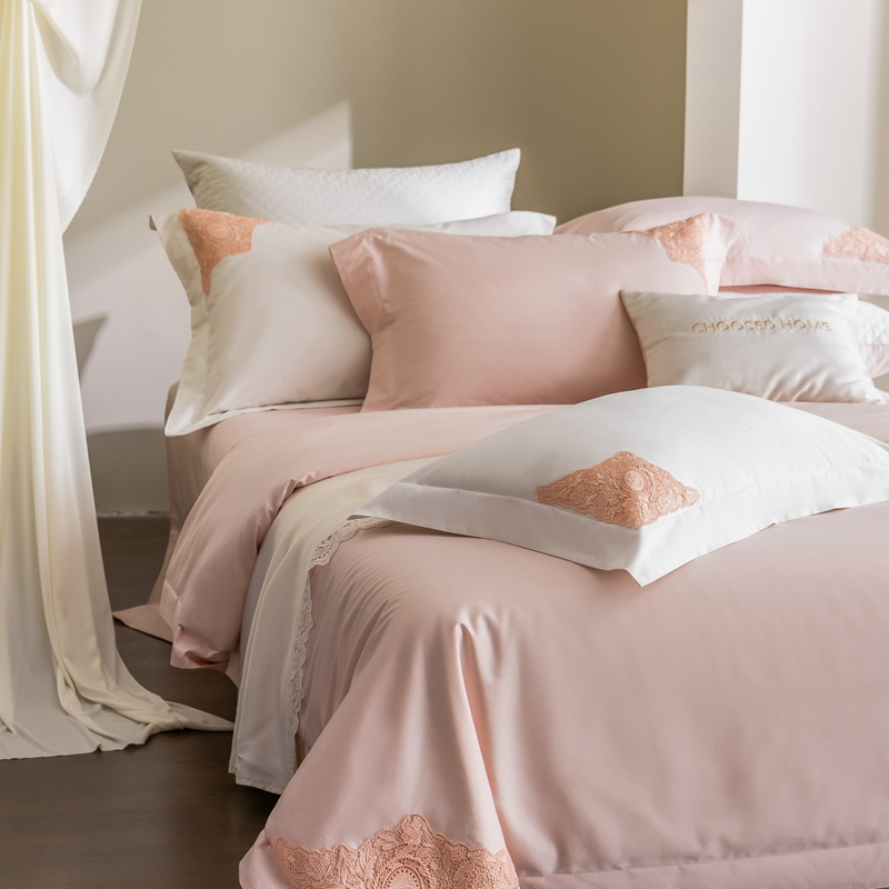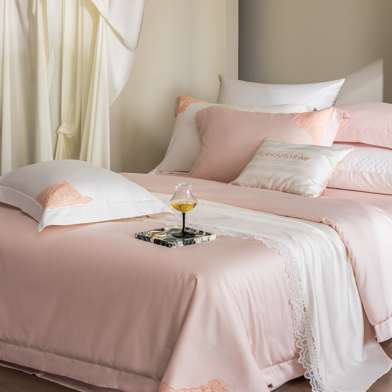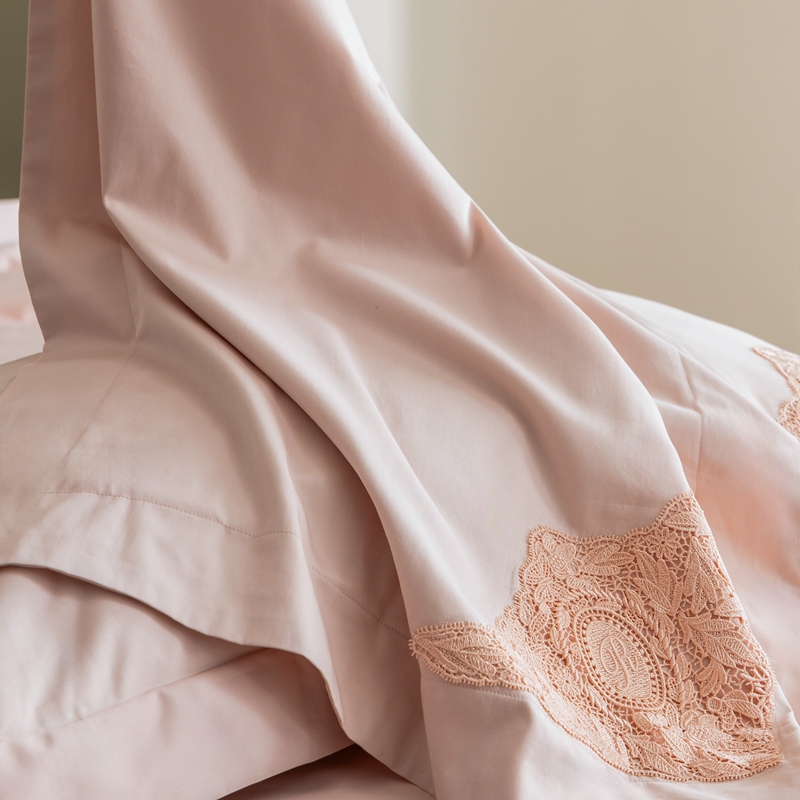 商品名称:初拾 2025新款100s全棉“精致”蕾丝花边四件套—嘉柏丽尔 嘉柏丽尔-浅樱粉