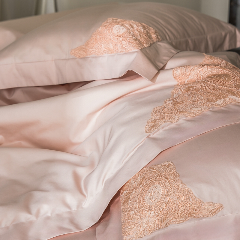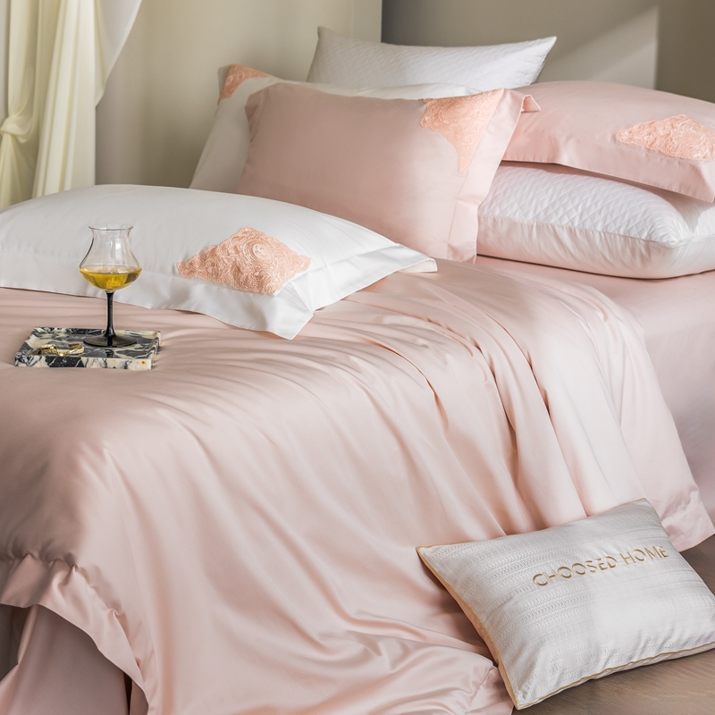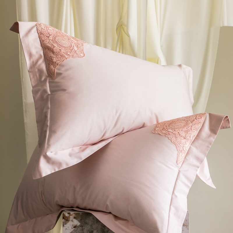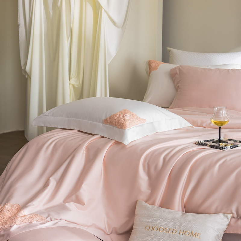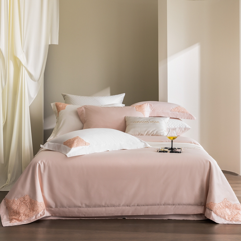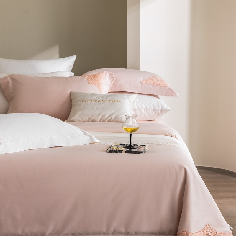 商品名称:初拾 2025新款100s全棉“精致”蕾丝花边四件套—嘉柏丽尔 嘉柏丽尔-浅樱粉