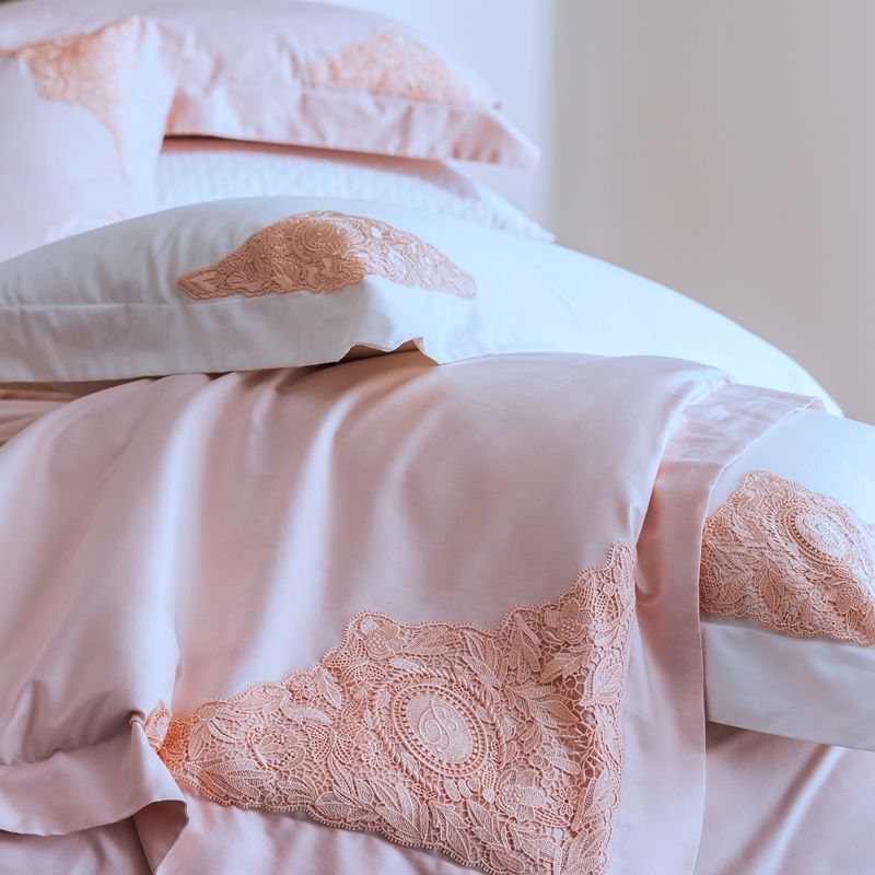 初拾 2025新款100s全棉“精致”蕾丝花边四件套—嘉柏丽尔 嘉柏丽尔-浅樱粉