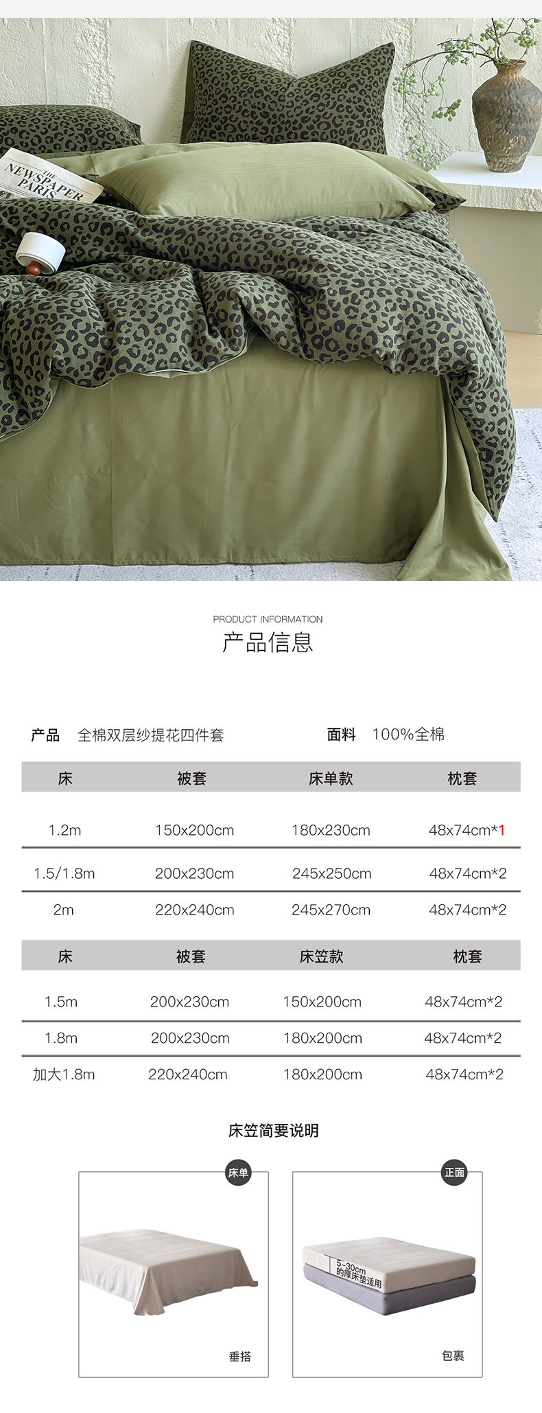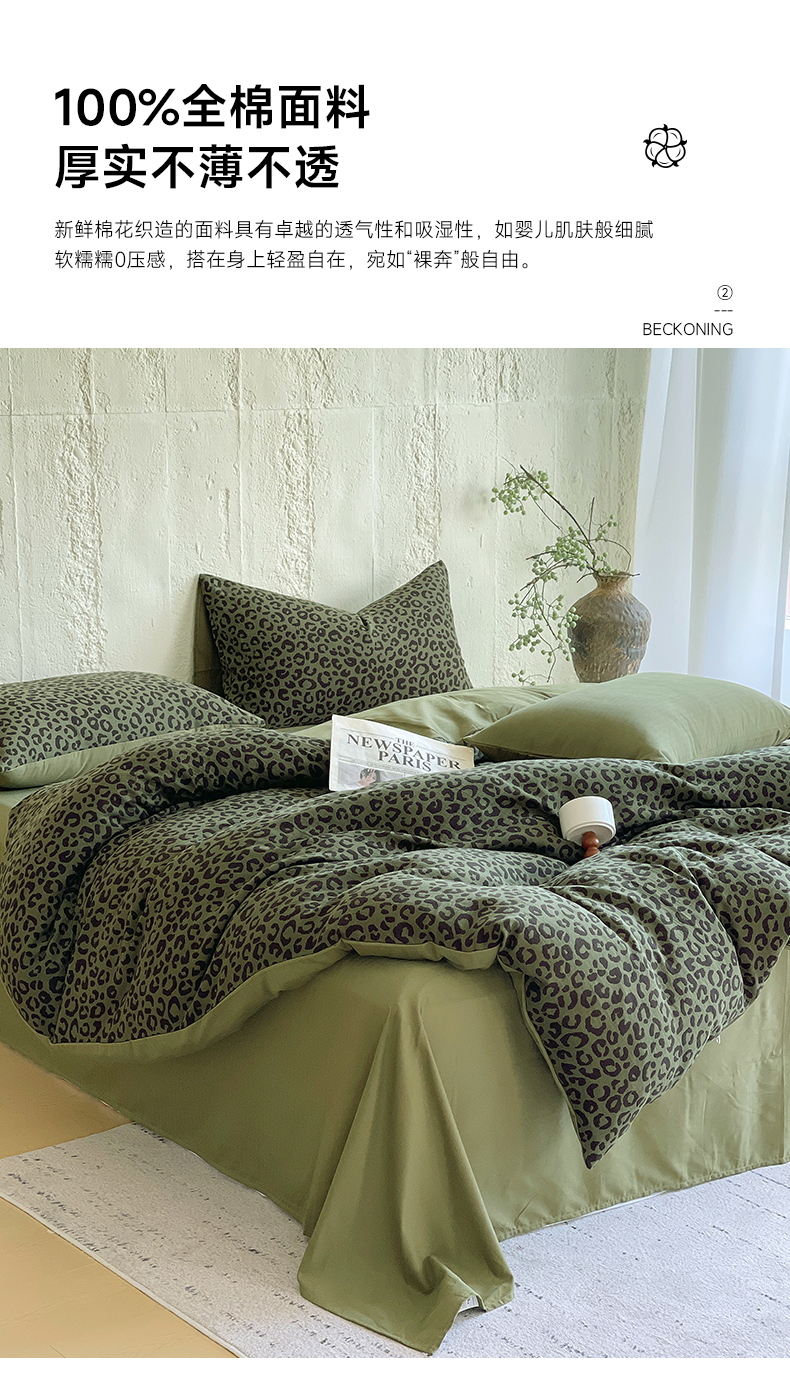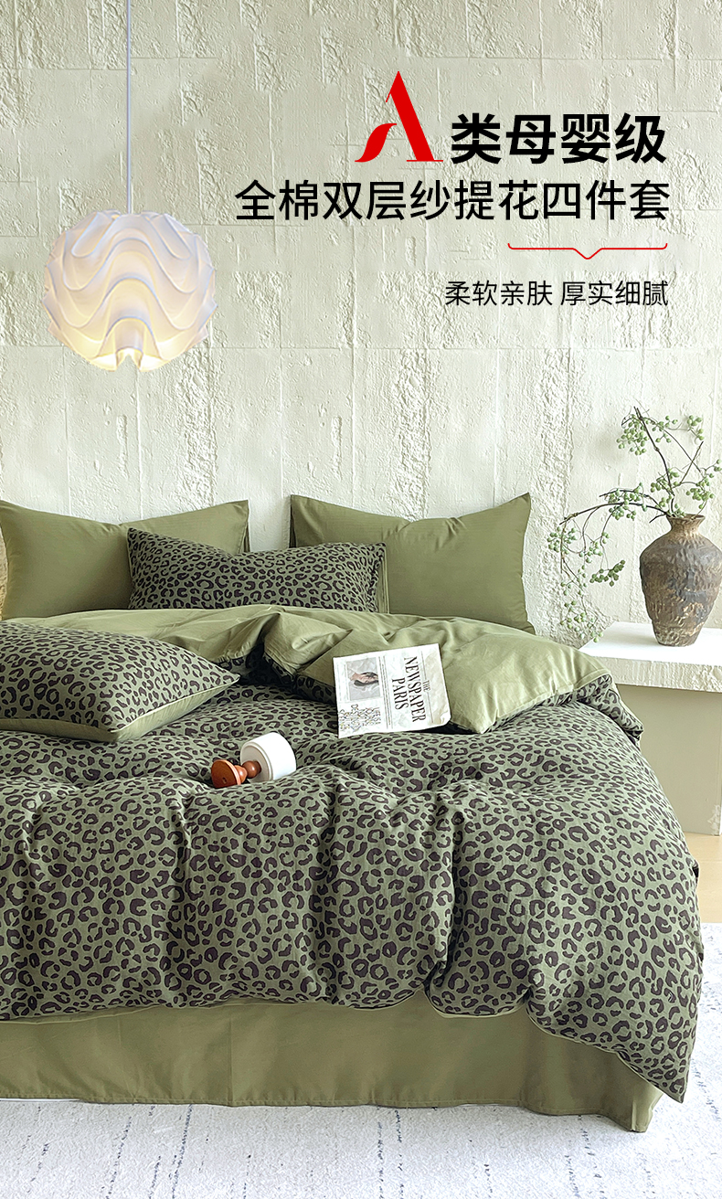 商品名称:佰亿莱 2026新款棉麻双层纱四件套 豹纹