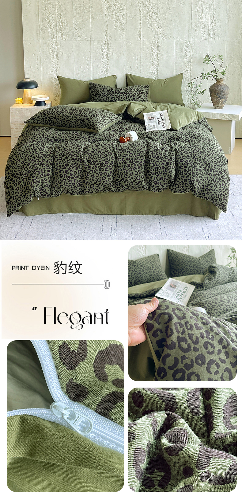 佰亿莱 2026新款棉麻双层纱四件套 豹纹