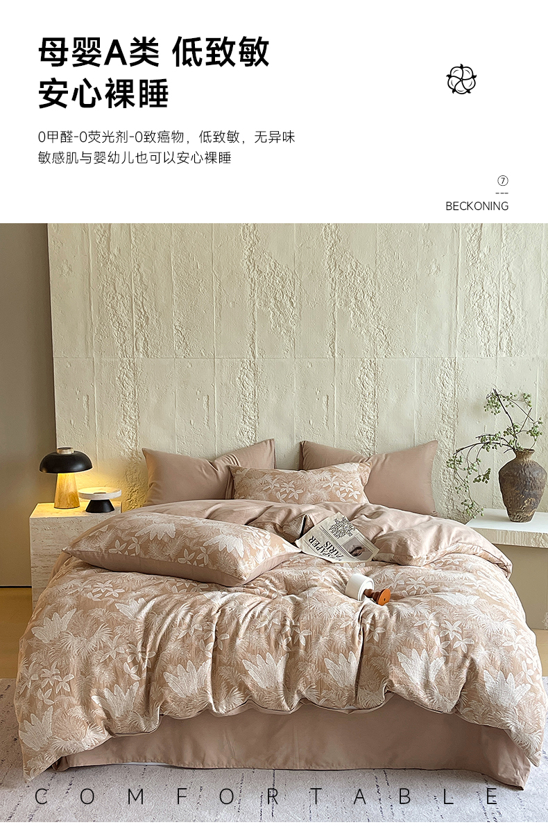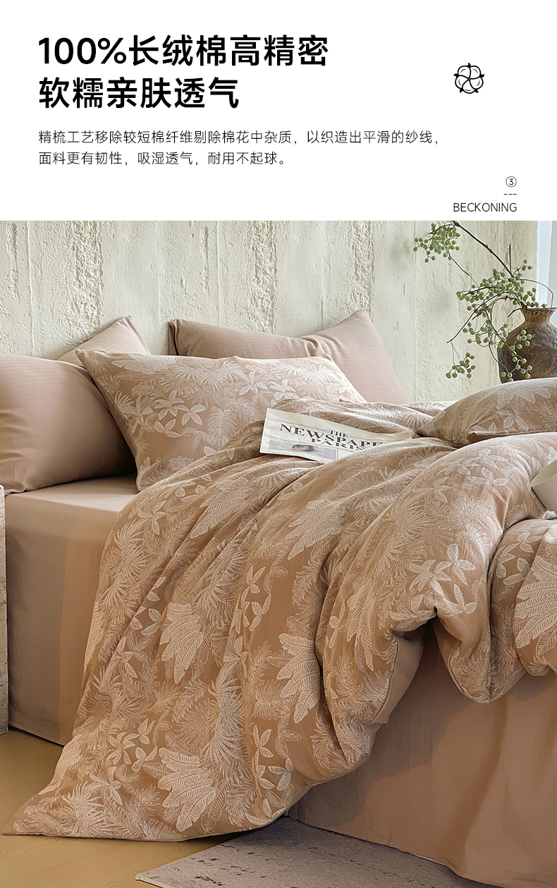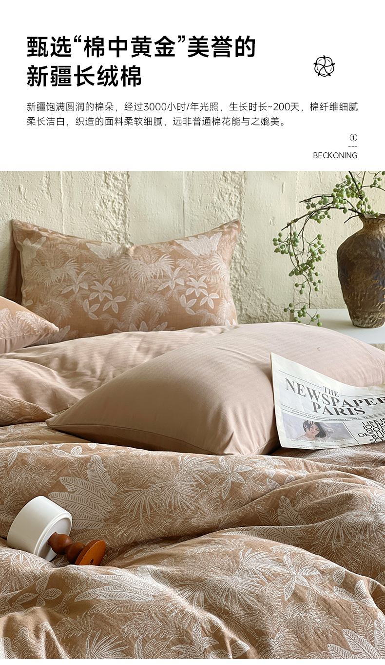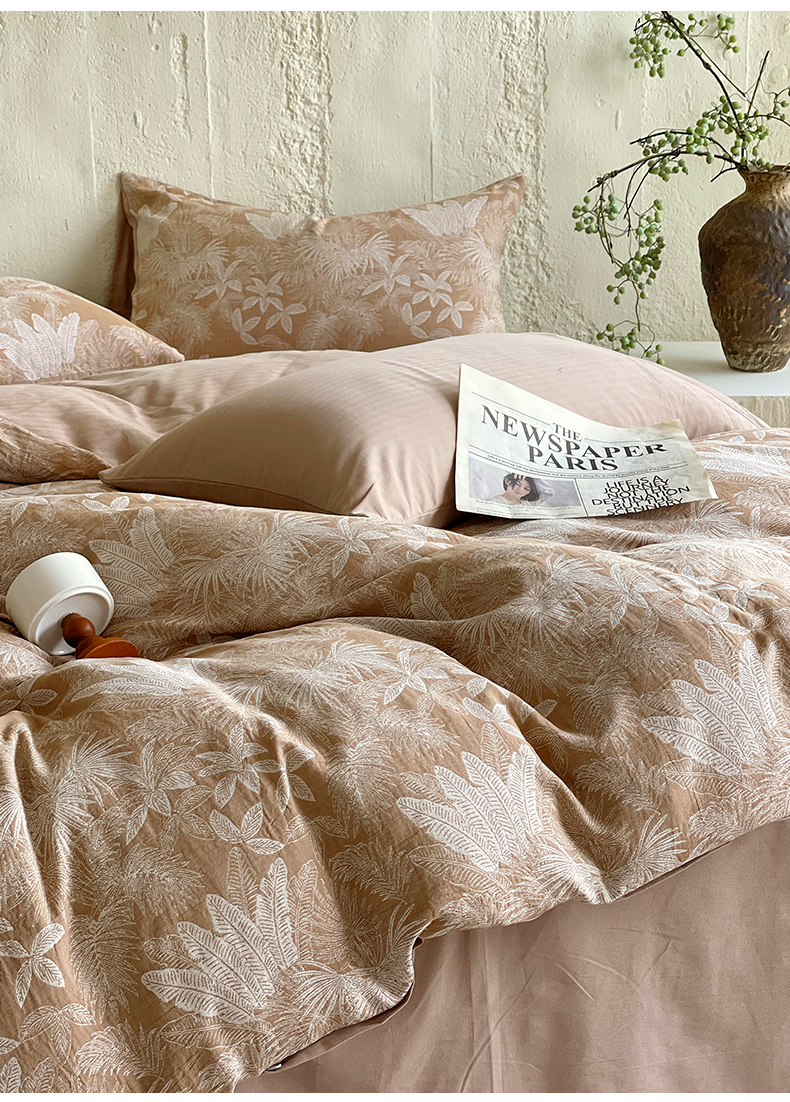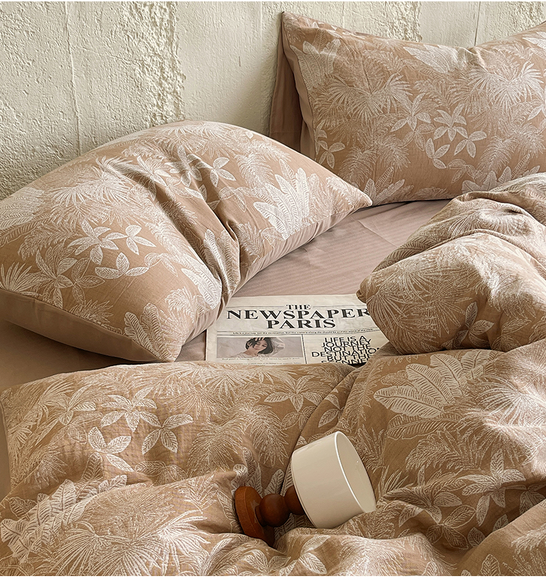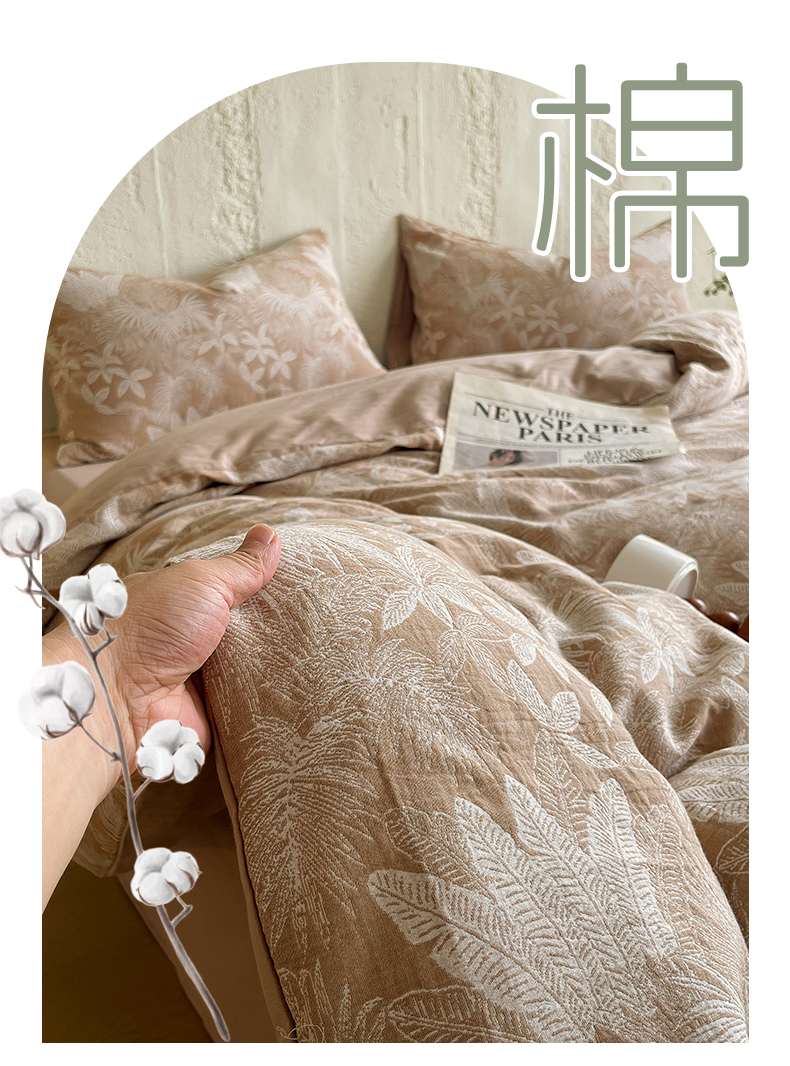 佰亿莱 2026新款棉麻双层纱四件套 云木林-奶咖