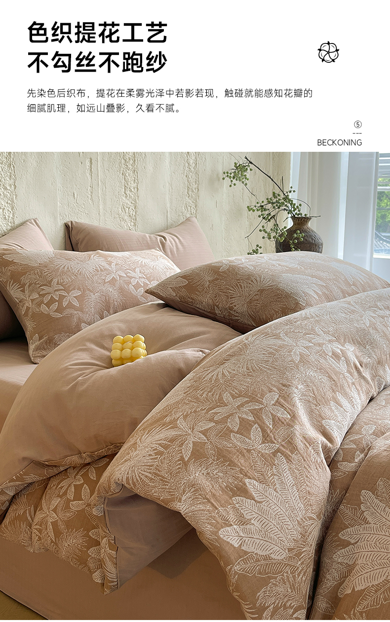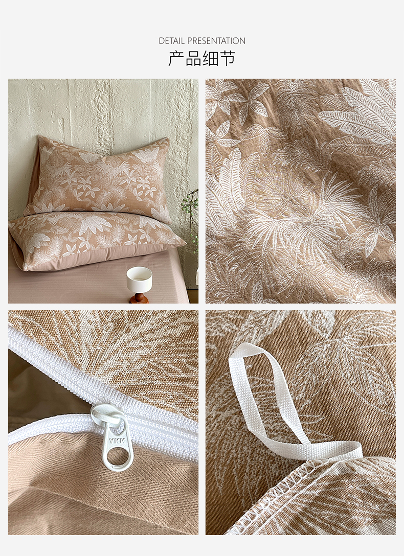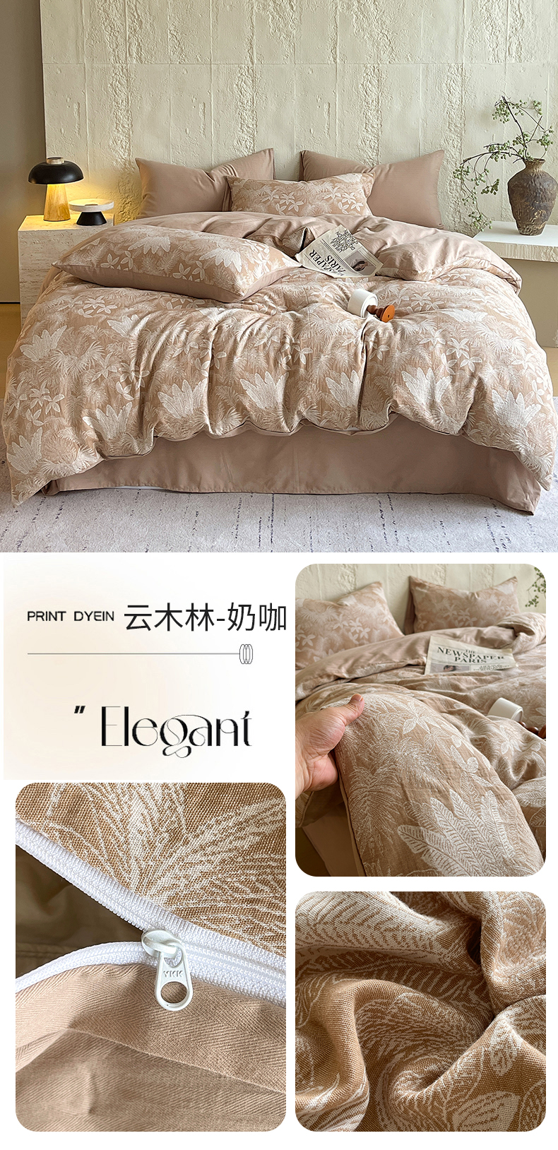 商品名称:佰亿莱 2026新款棉麻双层纱四件套 云木林-奶咖