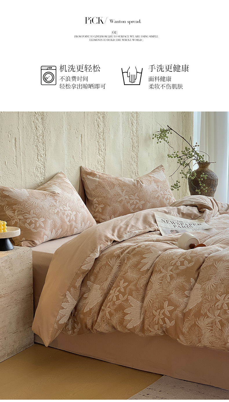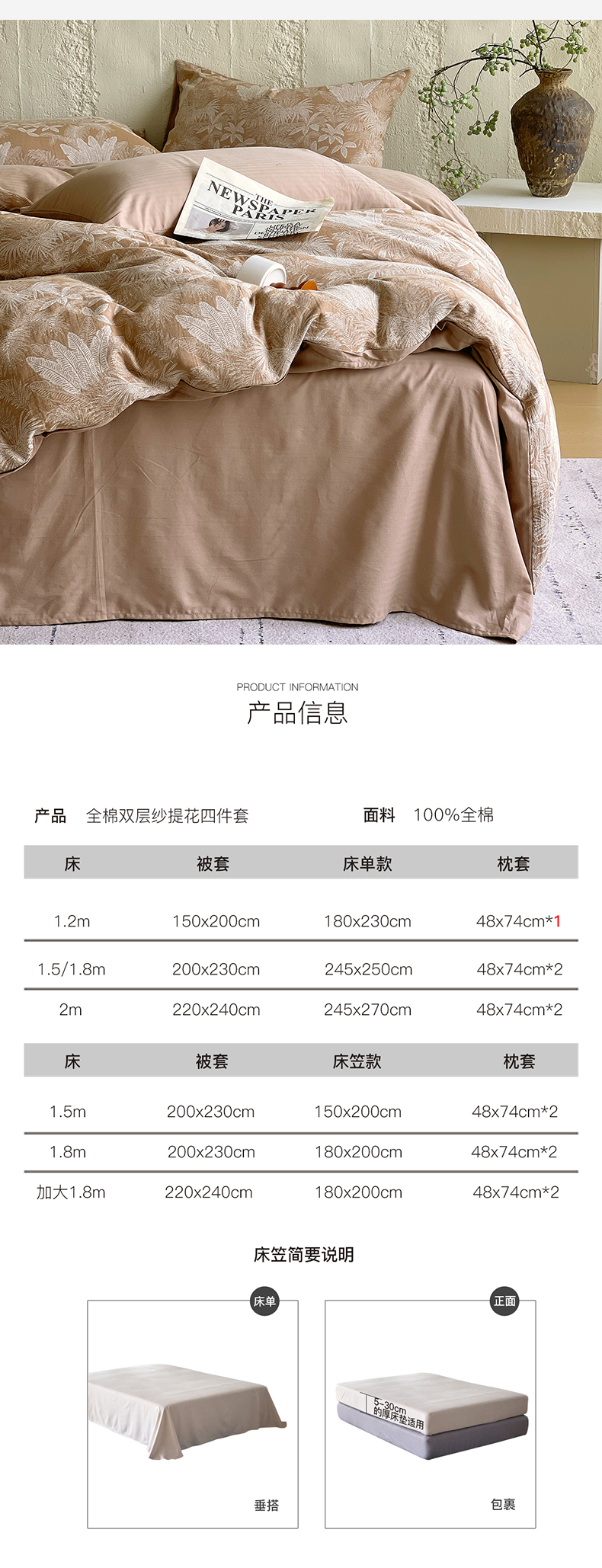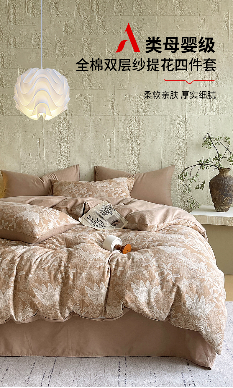 商品名称:佰亿莱 2026新款棉麻双层纱四件套 云木林-奶咖