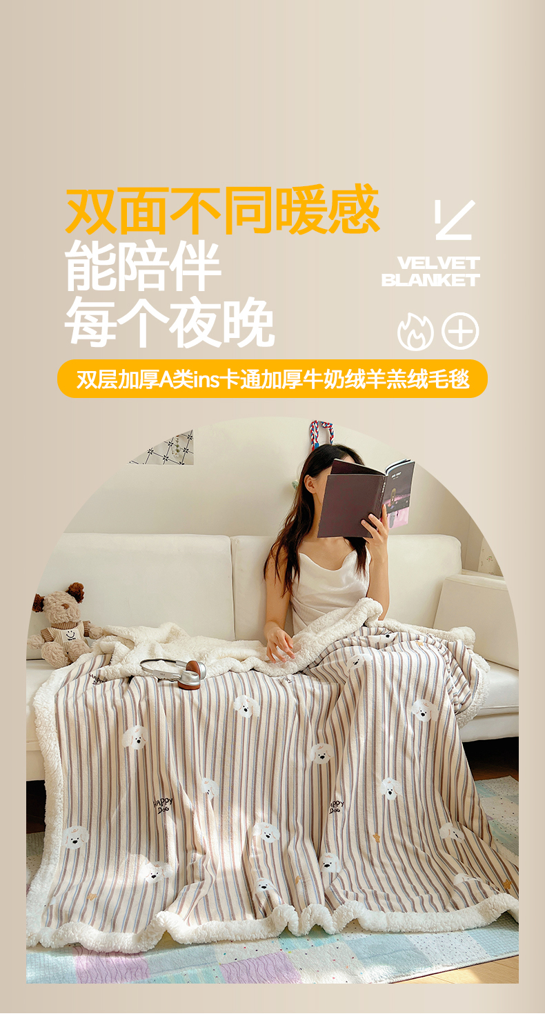 当前位置: 91家纺网 > 商品网购 > 毛毯休闲毯绒毯 > 毛毯 > 桃子家居 2025新款A类ins小清新少女可爱奶油猫咪卡通加厚牛奶绒羊羔绒毛毯多功能毛毯 绒毛毯-MT蓝咖小狗