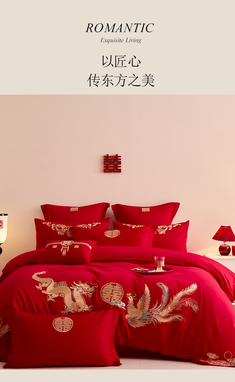 当前位置: 91家纺网 > 商品网购 > 床品套件 > 四件套 > 其它四件套 > 东方合美(原:皇家传奇) 2025新款婚庆小红书化纤系列二 欢龙喜凤