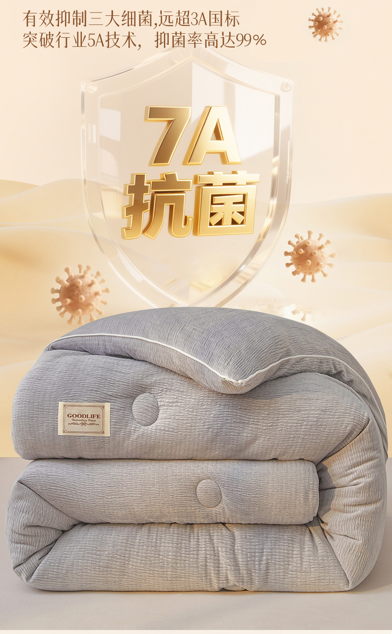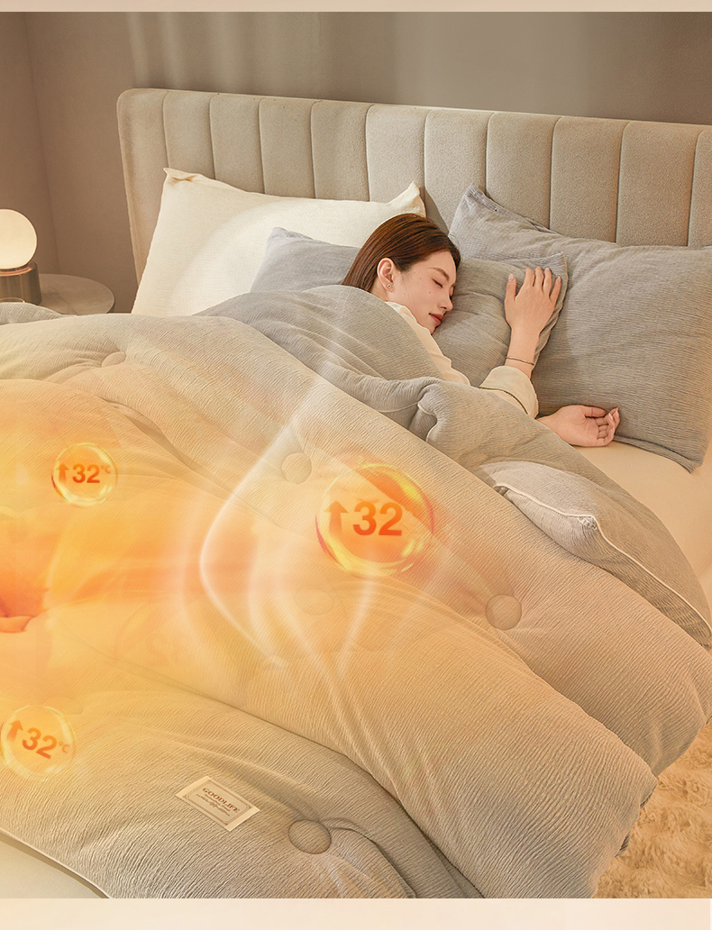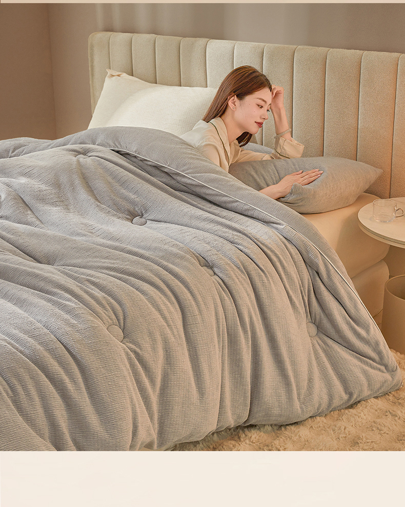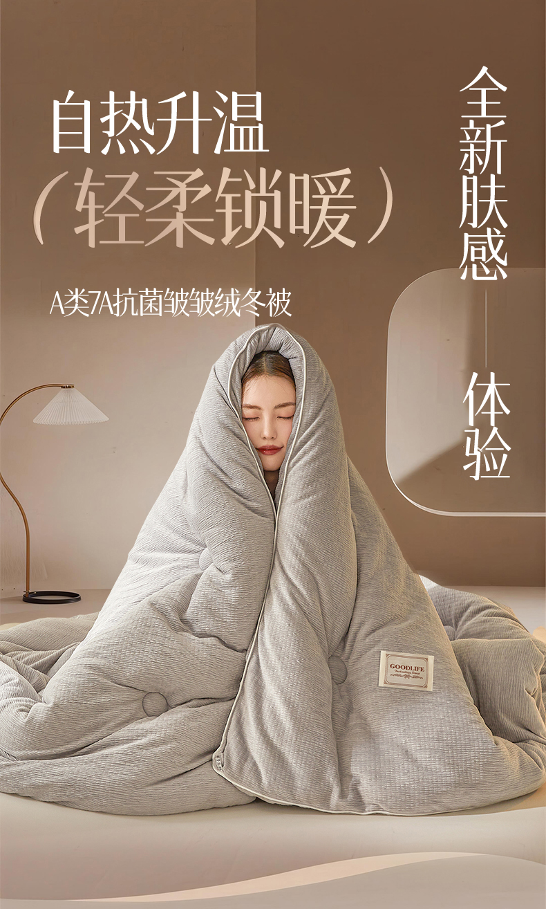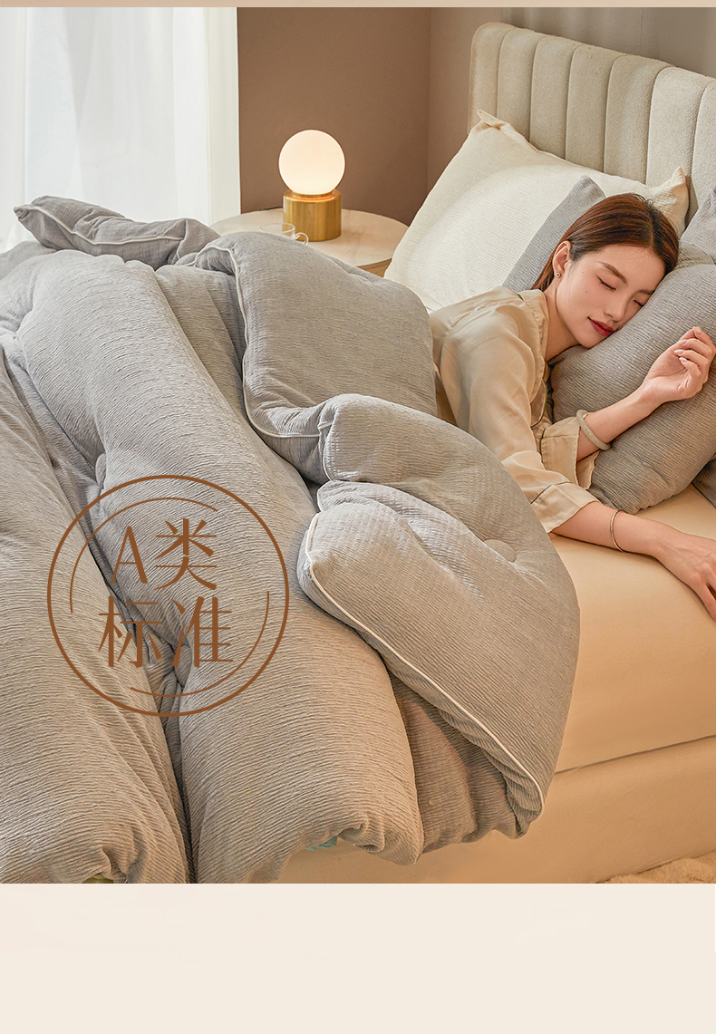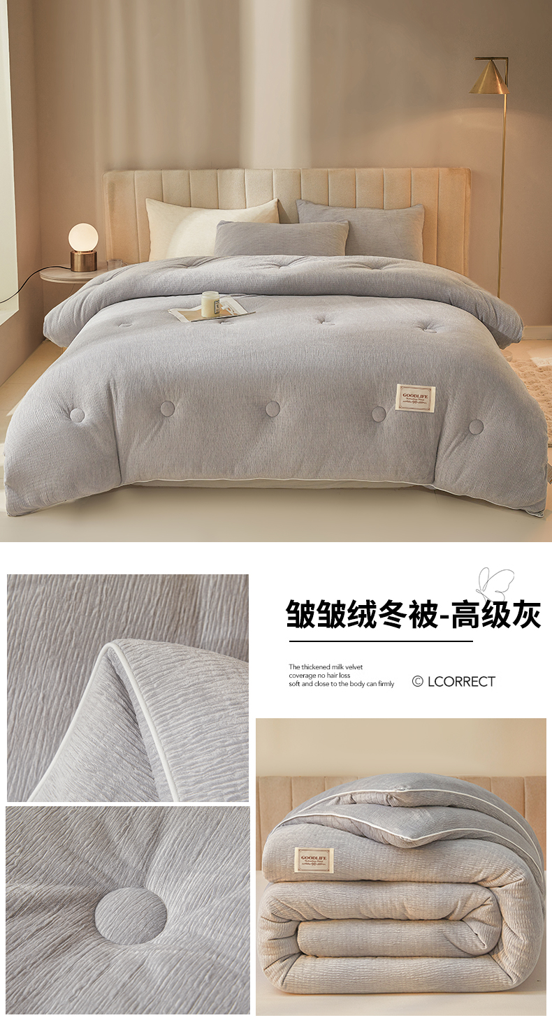 商品名称:雯豆家纺 2025秋冬新款加厚皱皱绒被子冬被高档被芯双人单人被子 皱皱绒冬被-高级灰