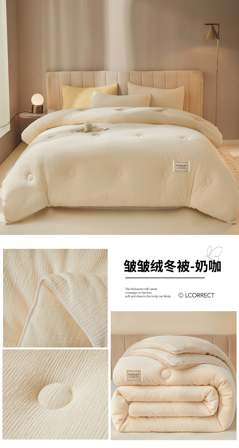 (总)雯豆家纺 2025秋冬新款加厚皱皱绒被子冬被高档被芯双人单人被子,皱皱绒冬被-高级灰,皱皱绒冬被-奶咖