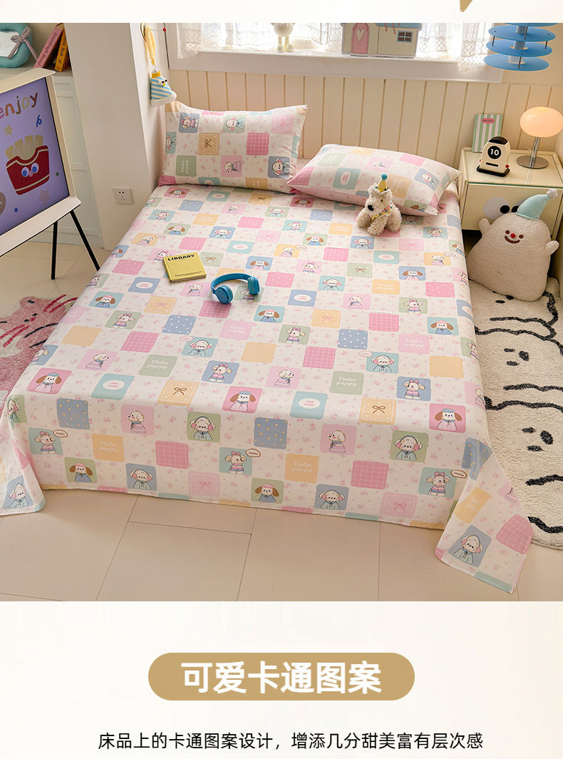 • 91家纺网 家纺一手货源 找家纺 典曼家纺 2025新款40支学生季卡通印花床单单床单床单单件 可爱多
