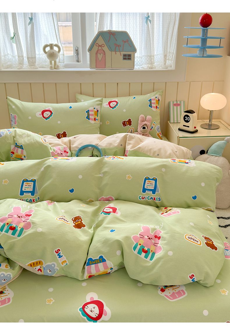 当前位置: 91家纺网 > 商品网购 > 床品套件 > 四件套 > 全棉普通四件套 > 典曼家纺 2025新款40支学生季卡通印花四件套 趣味熊