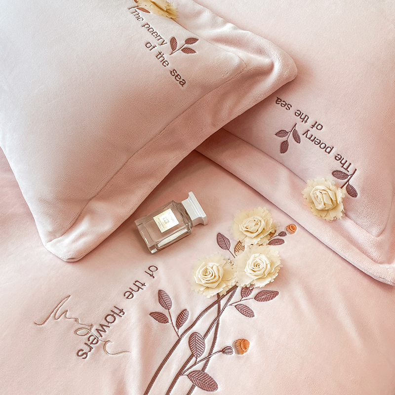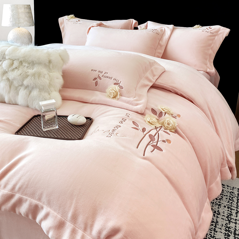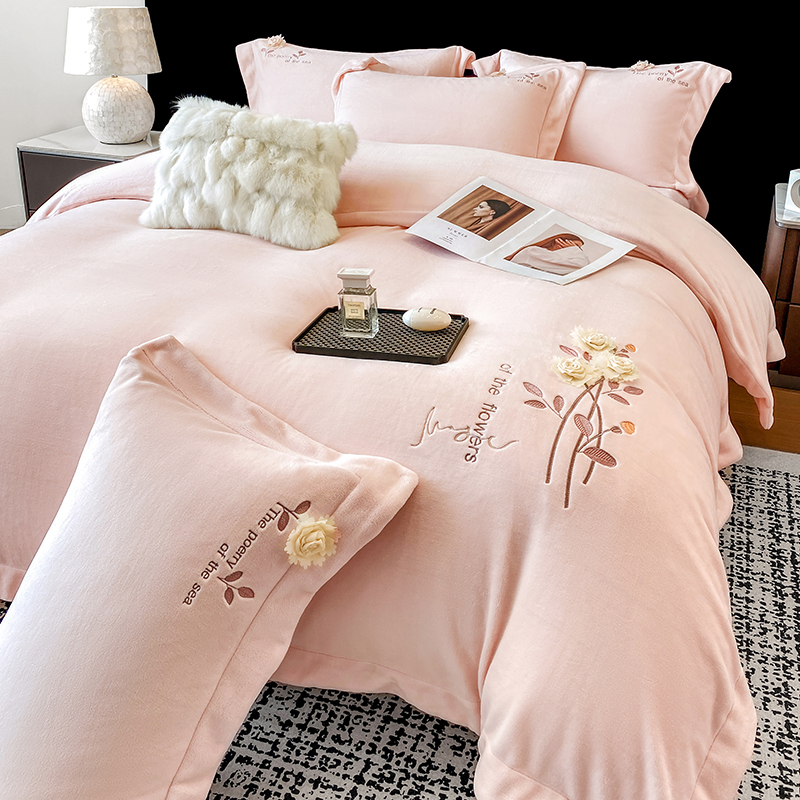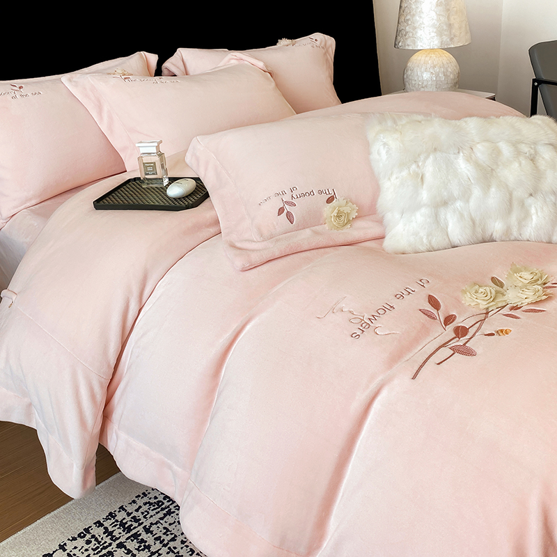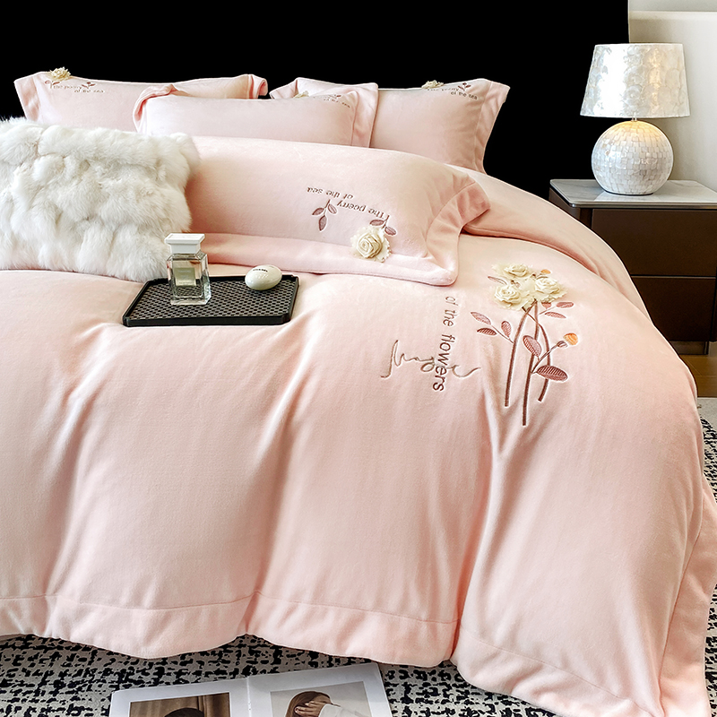 席之家 2025新款刺绣牛奶绒四件套 花语-少女粉