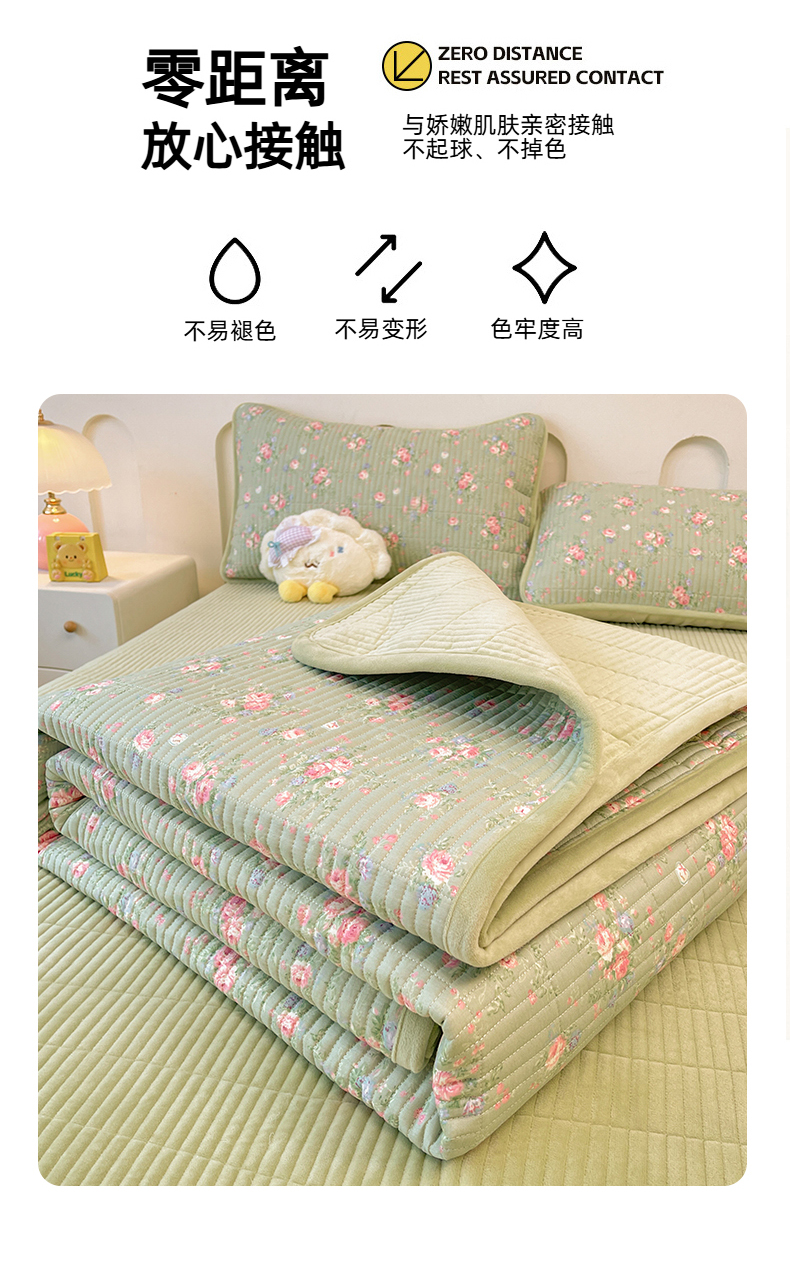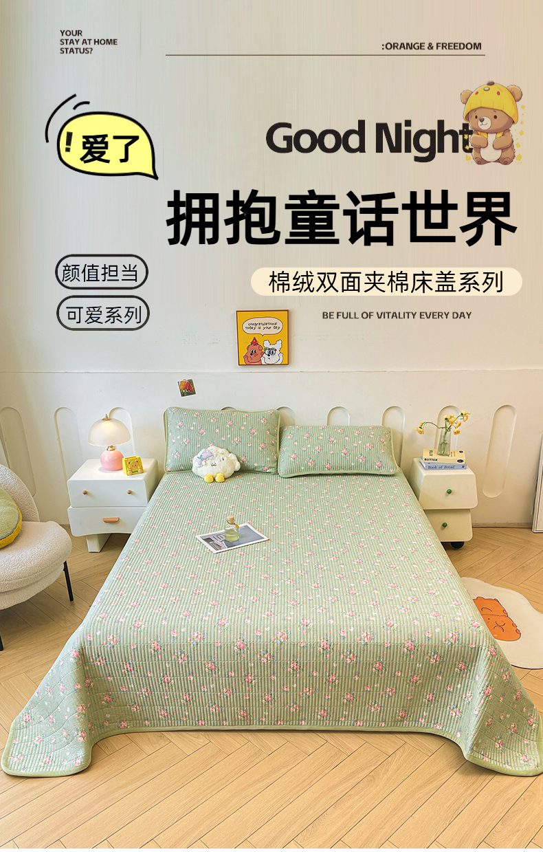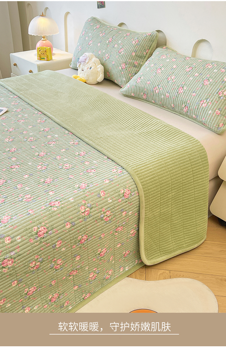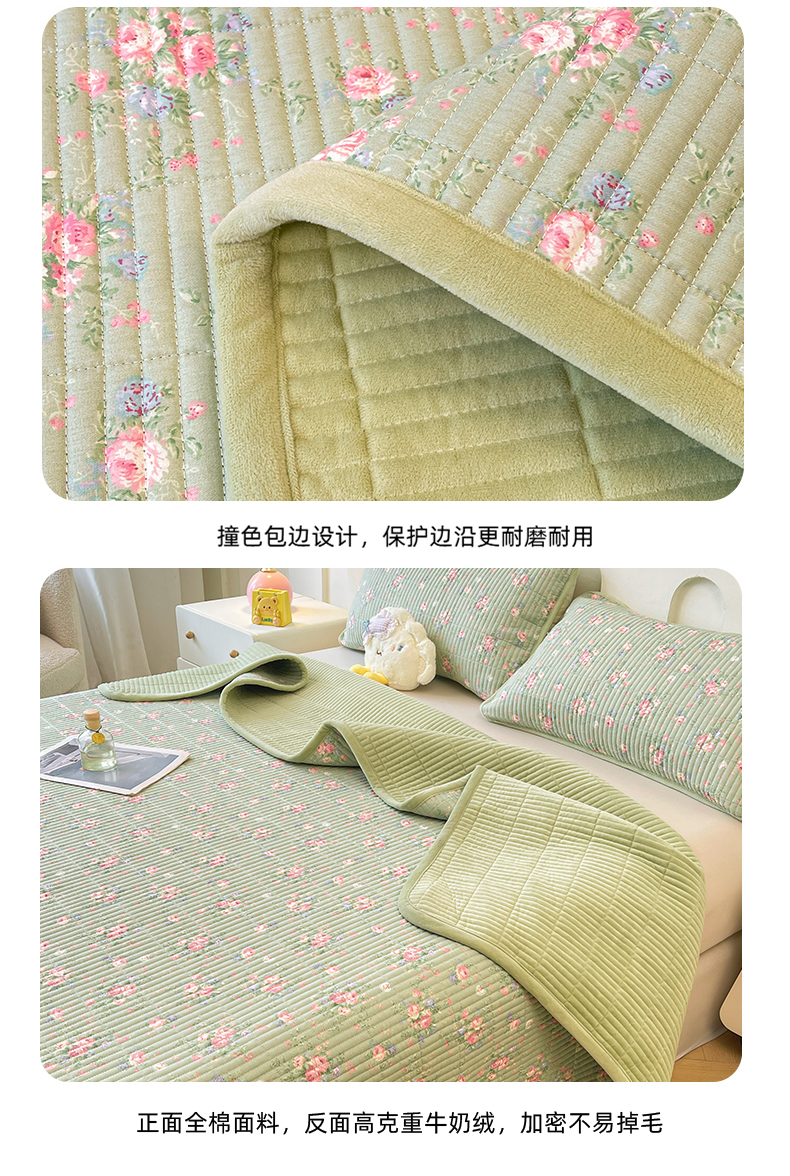 • 91家纺网 家纺一手货源 找家纺 梵朴 2025新款A类棉加绒一面纯棉一面宝宝婴儿牛奶绒双面可用床盖单品学生床垫炕盖 沫熙花-绿