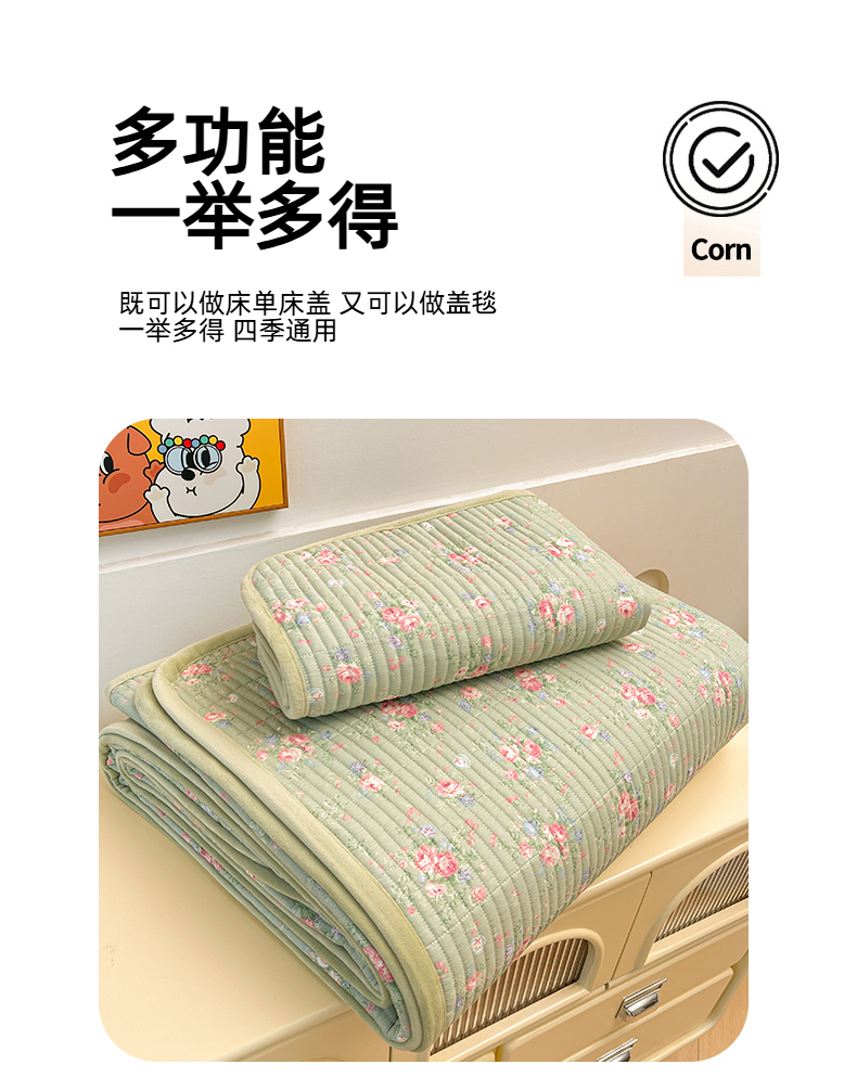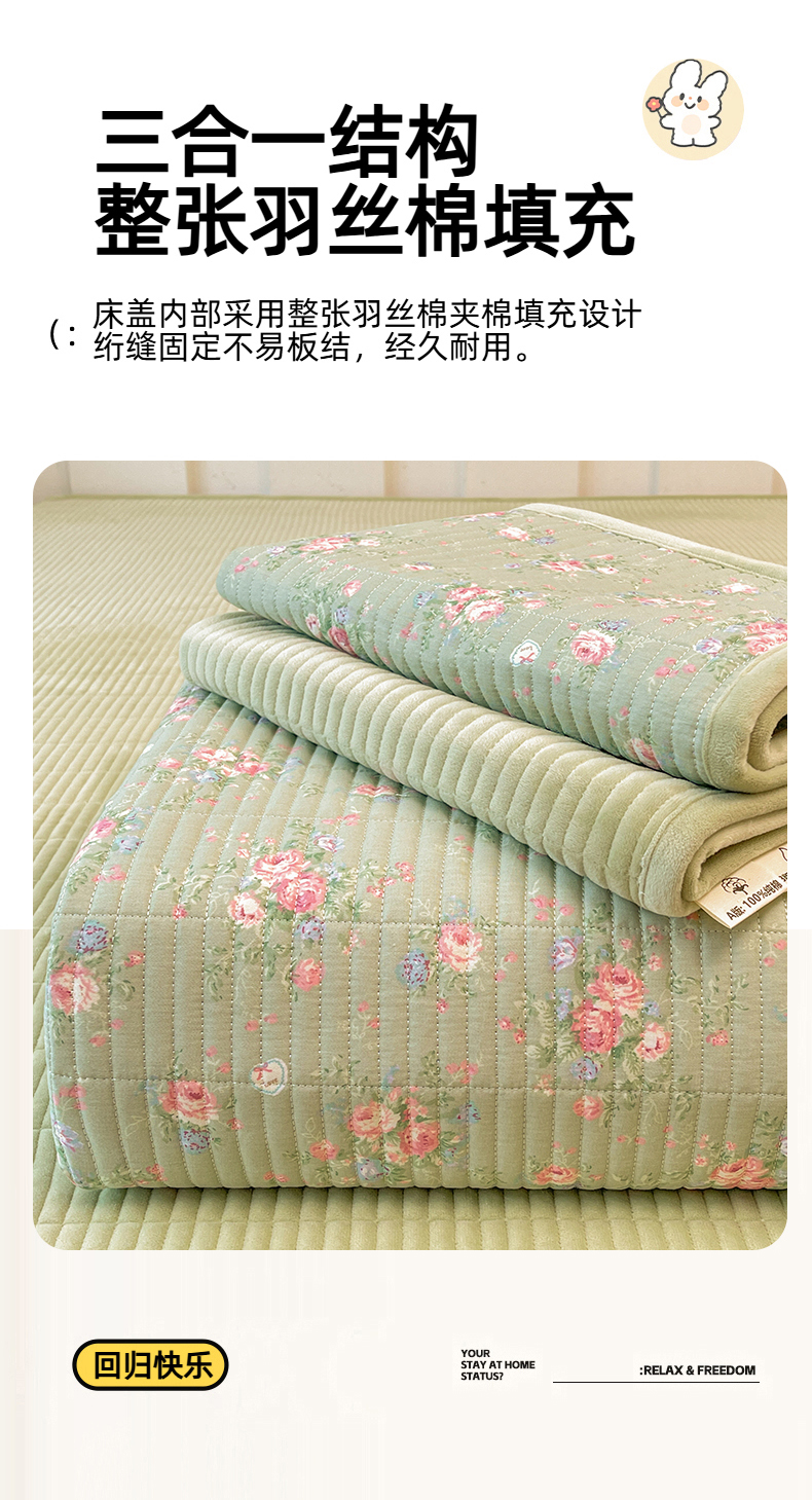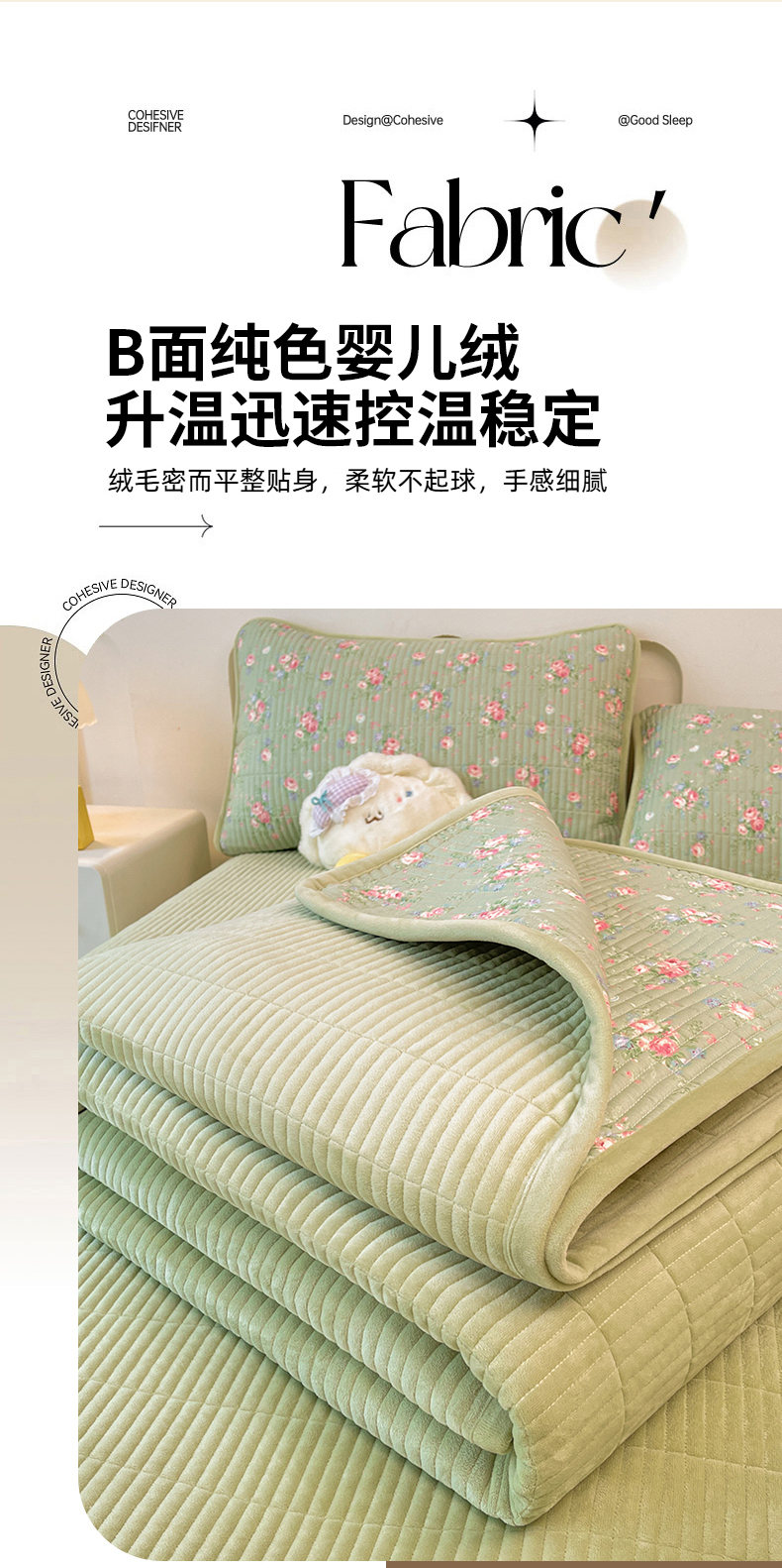 • 91家纺网 家纺一手货源 找家纺 梵朴 2025新款A类棉加绒一面纯棉一面宝宝婴儿牛奶绒双面可用床盖单品学生床垫炕盖 沫熙花-绿
