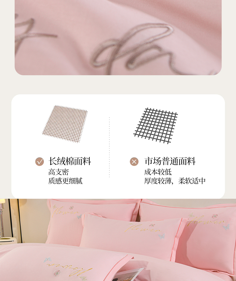 绒小宣 2025新款高克重牛奶绒刺绣四件套 花开富贵-粉,花开富贵-粉