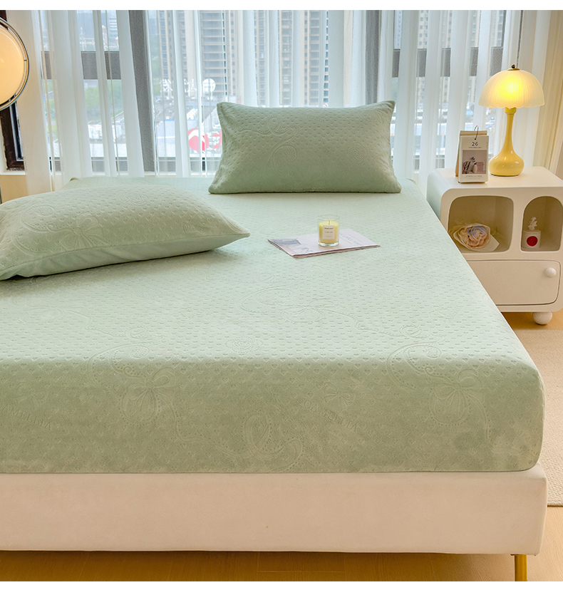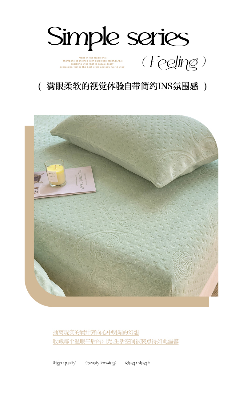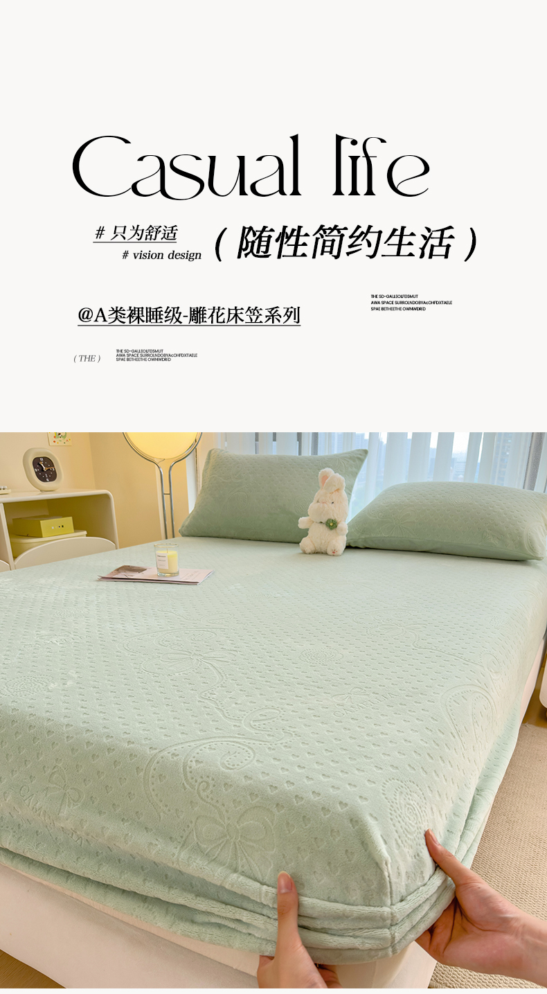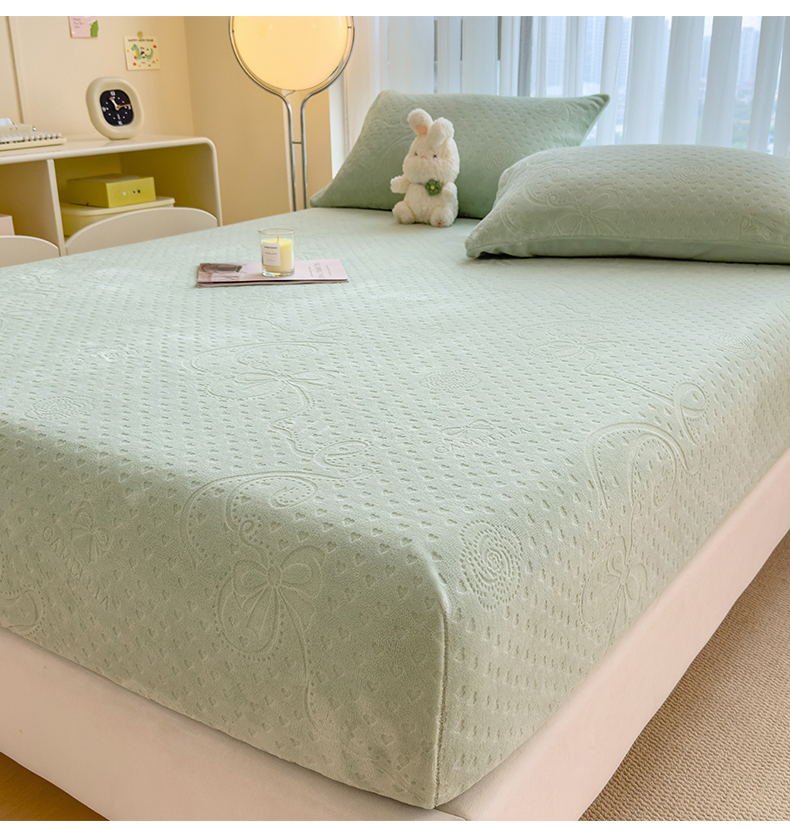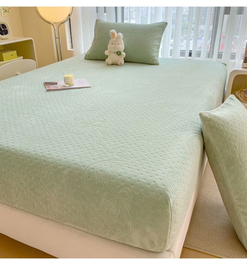 当前位置: 91家纺网 > 商品网购 > 床品套件 > 四件套 > 牛奶绒四件套 > 摩妮卡 2025新款小清新雕花牛奶绒床笠单床笠床笠三件套 凯撒绿