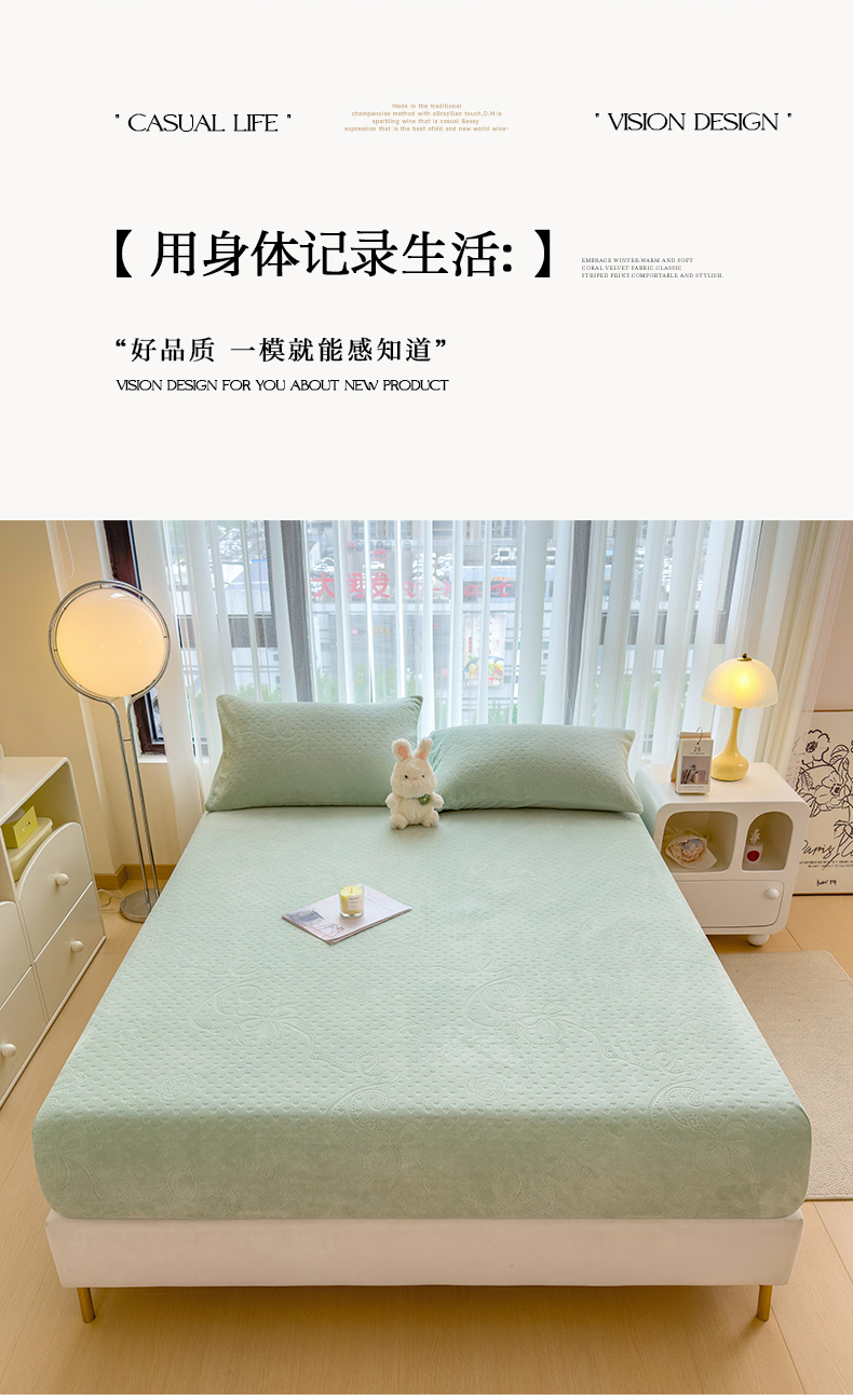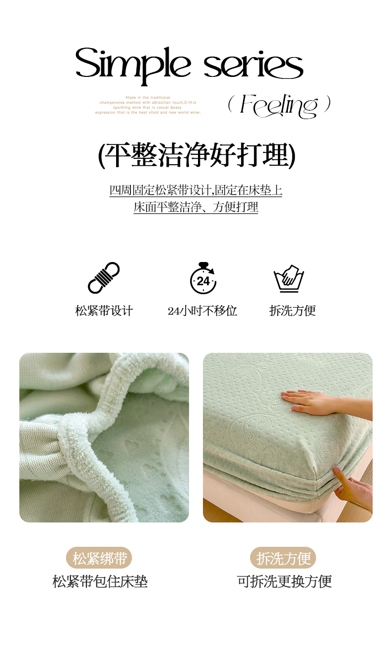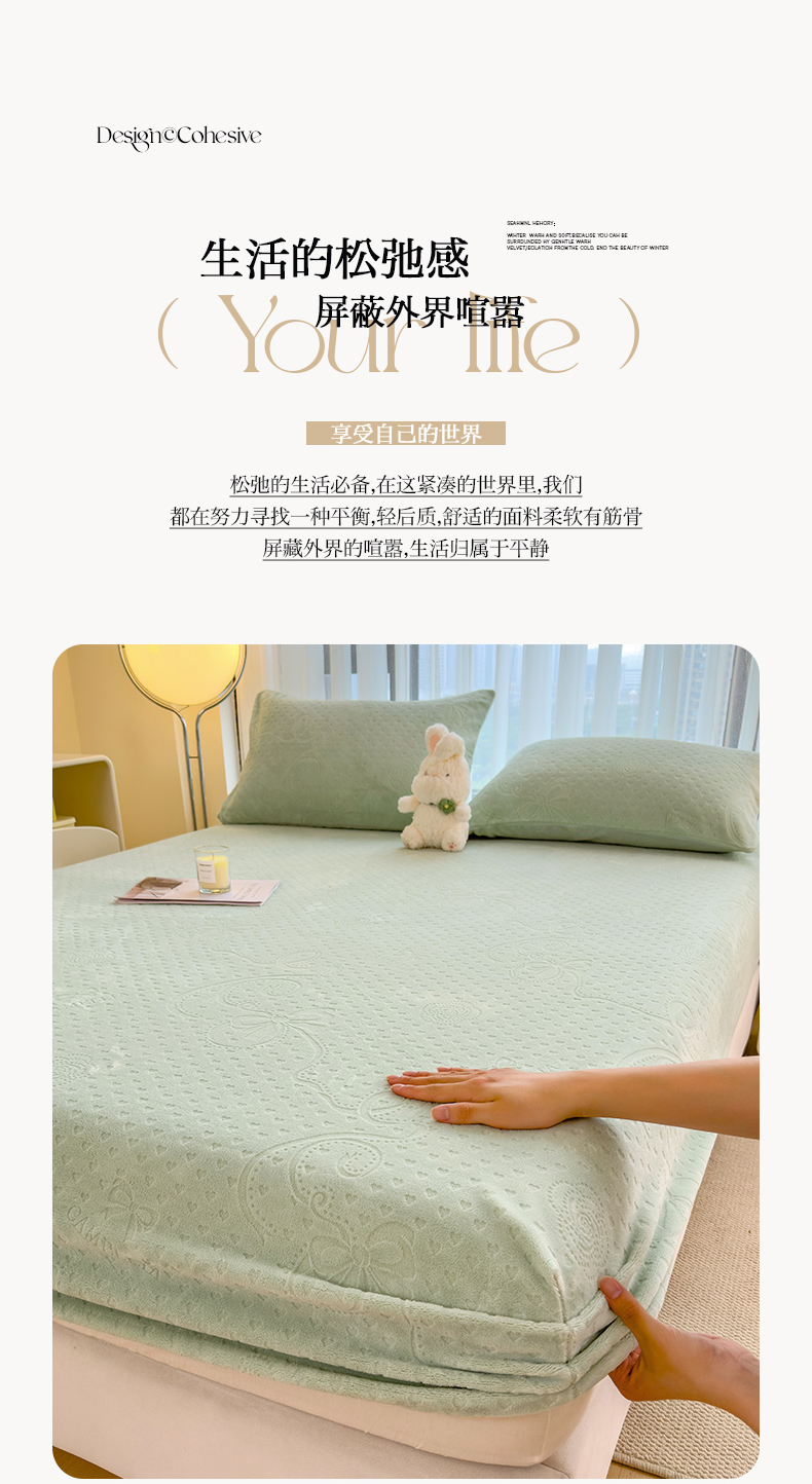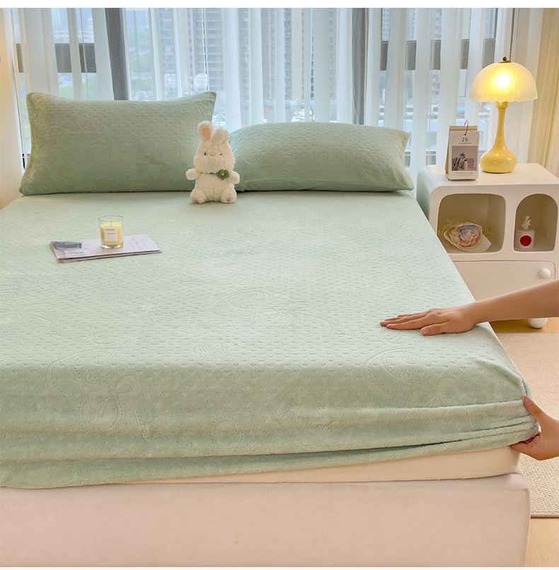 当前位置: 91家纺网 > 商品网购 > 床品套件 > 四件套 > 牛奶绒四件套 > 摩妮卡 2025新款小清新雕花牛奶绒床笠单床笠床笠三件套 凯撒绿