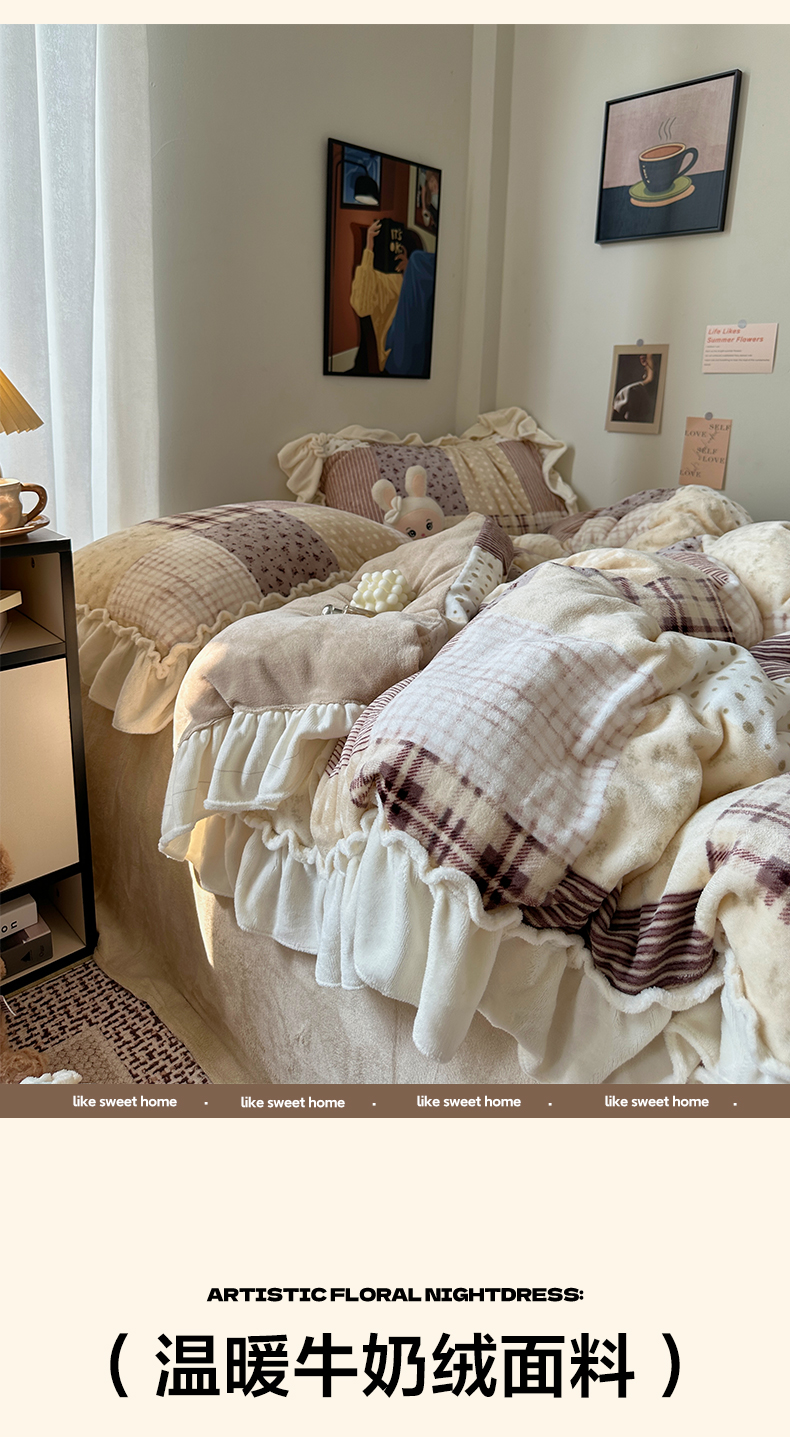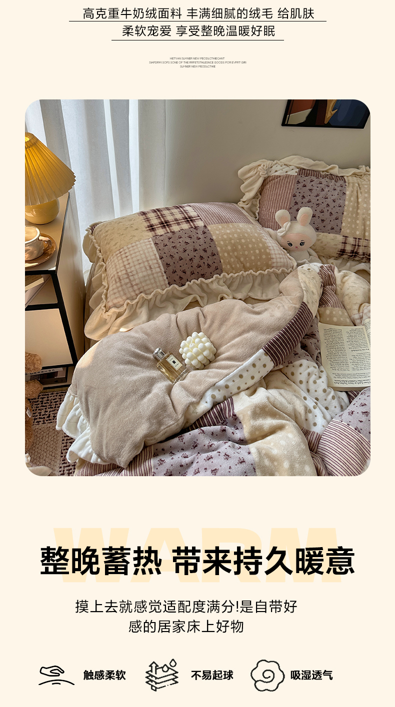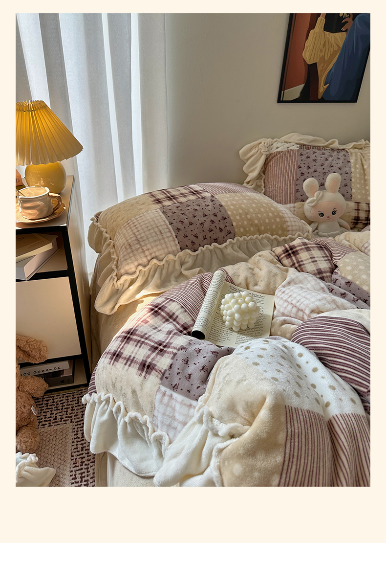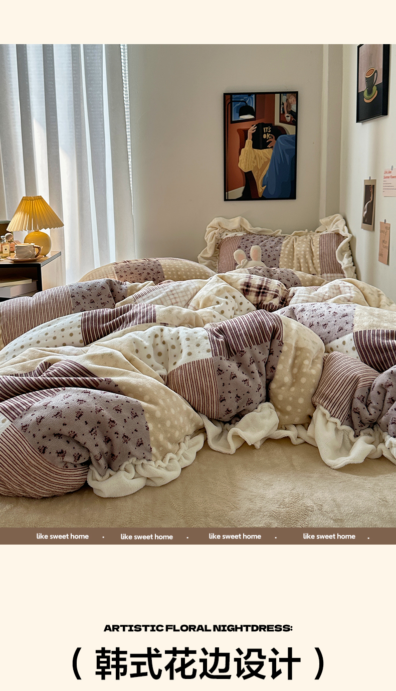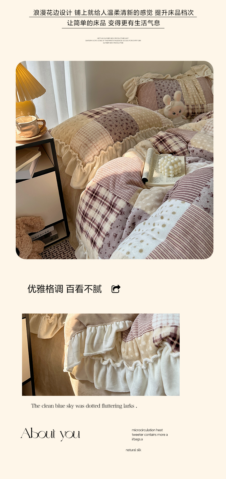 艾咪-Amy ntmy 2025新款博主风花边款牛奶绒四件套-花栖礼 花栖礼-紫