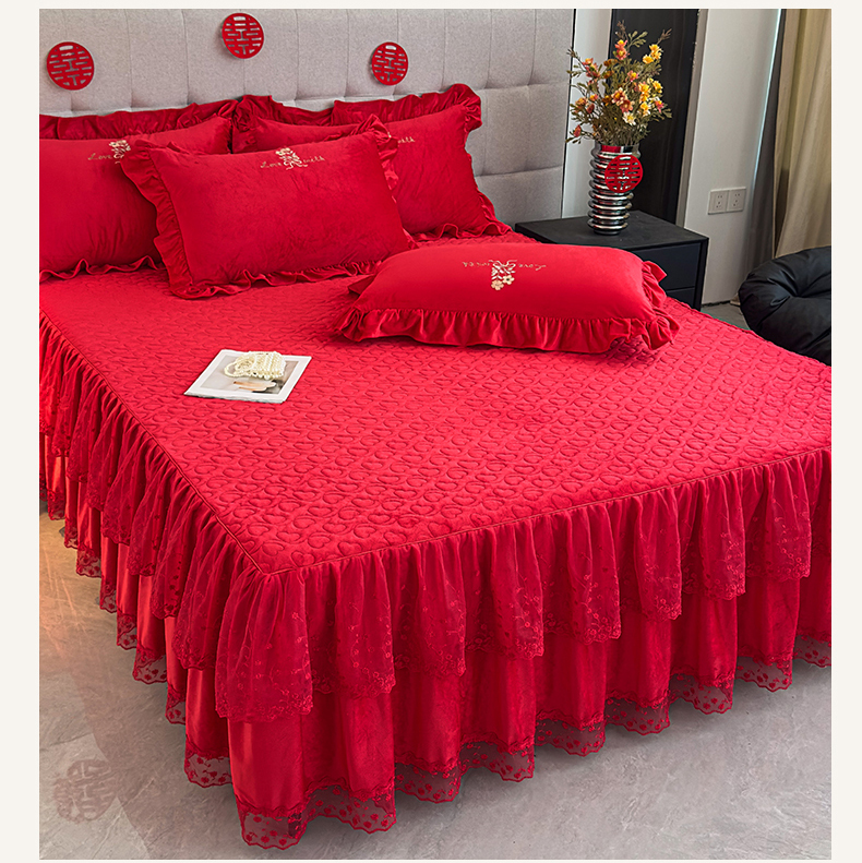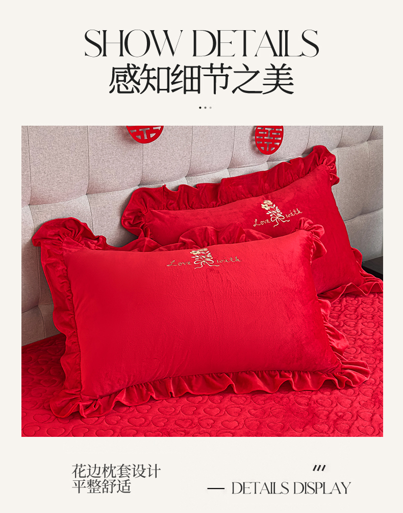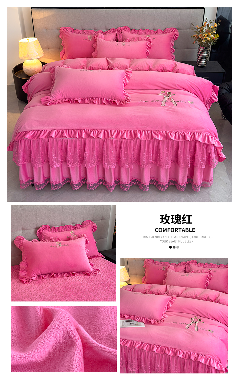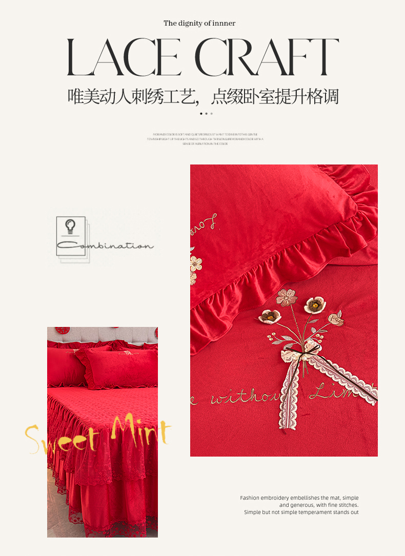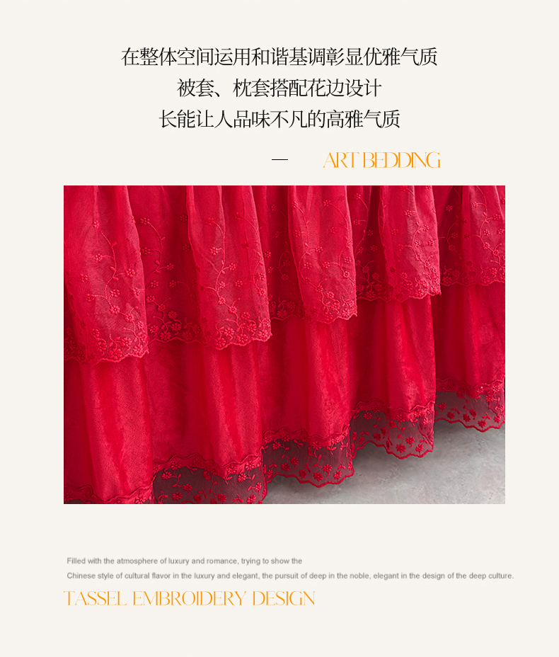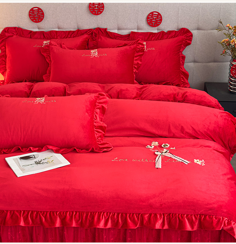 当前位置: 91家纺网 > 商品网购 > 床品套件 > 四件套 > 宝宝绒四件套 > 恒爱家纺 2025新款A类宝宝绒艾薇床裙四件套套件系列 喜庆红