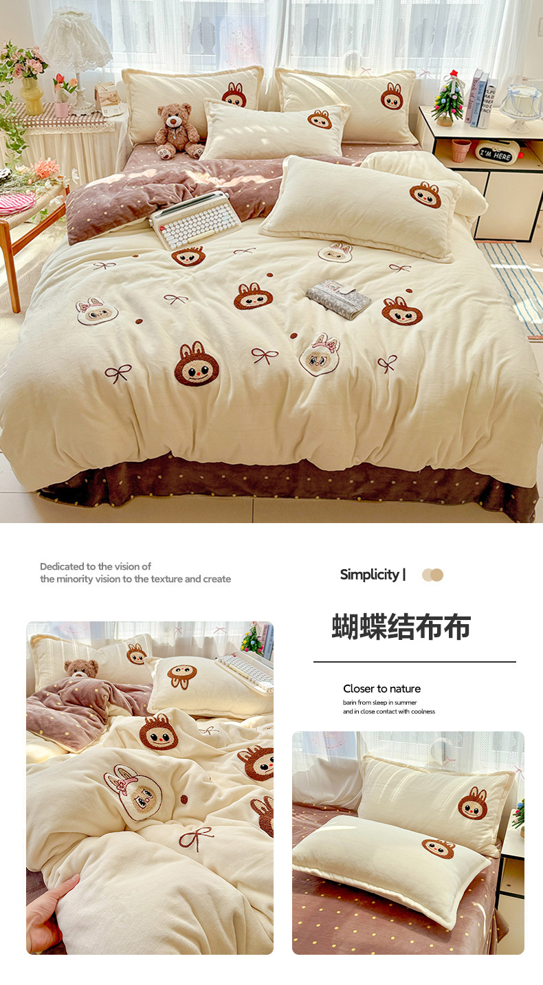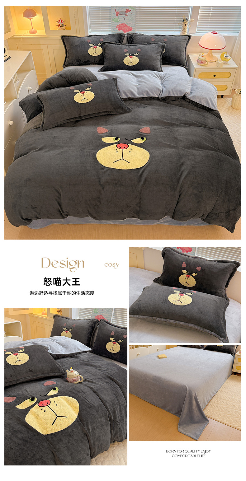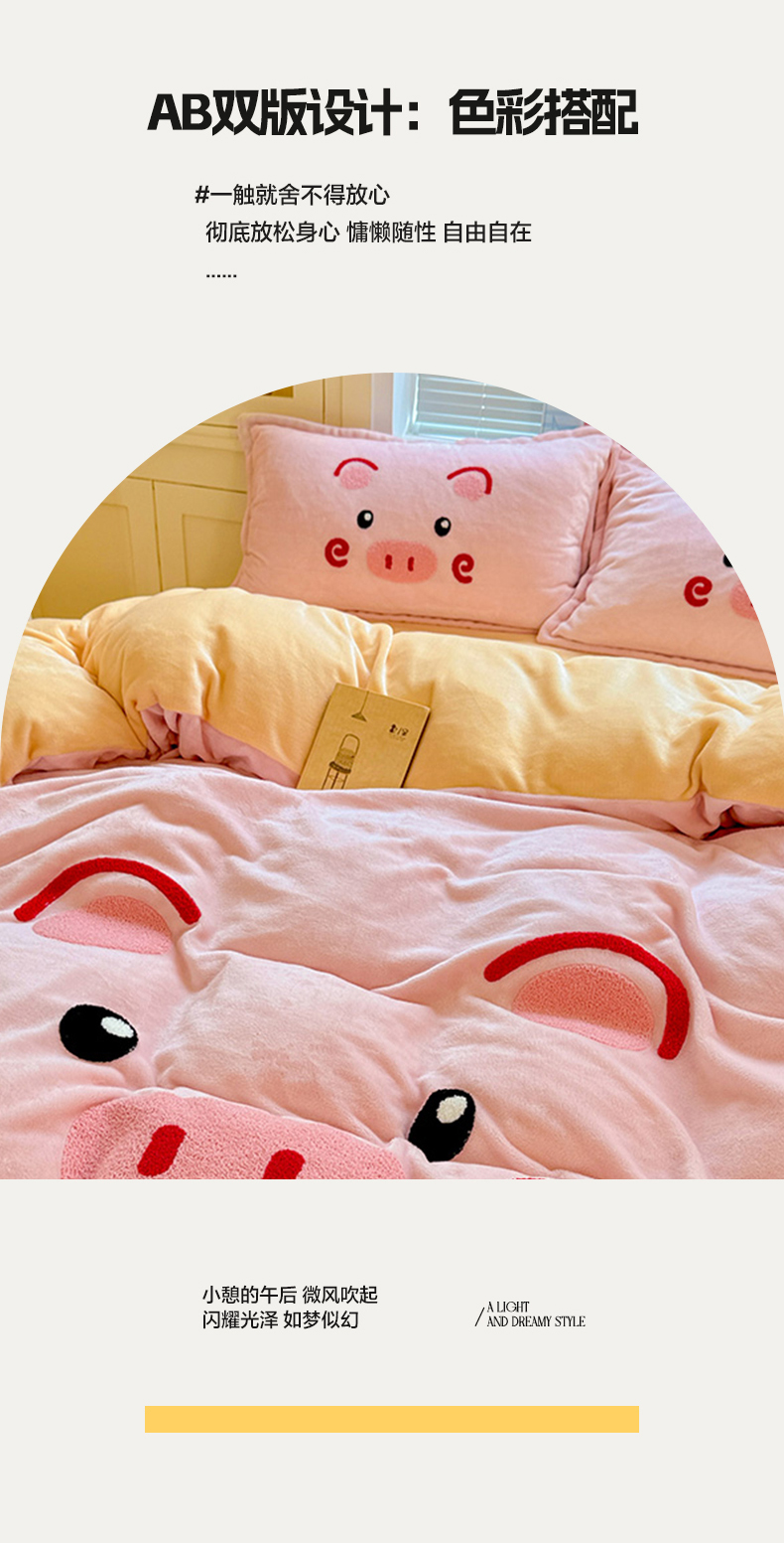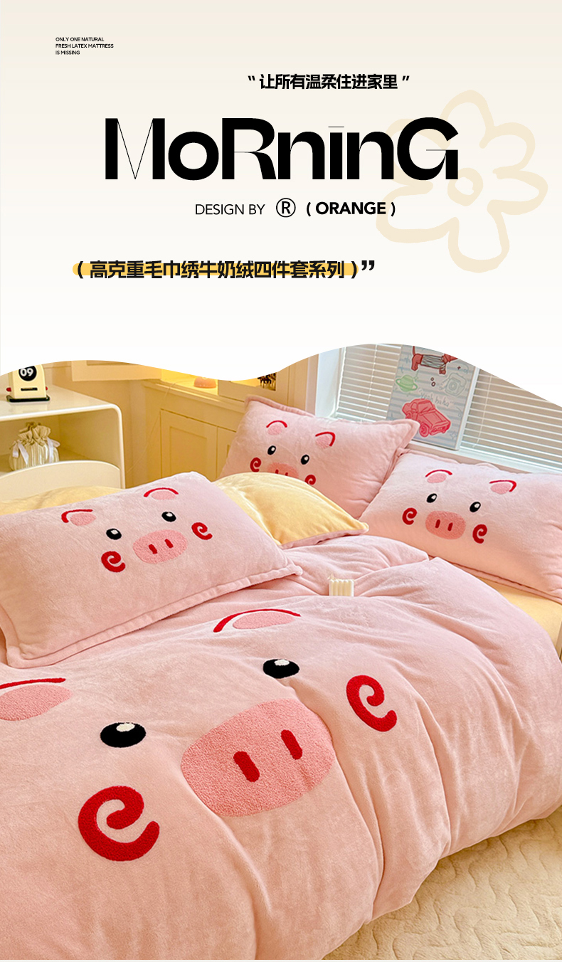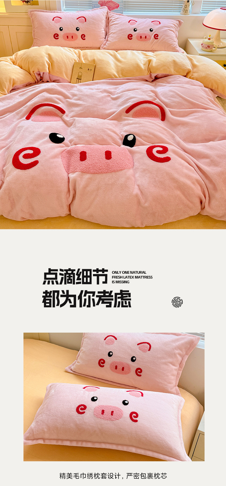 当前位置: 91家纺网 > 商品网购 > 床品套件 > 四件套 > 牛奶绒四件套 > KT猫直营店 2025新款高克重大版毛巾绣牛奶绒卡通四件套 开心卷卷猪