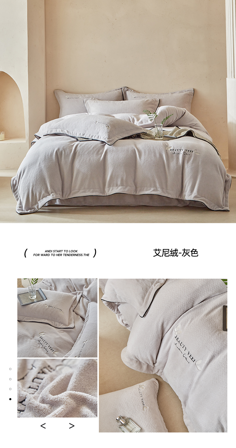 (总)孑寐家纺 2025新款进口加厚艾尼绒四件套,艾尼绒-粉色,艾尼绒-灰色,艾尼绒-绿色,艾尼绒-米咖,艾尼绒-紫色