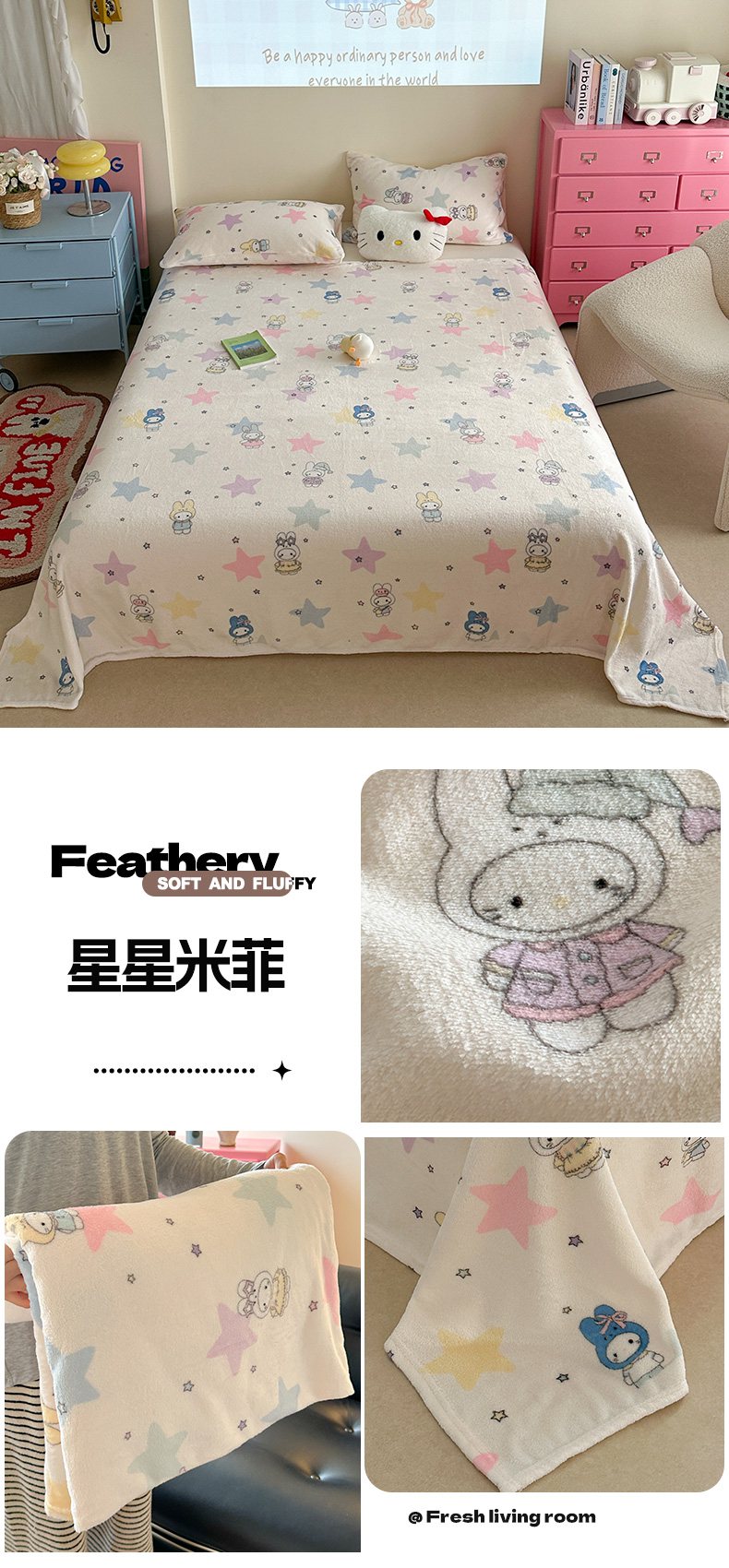 贝扬思家纺 2025新款四季款双面印花牛奶绒毛毯空调毯 星星米菲
