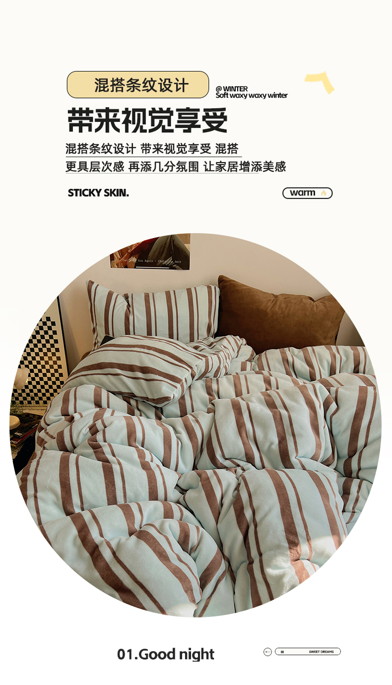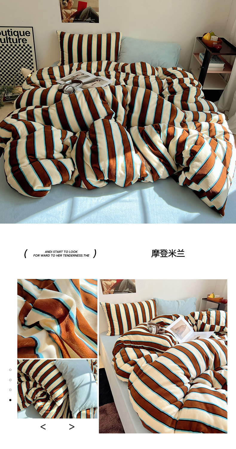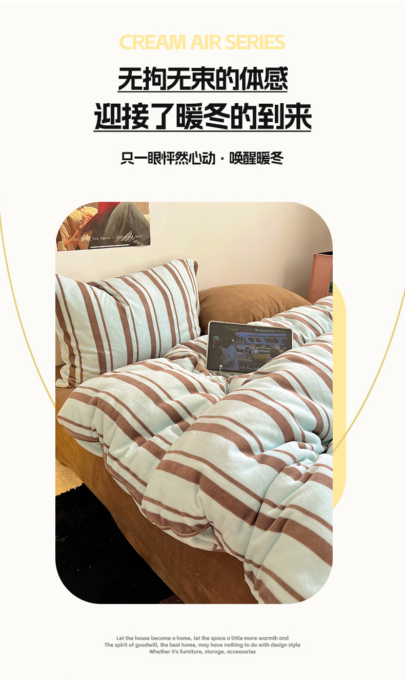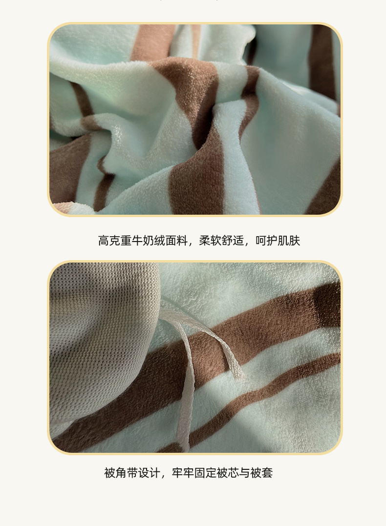商品名称:(总)蜜宿 2025新款混搭条纹牛奶绒四件套(小号默认条纹枕套一只)可以配小号四件套枕套9/一只;标准和加大(默认混搭枕套条纹一只,纯色一只,可以备注更换!)