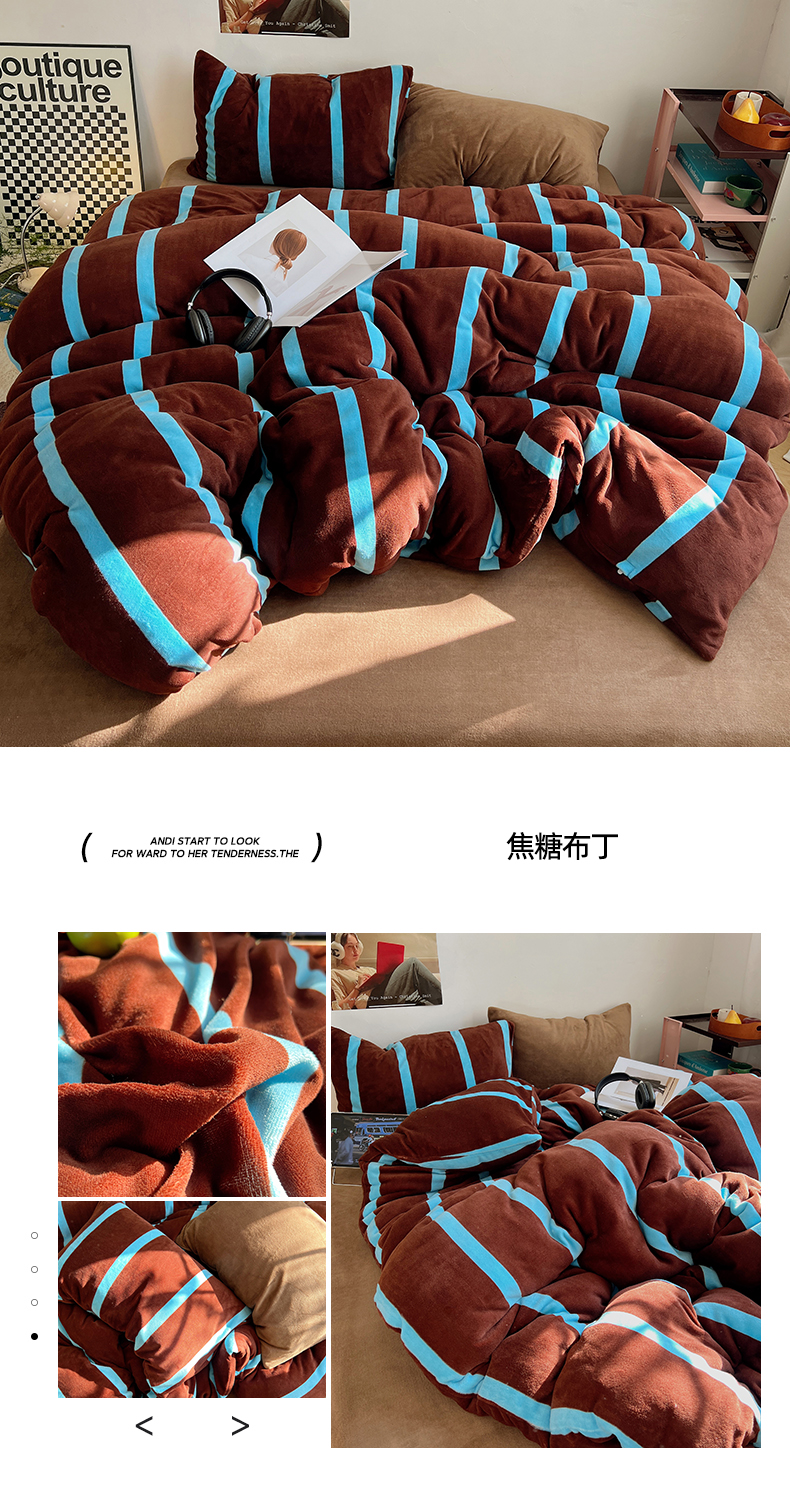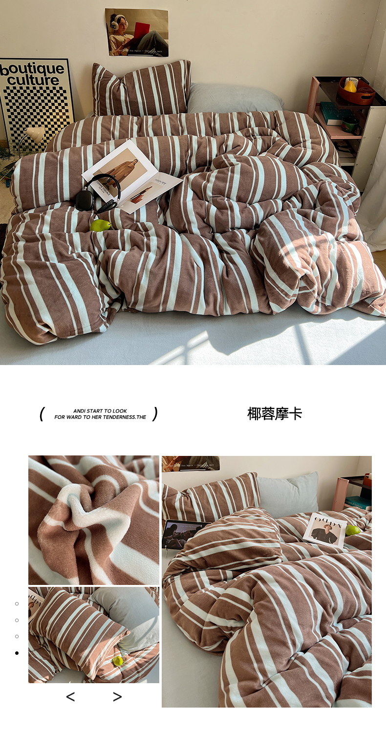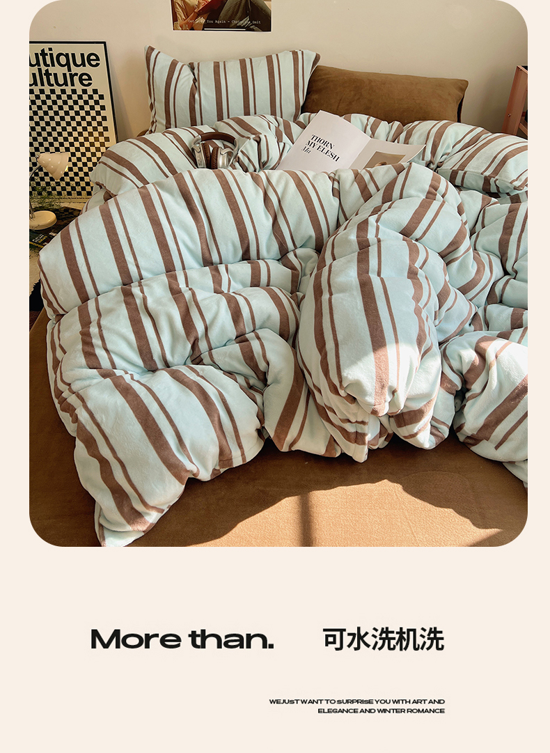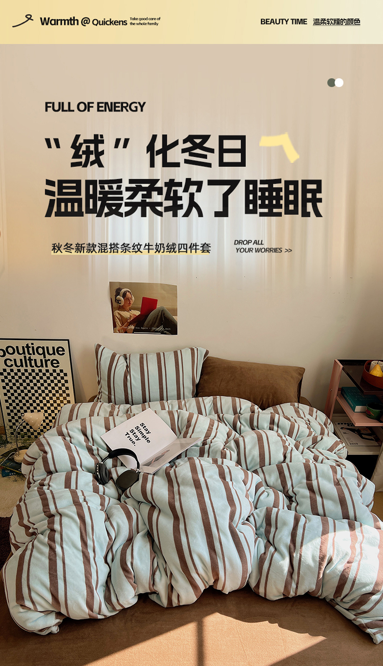 商品名称:(总)蜜宿 2025新款混搭条纹牛奶绒四件套(小号默认条纹枕套一只)可以配小号四件套枕套9/一只;标准和加大(默认混搭枕套条纹一只,纯色一只,可以备注更换!)