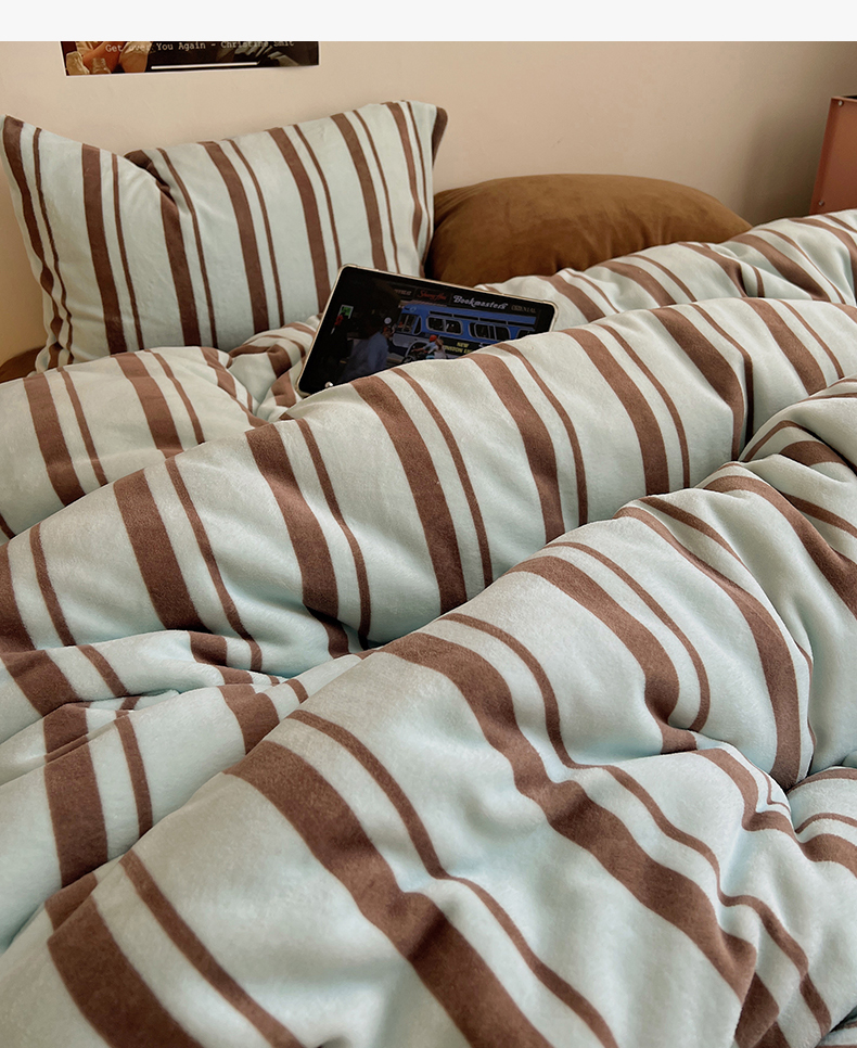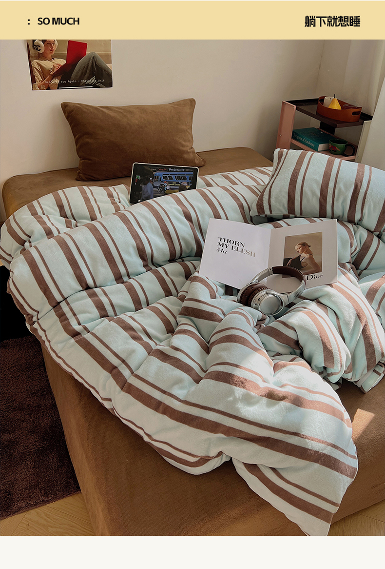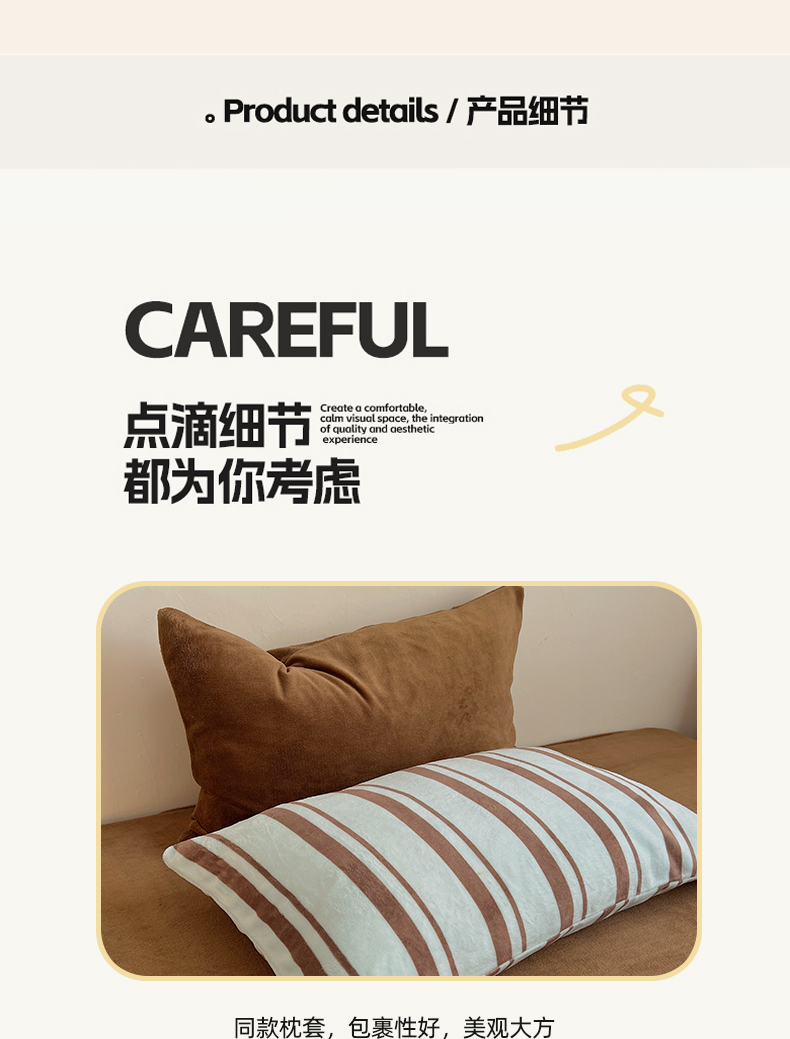 (总)蜜宿 2025新款混搭条纹牛奶绒四件套(小号默认条纹枕套一只)可以配小号四件套枕套9/一只;标准和加大(默认混搭枕套条纹一只,纯色一只,可以备注更换!)