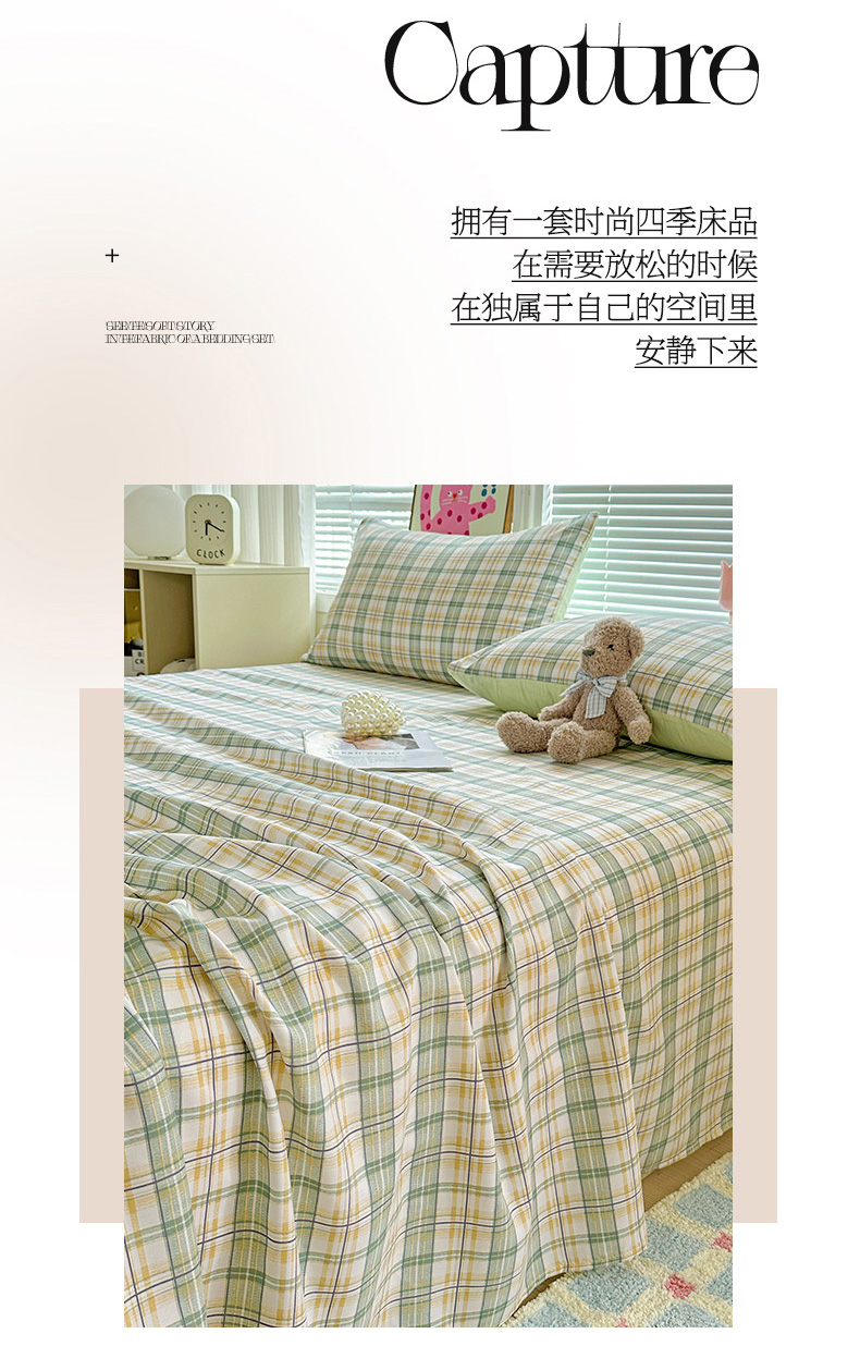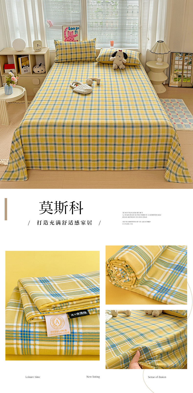 商品名称:南通菲度家纺 2025新款ins博主风软糯糯亲肤印花热款纯色格子无印风水洗棉时尚单床单 苏黎世