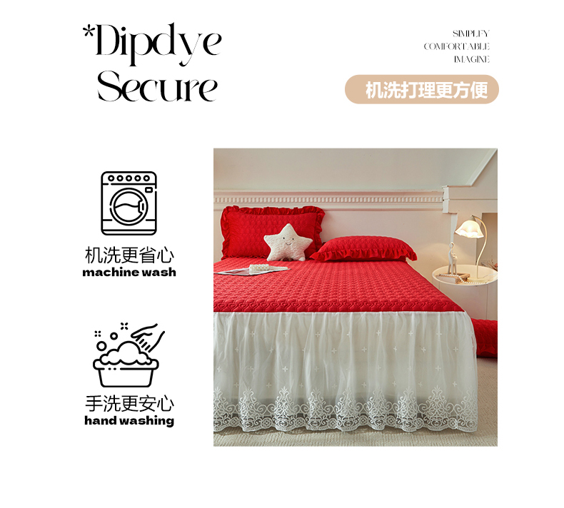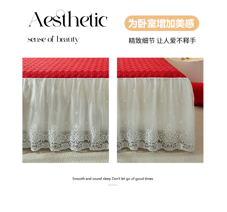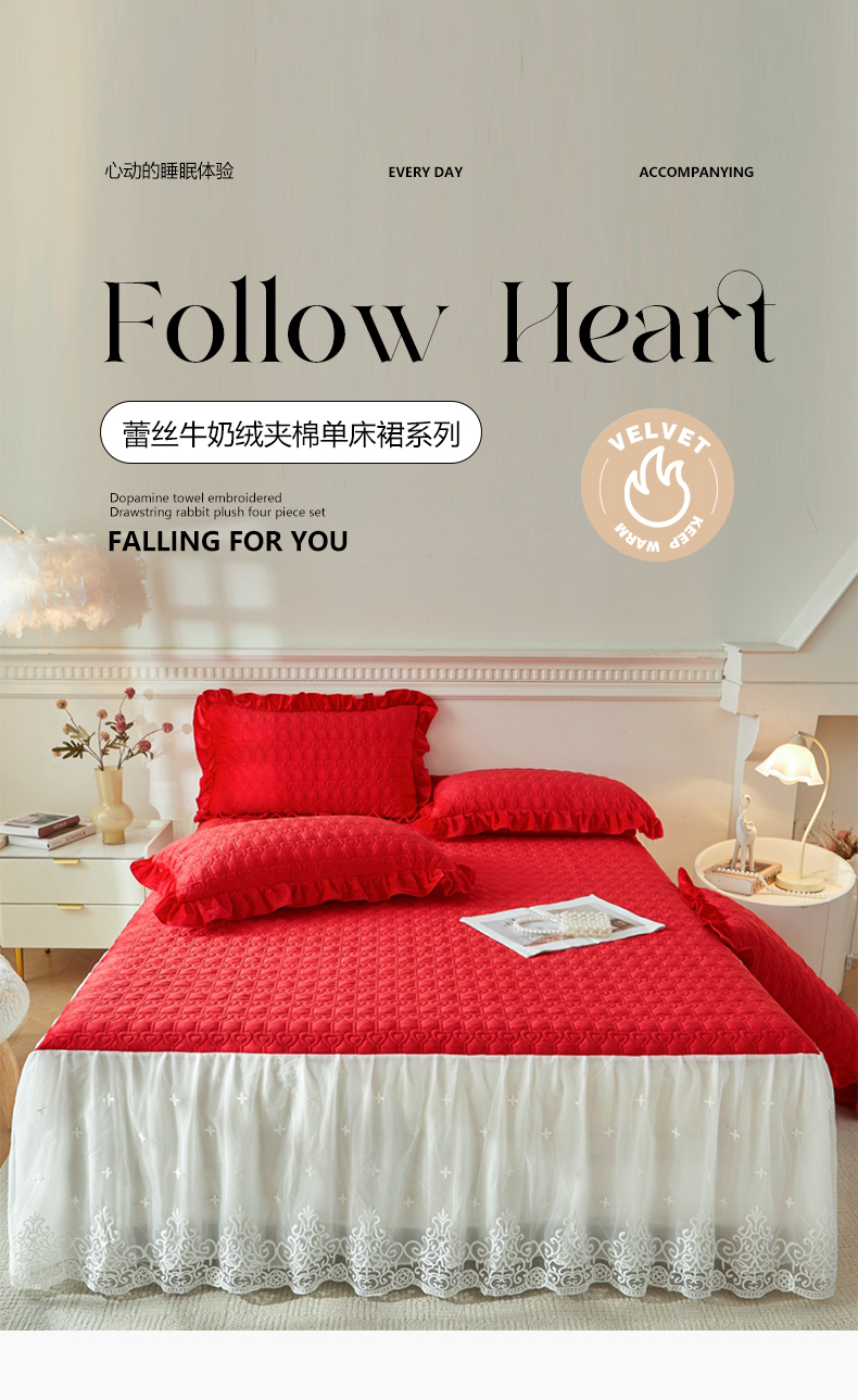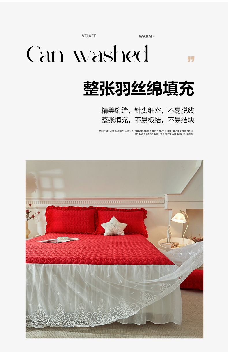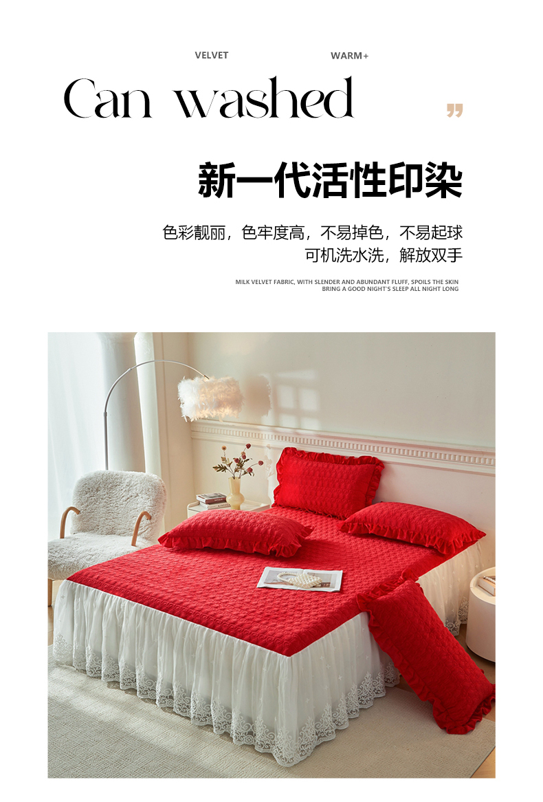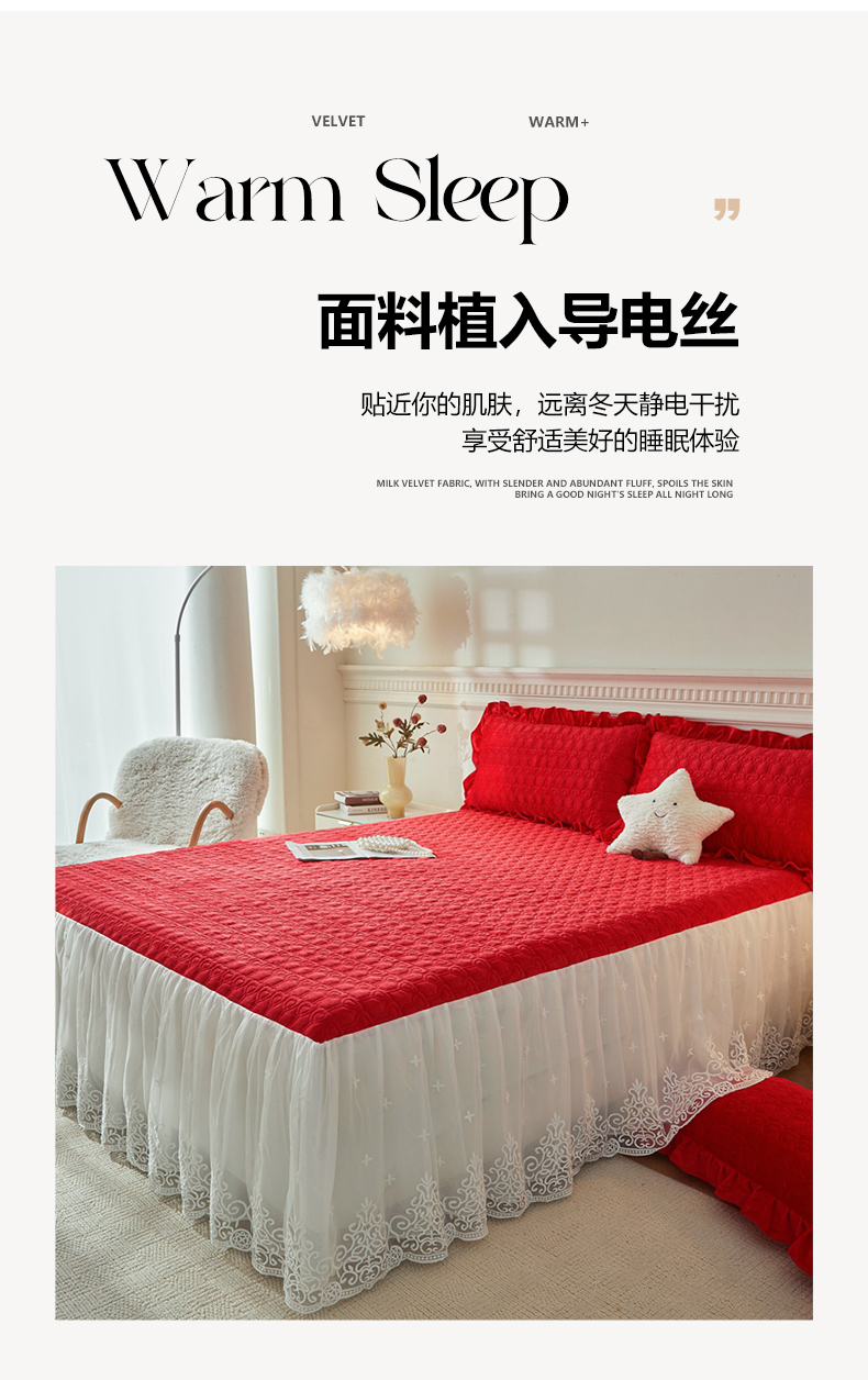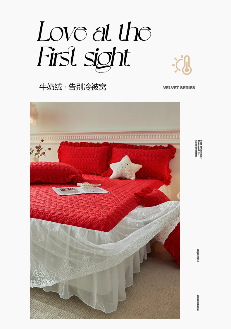 • 91家纺网 家纺一手货源 找家纺 怡源梦 2025新款A类牛奶绒夹棉床裙单件-甜心公主系列 大红色