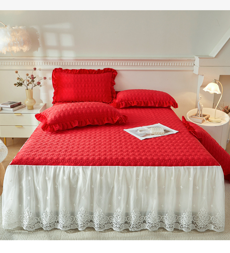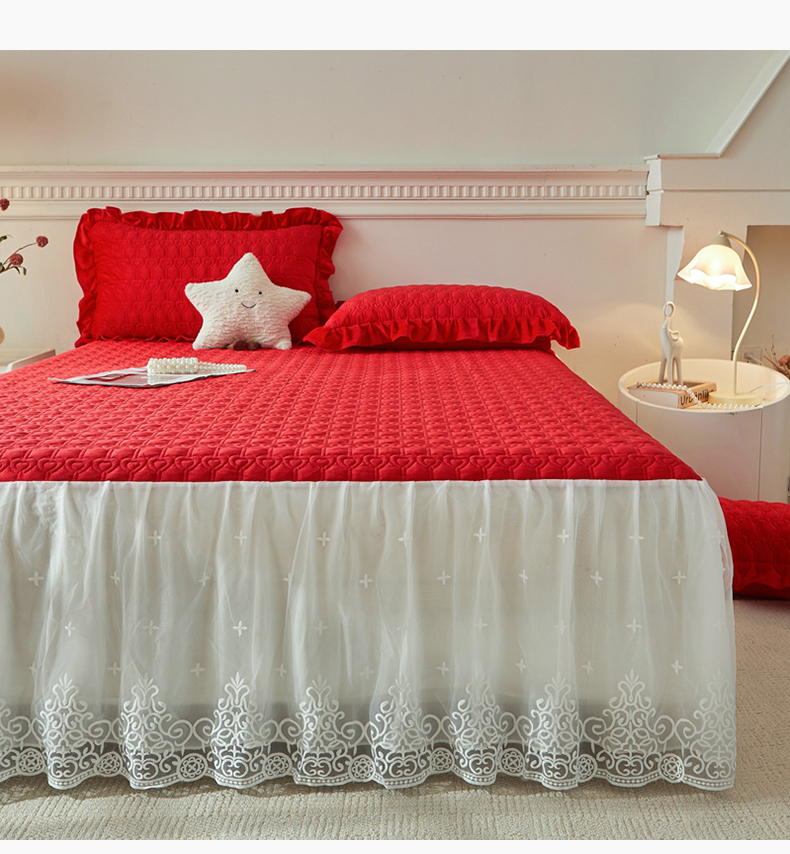 怡源梦 2025新款A类牛奶绒夹棉床裙单件-甜心公主系列 大红色