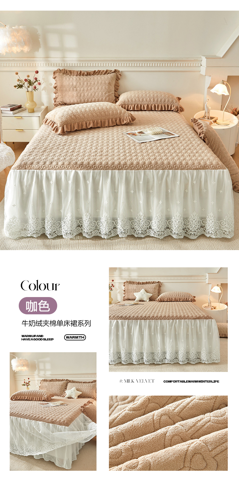 (总)怡源梦 2025新款A类牛奶绒夹棉床裙单件-甜心公主系列,米白色,大红色,粉玉色,灰色,咖色,绿色,紫色