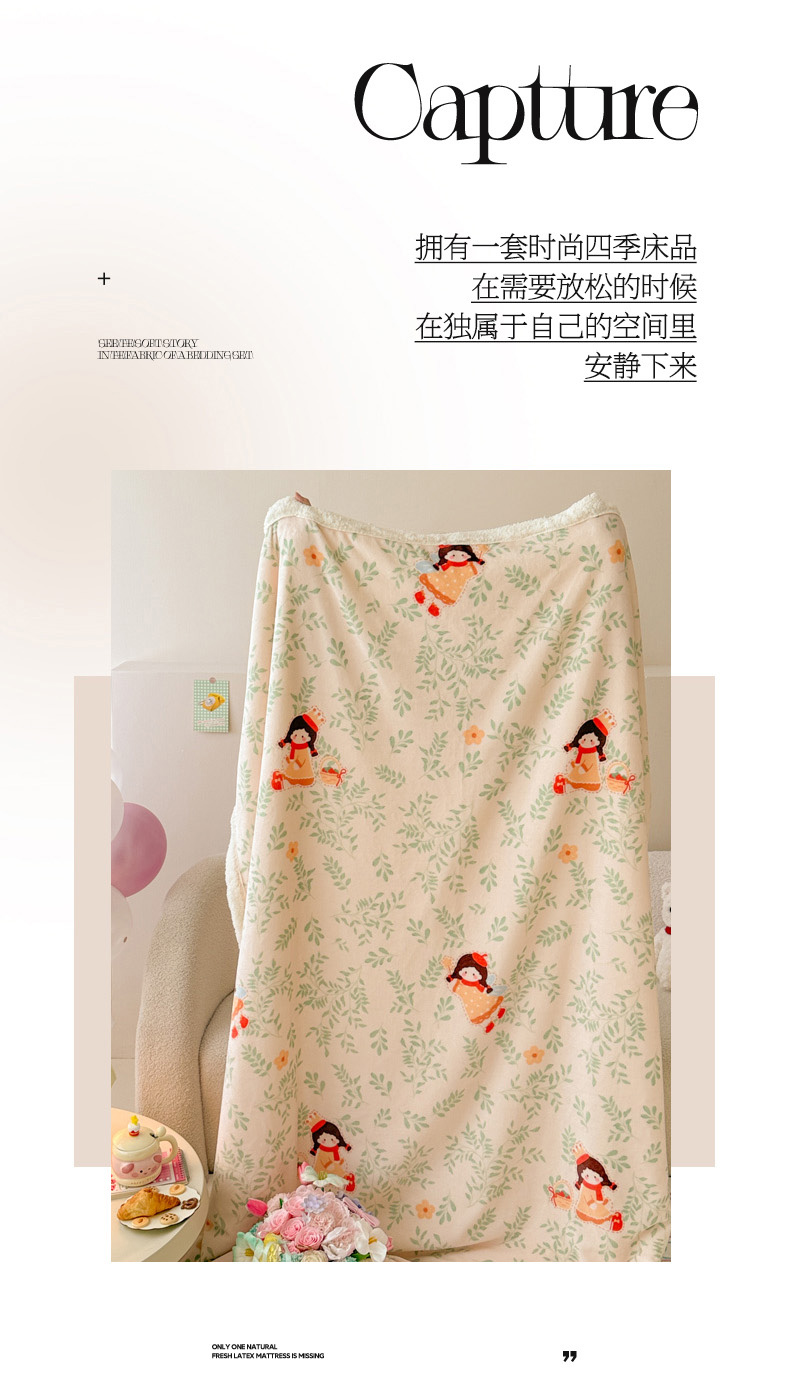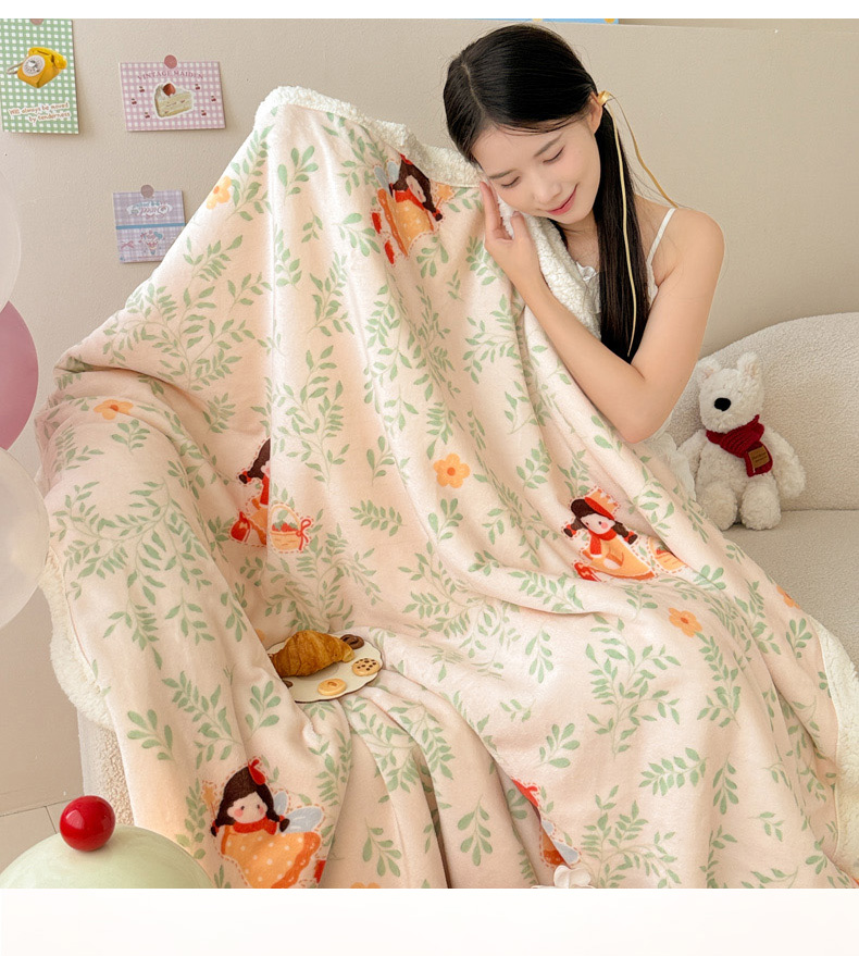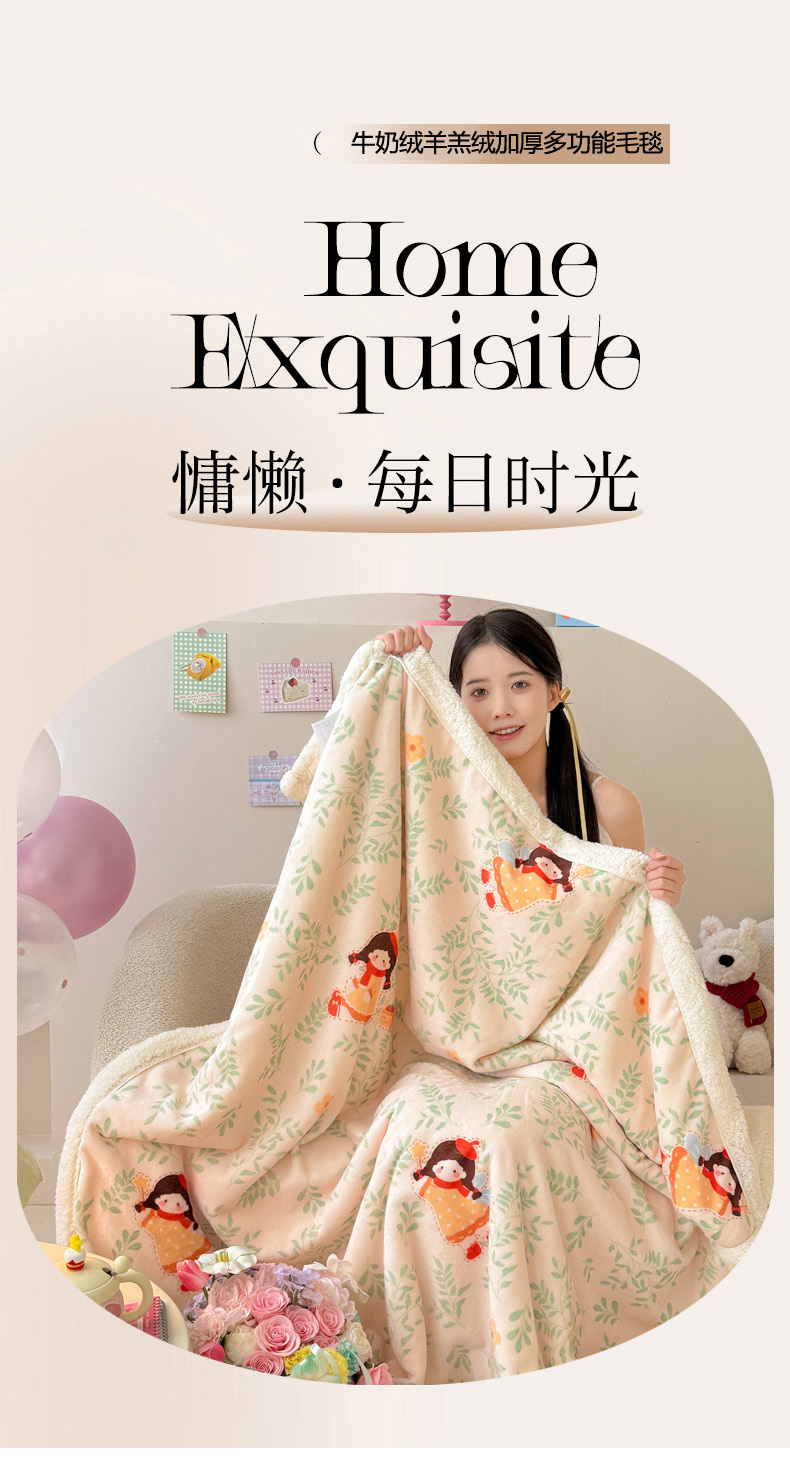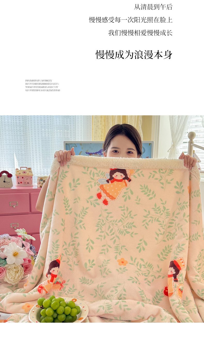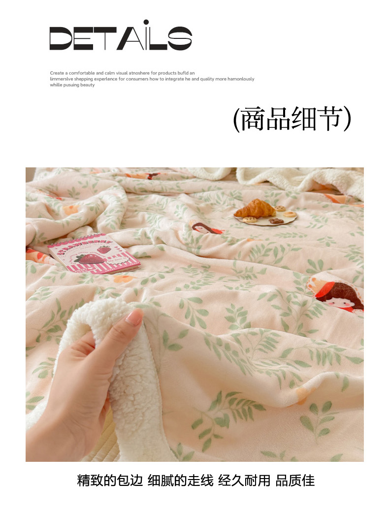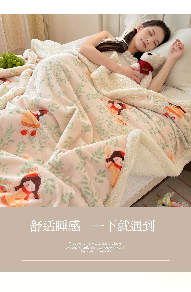 商品名称:沐慕 2025新款牛奶绒拼羊羔绒毛毯盖毯毯子 毛毯-森林女孩