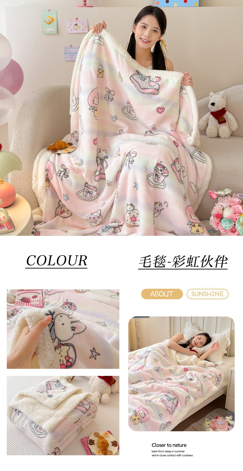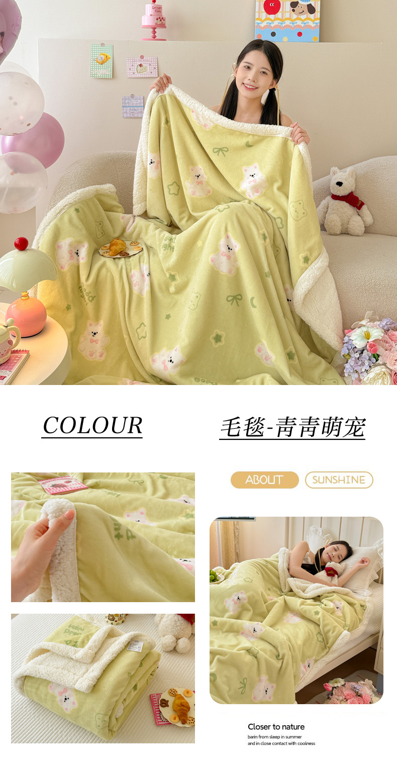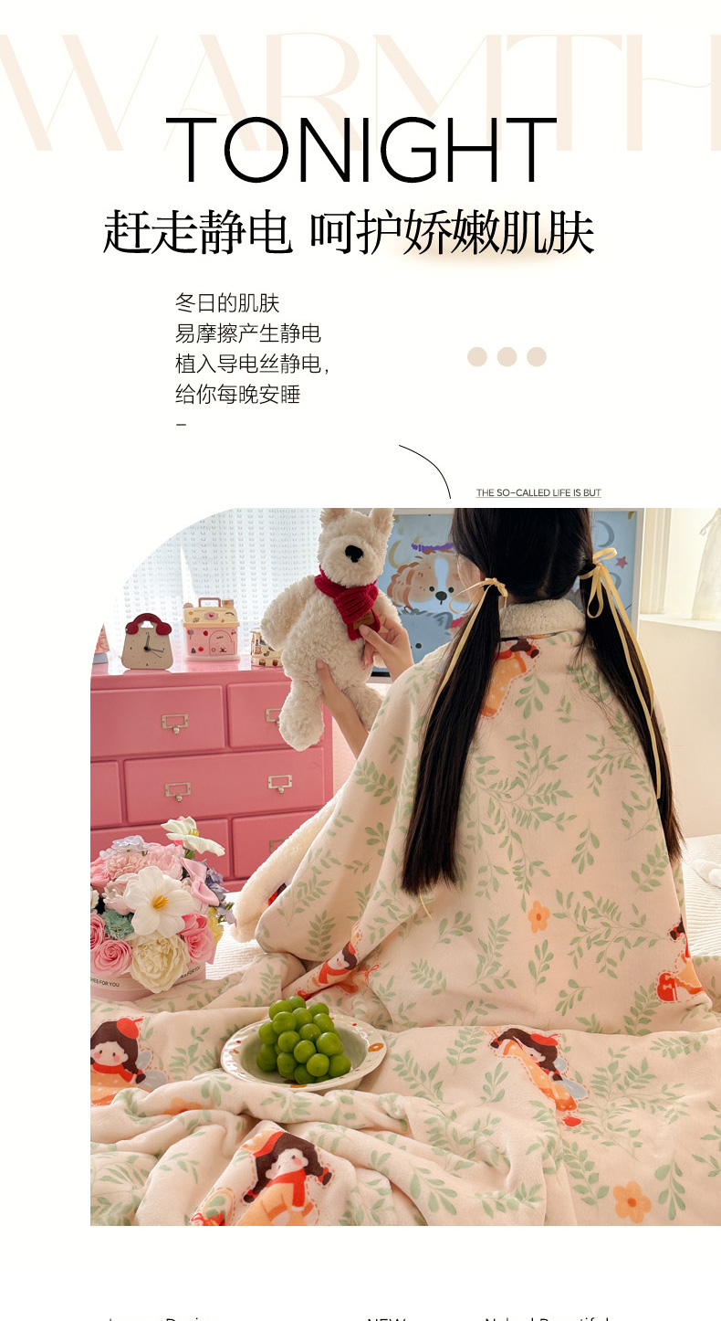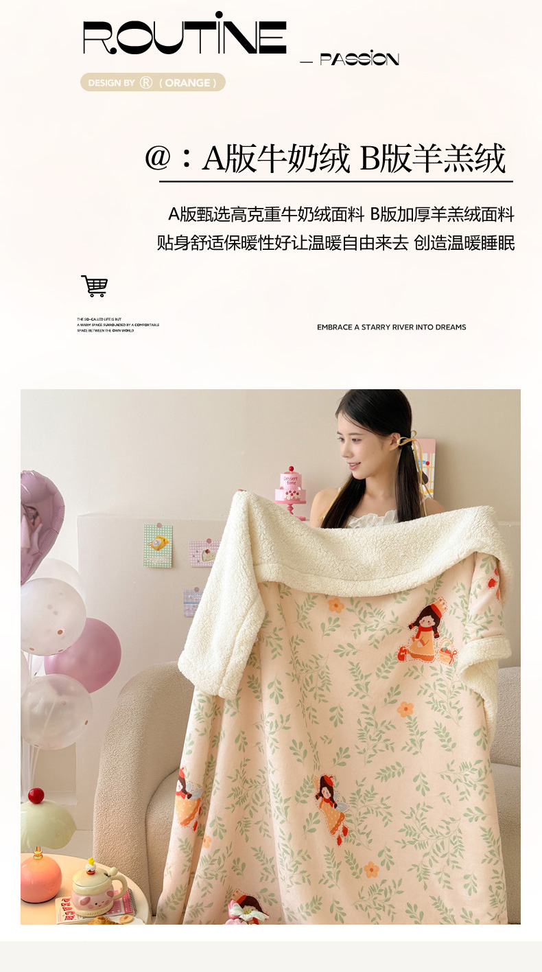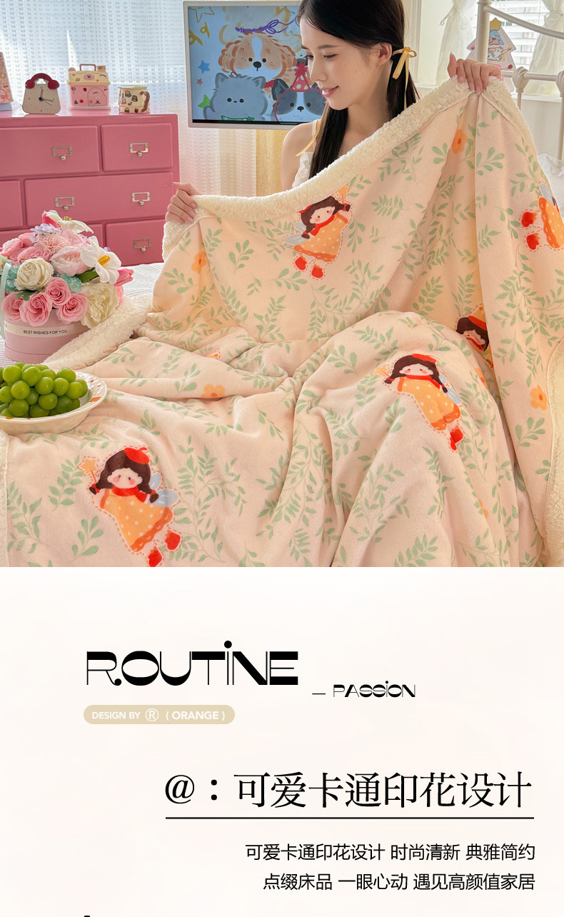 商品名称:沐慕 2025新款牛奶绒拼羊羔绒毛毯盖毯毯子 毛毯-森林女孩