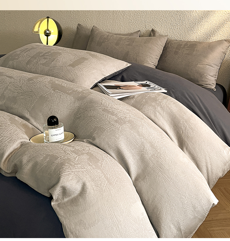 (总)莱茵家居 2026新款A类60支全棉纯棉复古侘寂风色织提花四件套-墨隙系列,斑斓-深灰,豹纹-卡其,豹纹-深灰,墨隙-卡其,墨隙-深灰