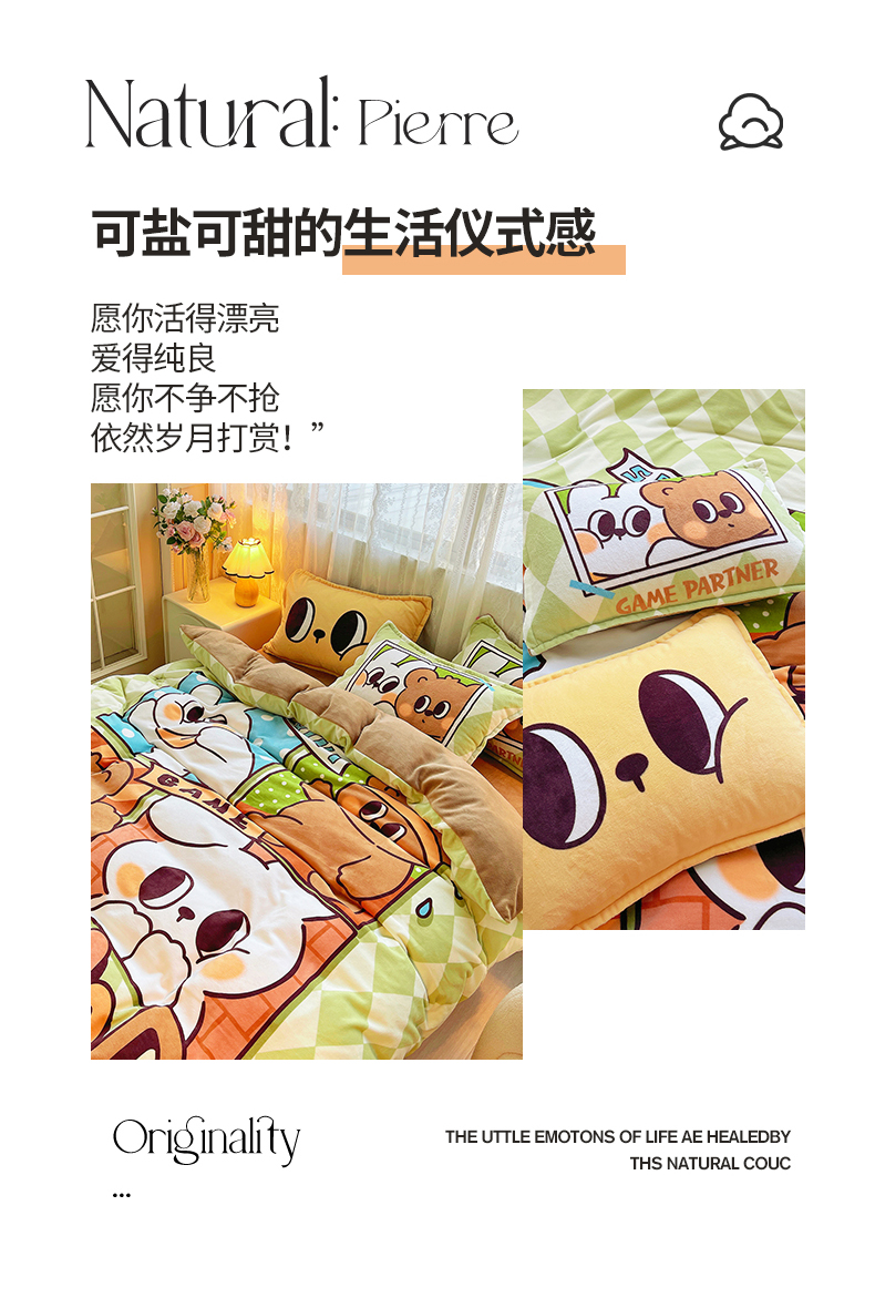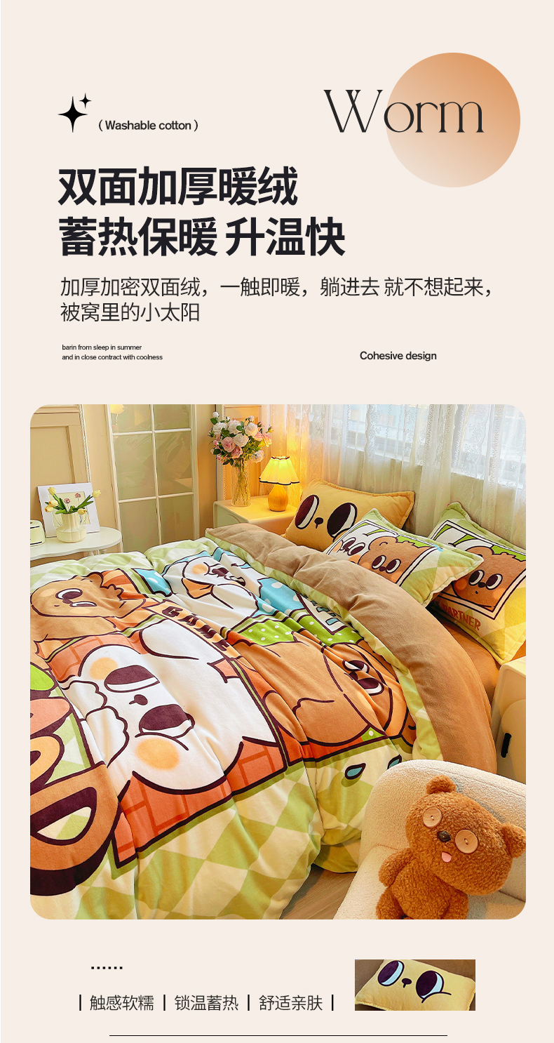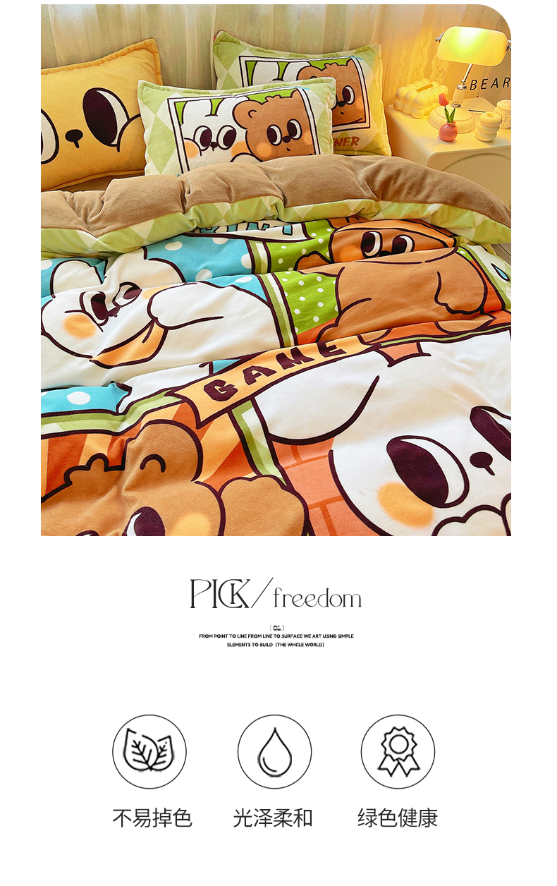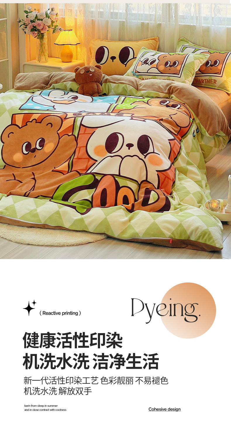 商品名称:(总)炫拼家纺 2025新款大版数码印花卡通高克重牛奶绒四件套