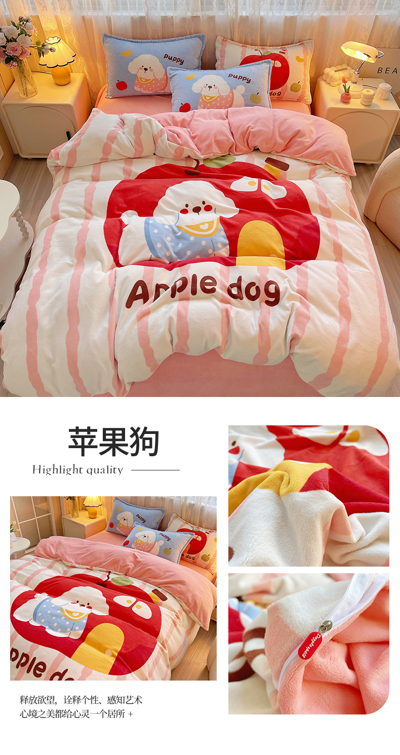 (总)炫拼家纺 2025新款全棉磨毛卡通贴布绣加厚毛巾绣纯棉四件套-曲奇系列,曲奇-苹果狗,曲奇-Good卡皮,曲奇-波点猫,曲奇-好朋友,曲奇-红军熊猫,曲奇-举高高,曲奇-晚安猫