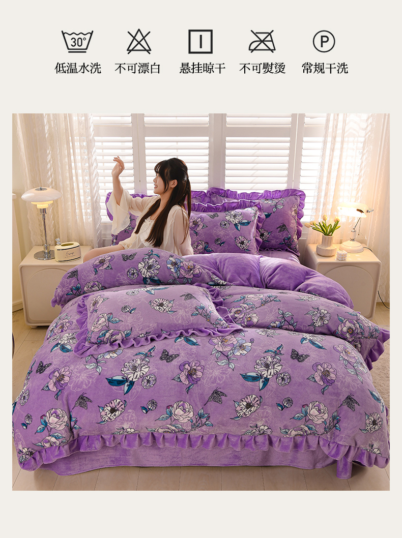 (总)紫月轩家纺 2025新款韩版牛奶绒花边款四件套
