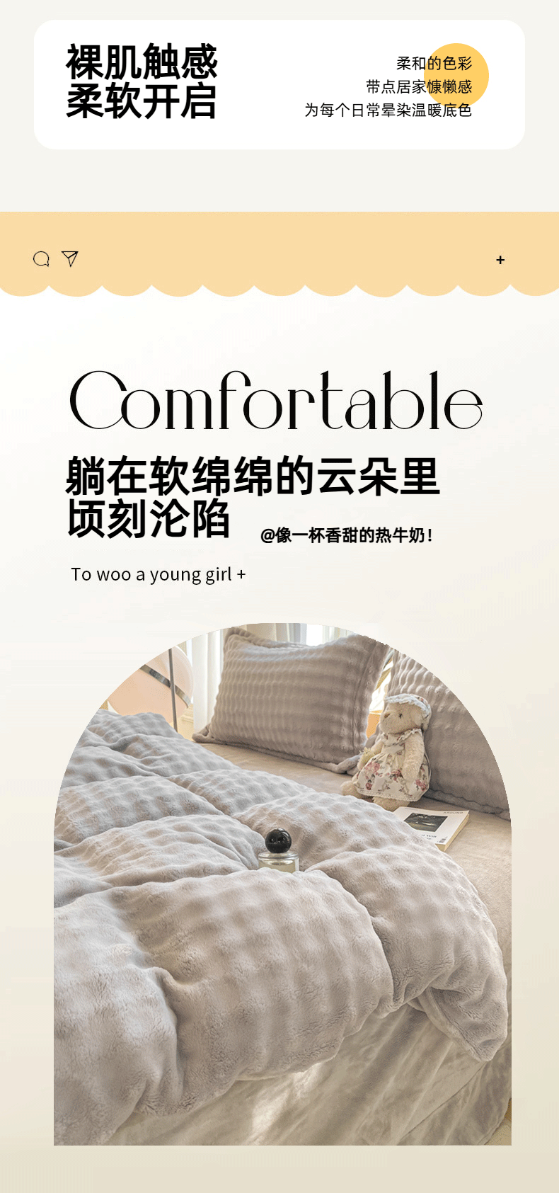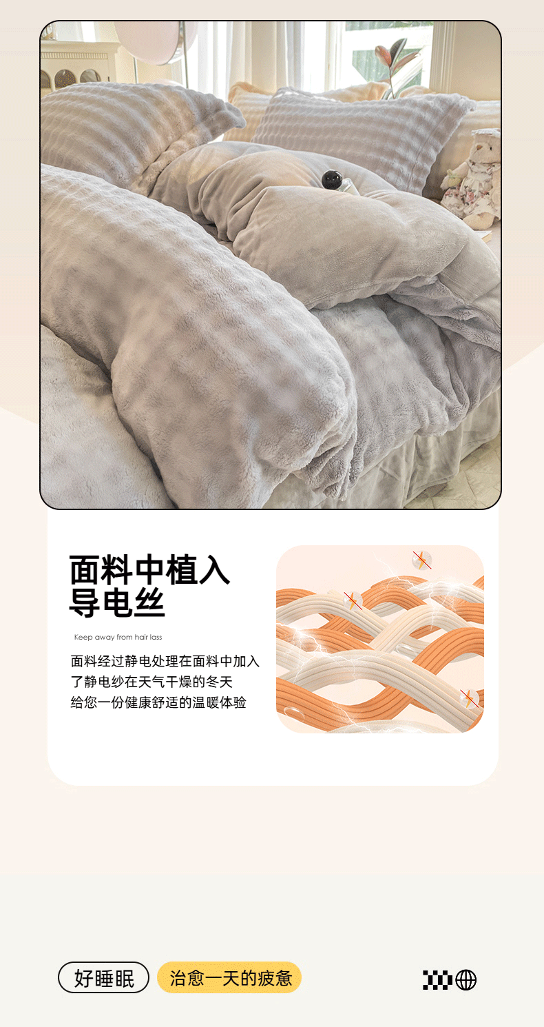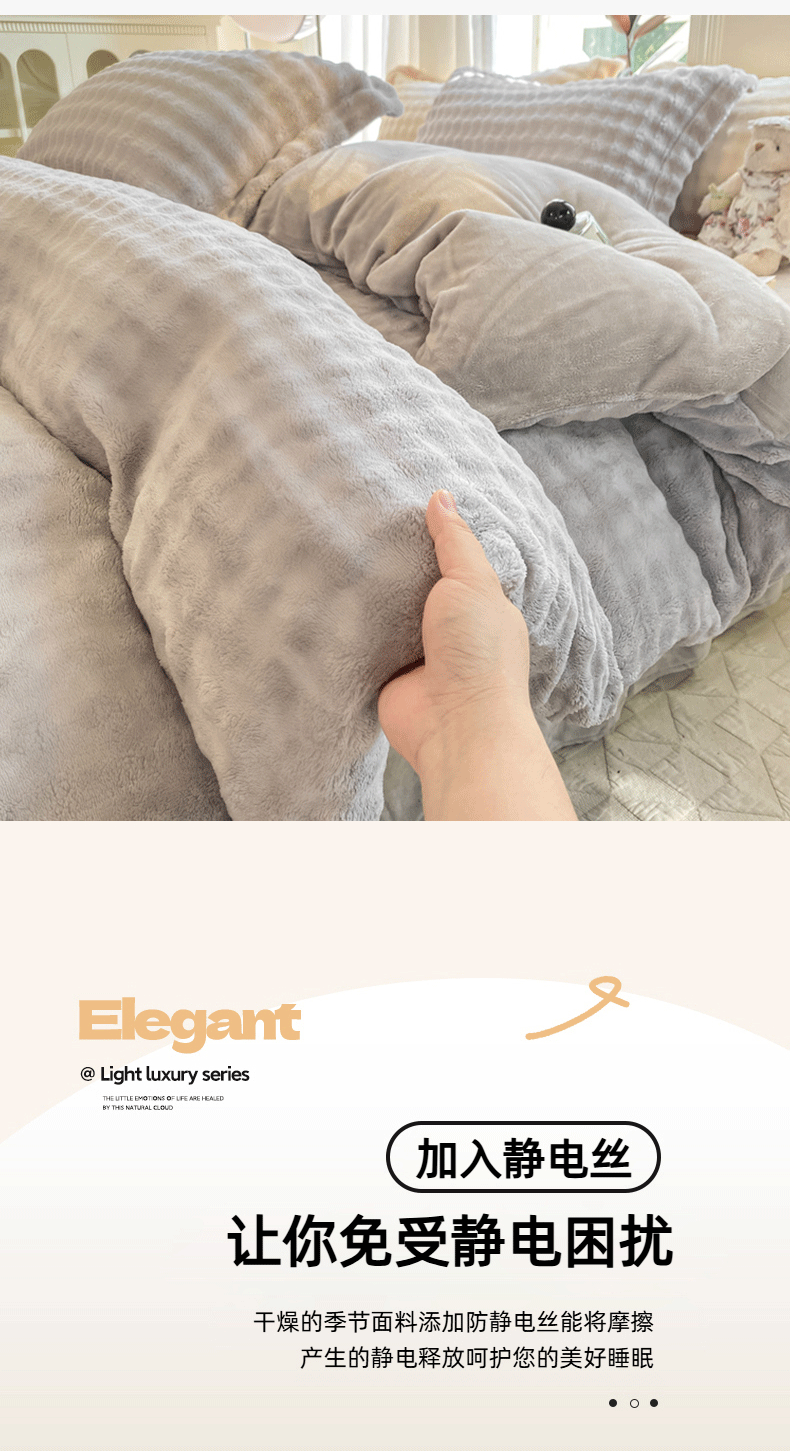 商品名称:悦织湾家纺 2025新款泡泡绒仿兔毛绒四件套牛奶绒纯色轻奢床上用品4件套货源足 泡泡绒-高级灰