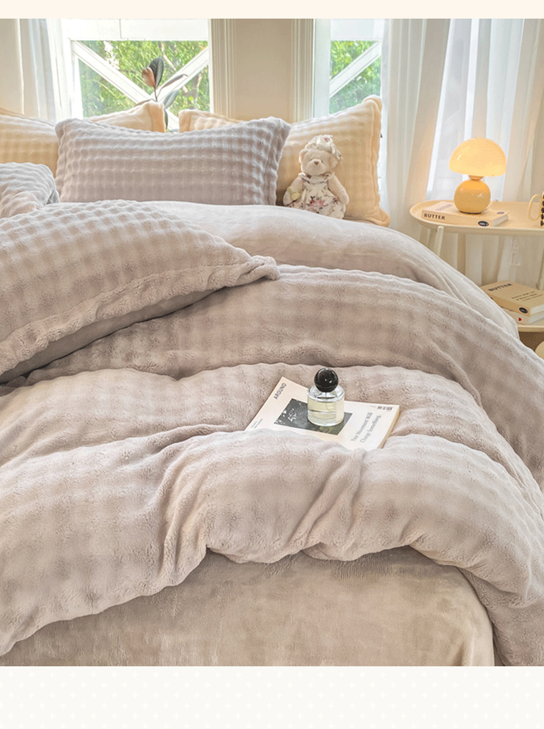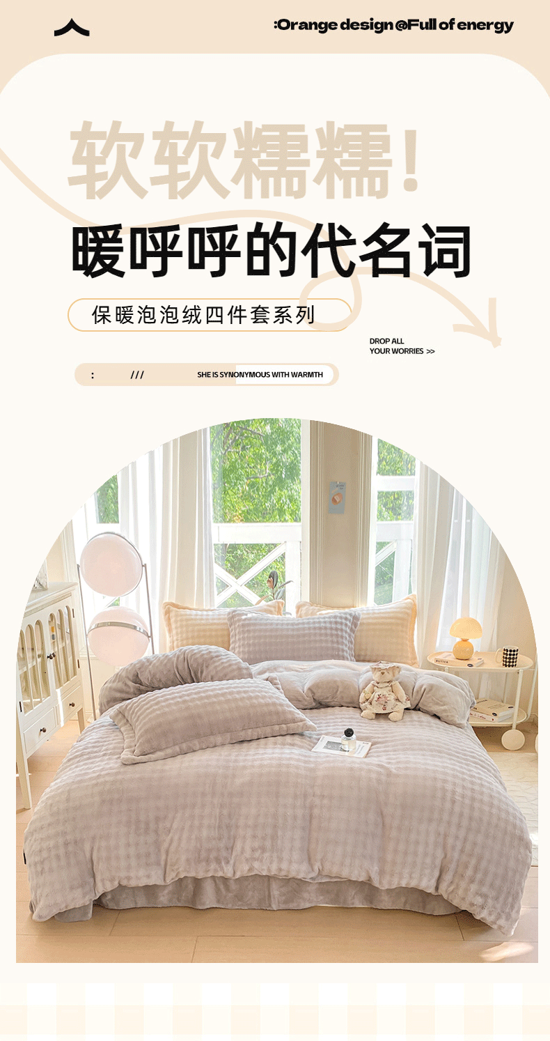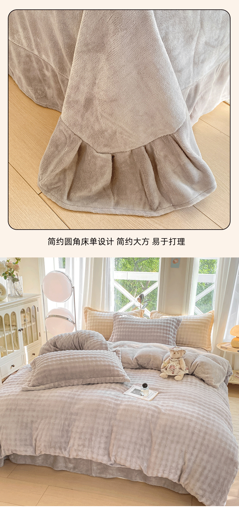 悦织湾家纺 2025新款泡泡绒仿兔毛绒四件套牛奶绒纯色轻奢床上用品4件套货源足 泡泡绒-高级灰