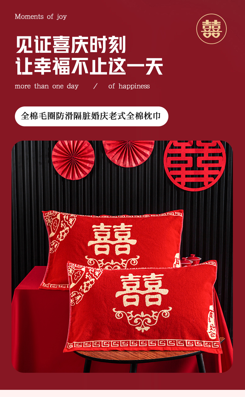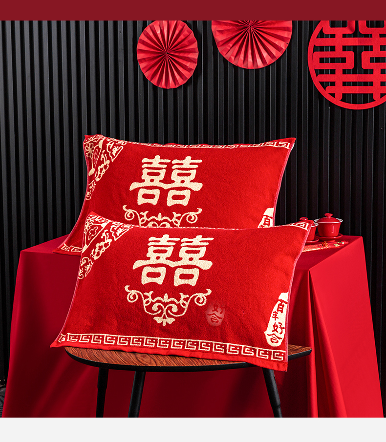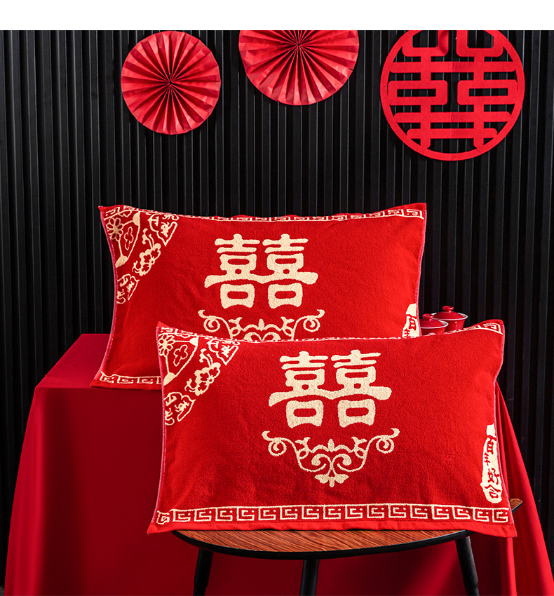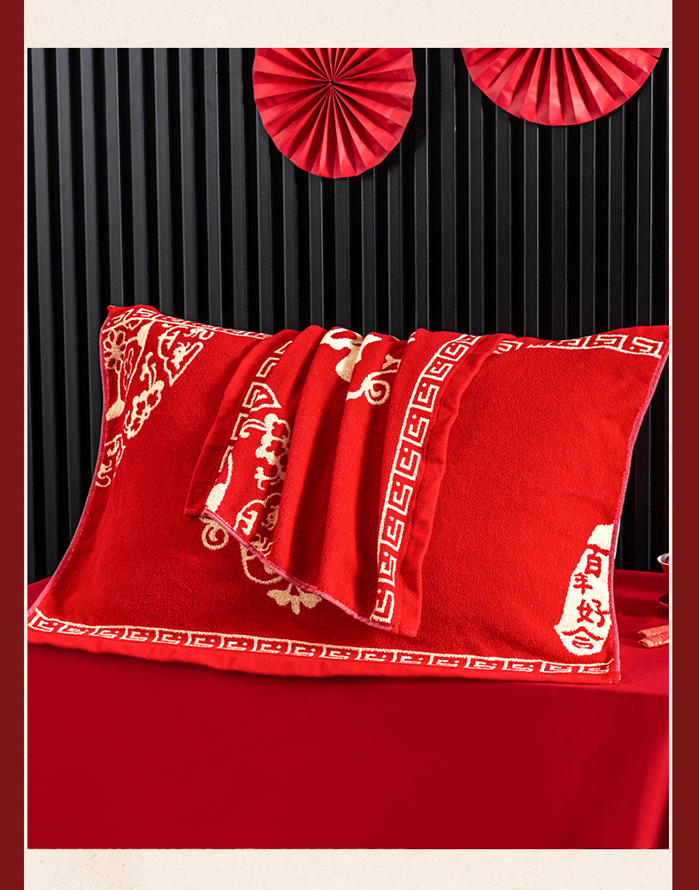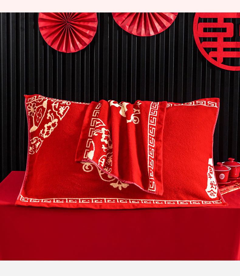 商品名称:美宜家 2025新款全棉毛圈防滑隔脏婚庆老式全棉枕巾 永结同心