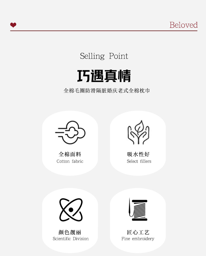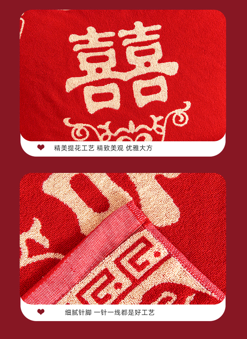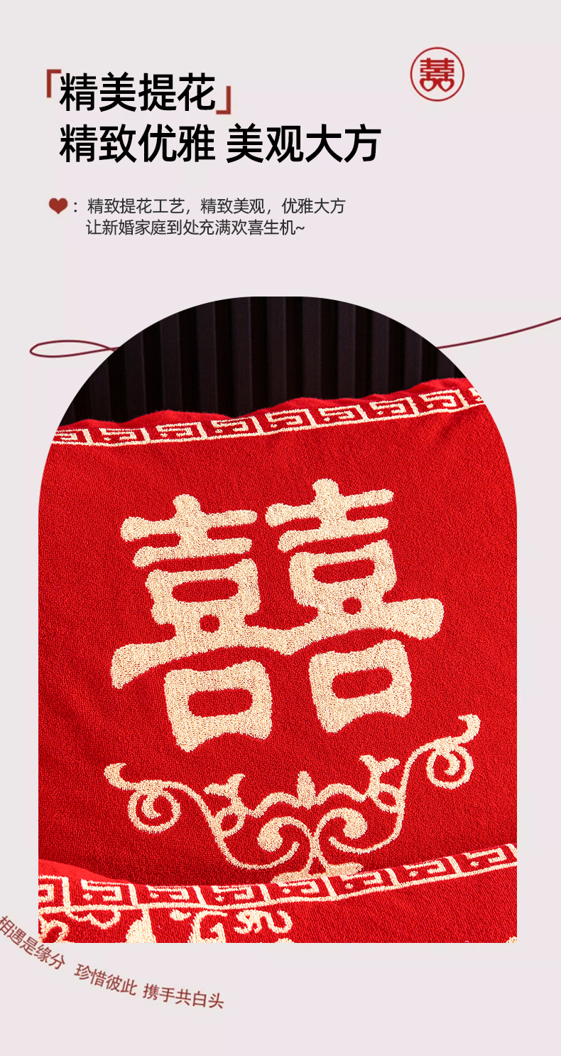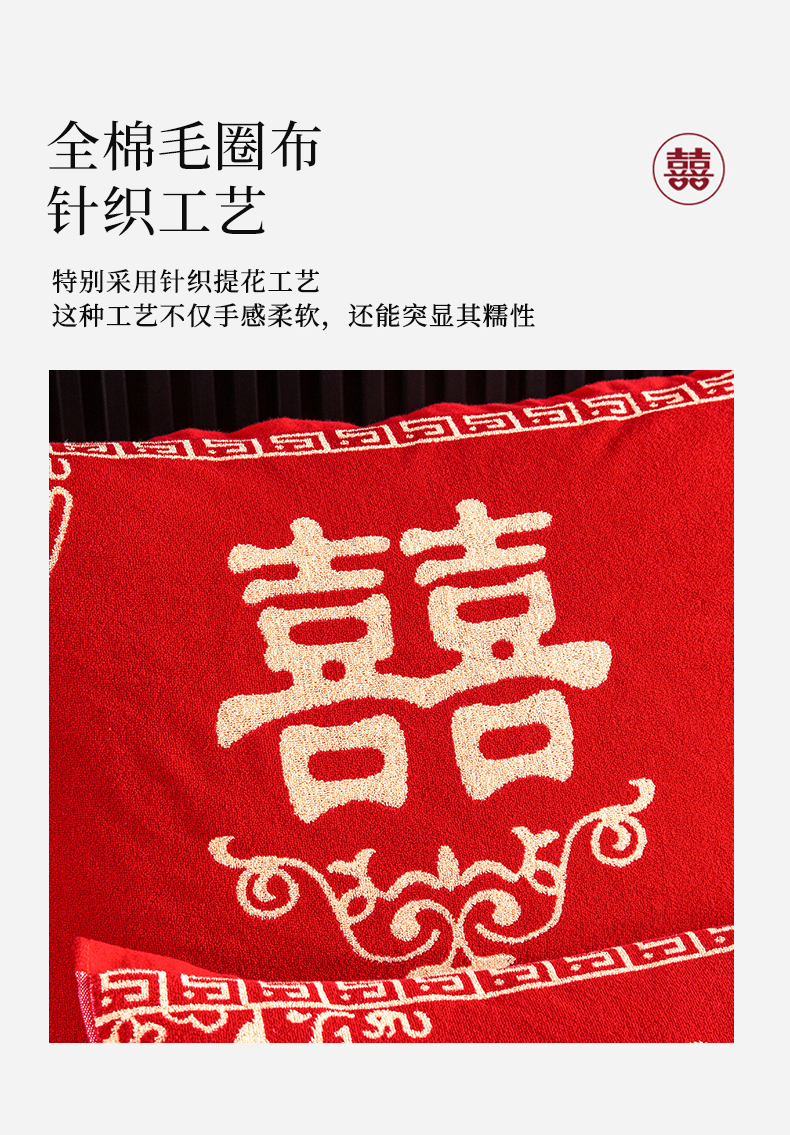 商品名称:美宜家 2025新款全棉毛圈防滑隔脏婚庆老式全棉枕巾 永结同心