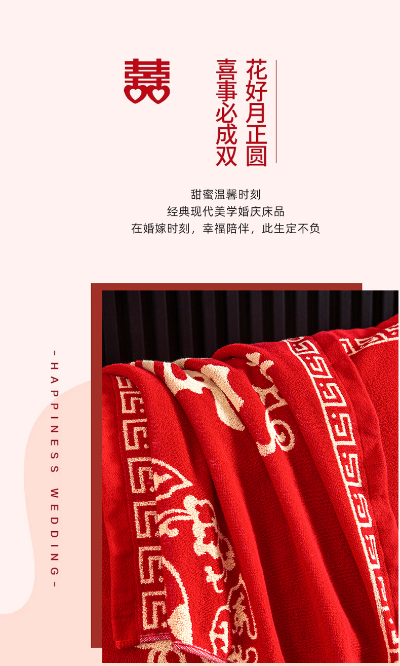 (总)美宜家 2025高档喜庆大红纯棉情侣枕巾枕套加大加厚,被爱,财运享通,郎才女貌,马上有钱,事事如意,喜至福来
