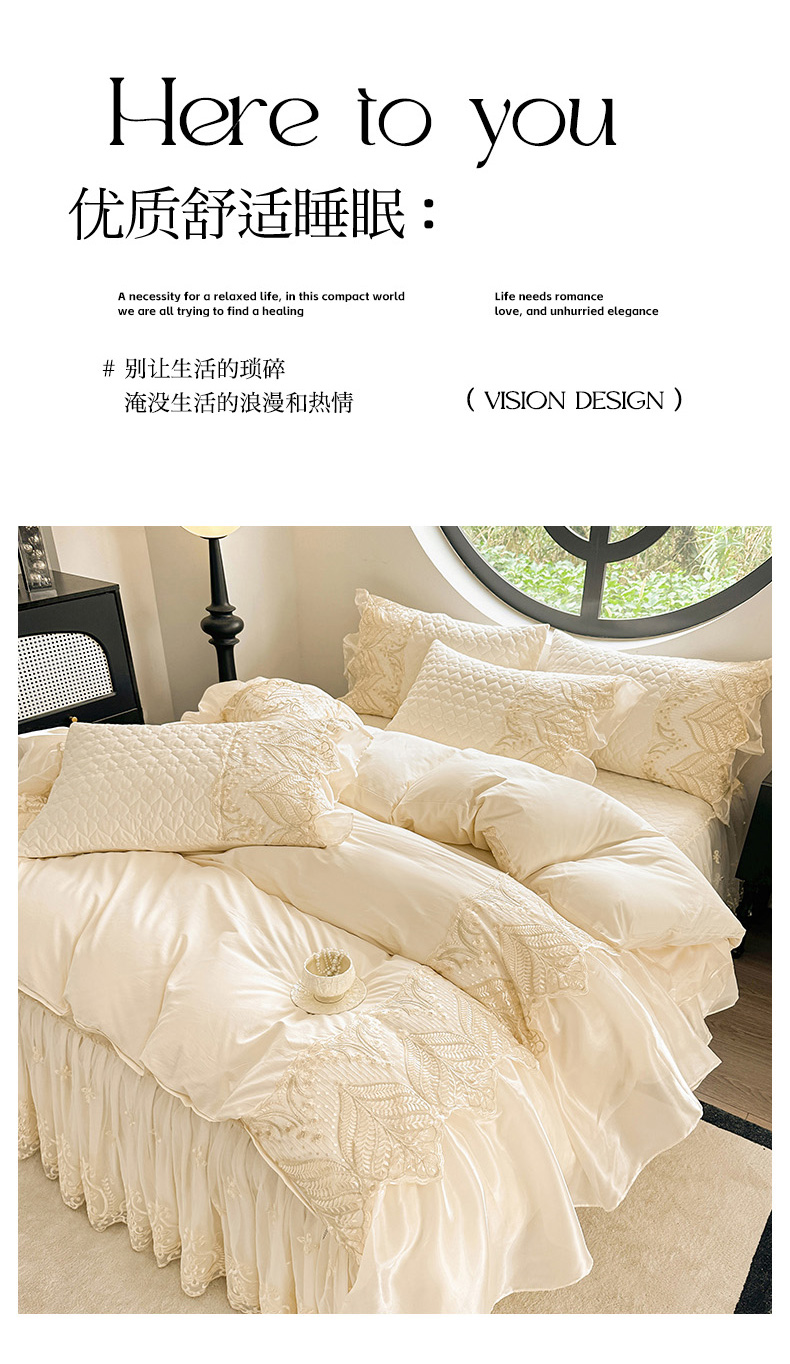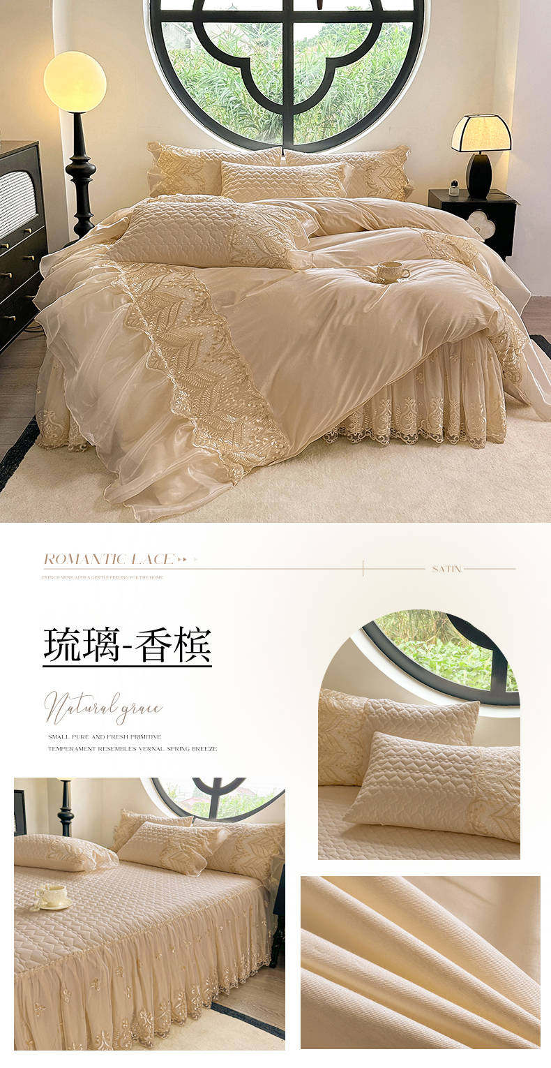• 91家纺网 家纺一手货源 找家纺 罗艺轩 2025新款全棉纯棉蕾丝刺绣琉璃床裙四件套(1.5m控价288起、1.8m控价293起、1.8m加大控价303起、1.8*2.2m控价298起、1.8*2.2m加大控价308起、2.0m控价3